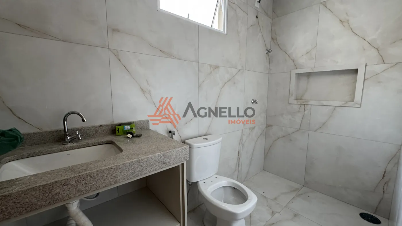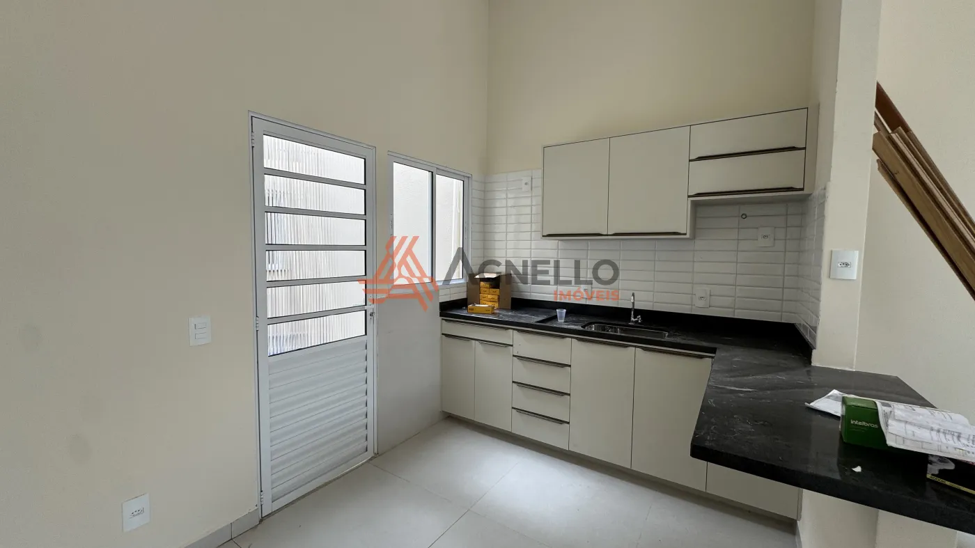A casa ainda possui cozinha com granito São Gabriel e armário, banheiros com box e nichos, 2 vagas de garagem, portão automatizado, além de provisão para churrasqueira.