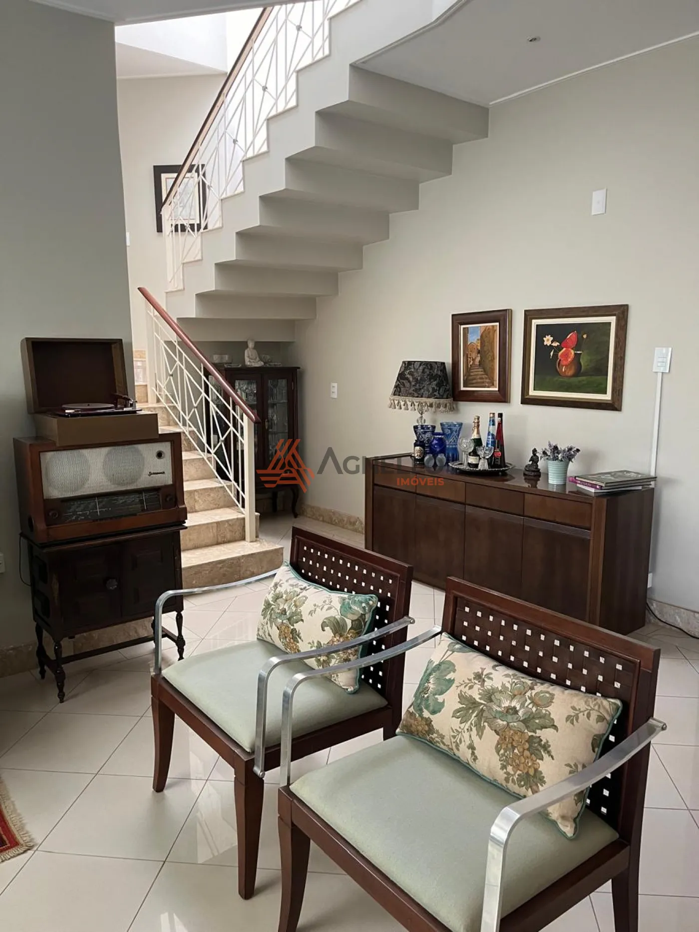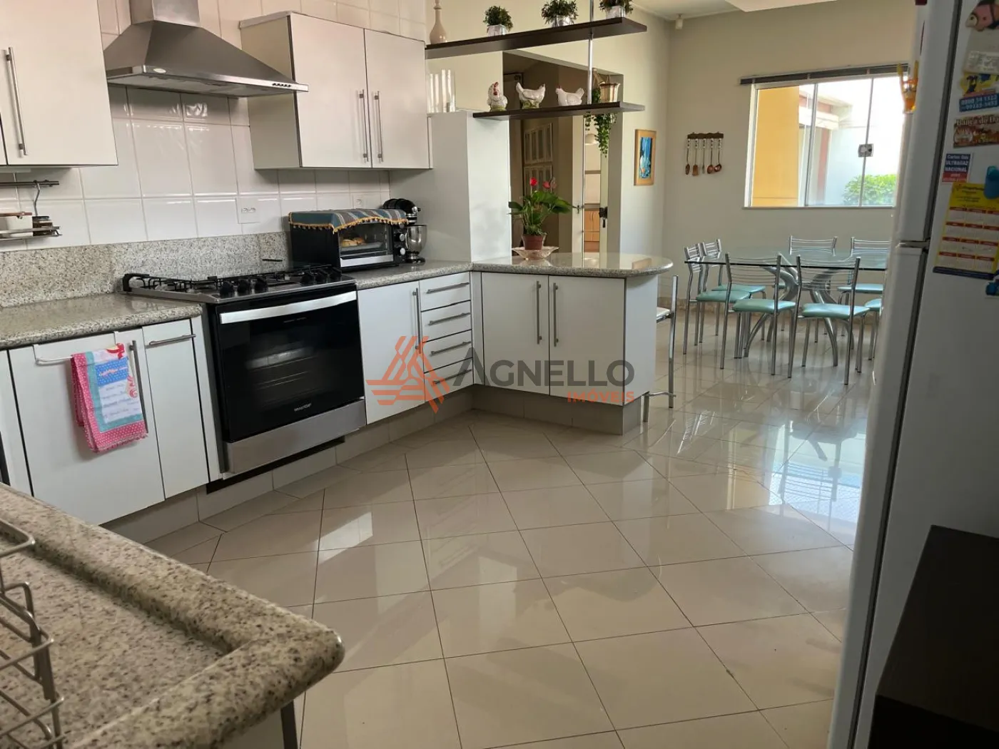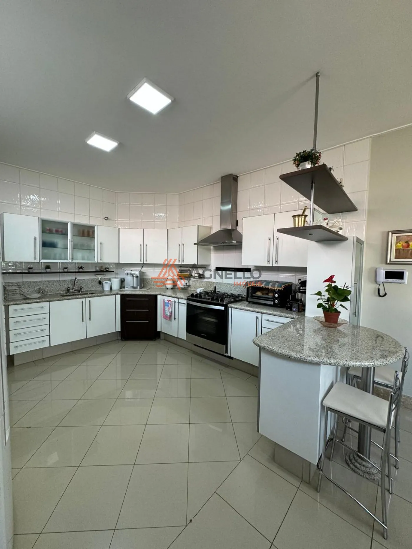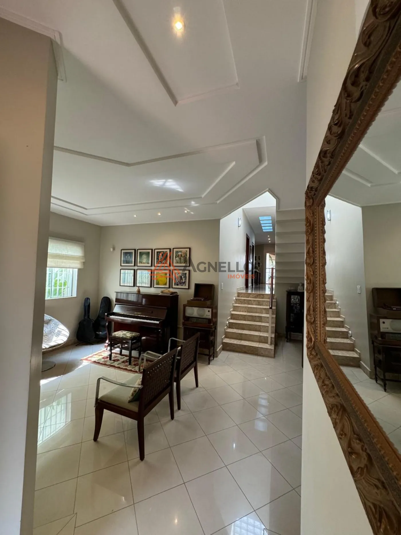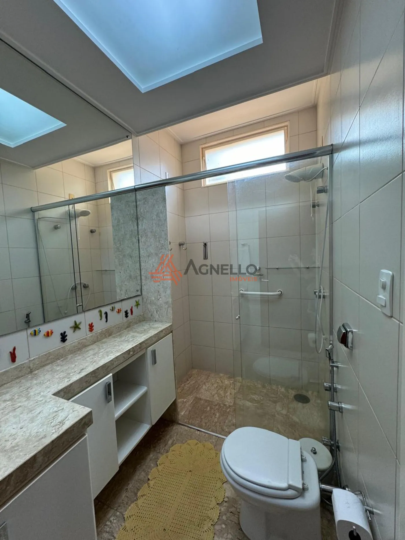 Casa ampla, com fino acabamento, escada em travertino, rica em móveis planejados. Quatro suítes, 1 no térreo e 3 no piso superior, sendo duas com closet e uma delas com banheira. Escritório espaçoso no piso superior. Salas de estar, TV e jantar, cozinha, varanda gourmet, área de serviço com deposito e banheiro. Garagem coberta para três carros. Preparação para aquecimento solar e piscina.