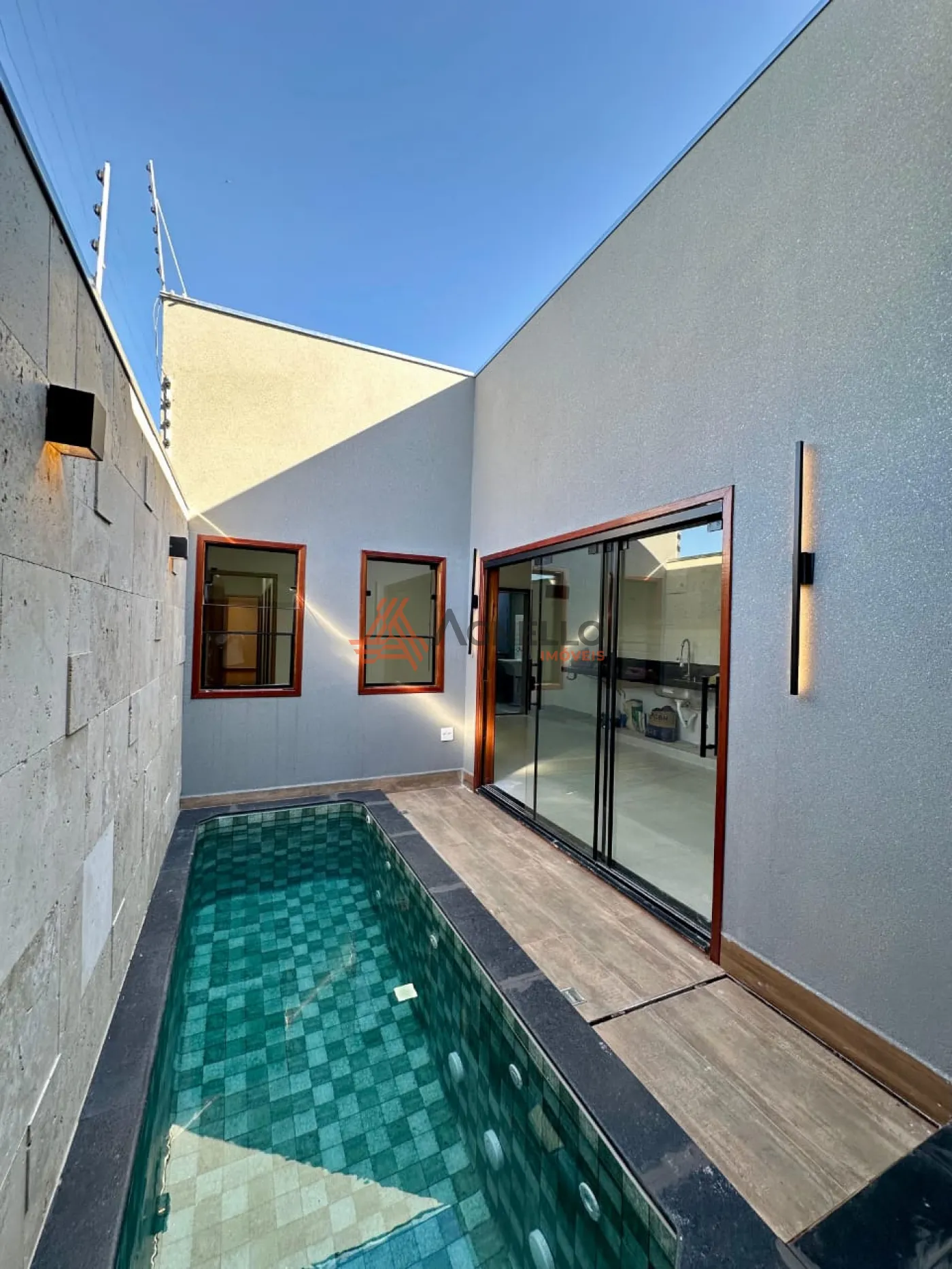 Imóvel novo, com ótimo acabamento, três dormitórios sendo uma suíte com área de claridade, banheiro social, ampla sala integrada com cozinha, lavabo, piscina, lavanderia e garagem coberta para dois carros.