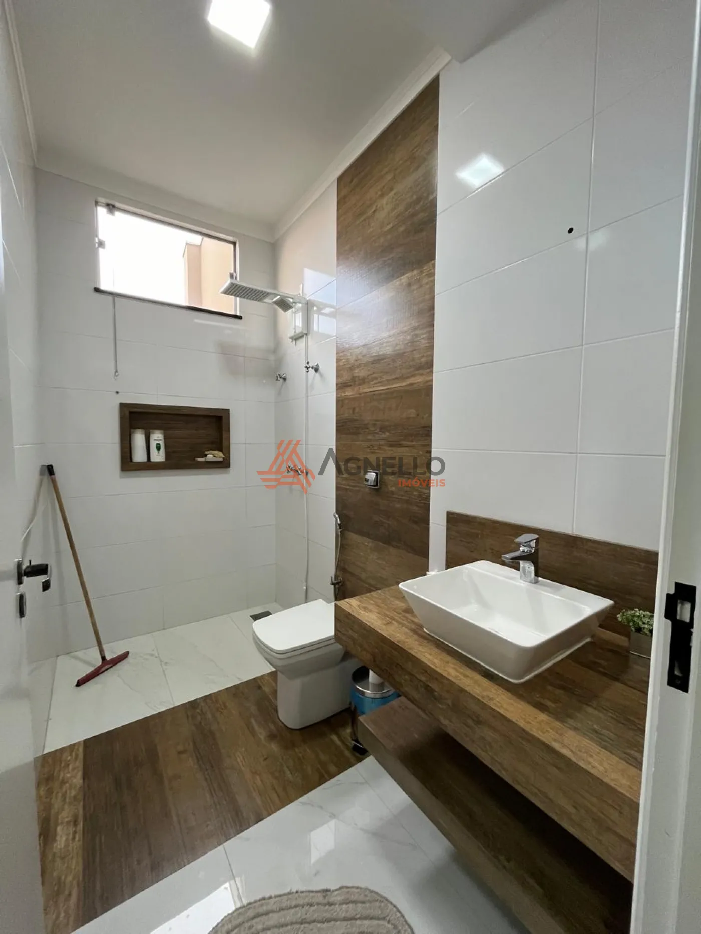 Imóvel espaçoso, com ótimo acabamento. Três dormitórios sendo uma suíte, banheiro social, salas de estar e jantar, cozinha com armários, despensa, lavanderia, lavabo, varanda gourmet com churrasqueira e garagem coberta para dois carros.
