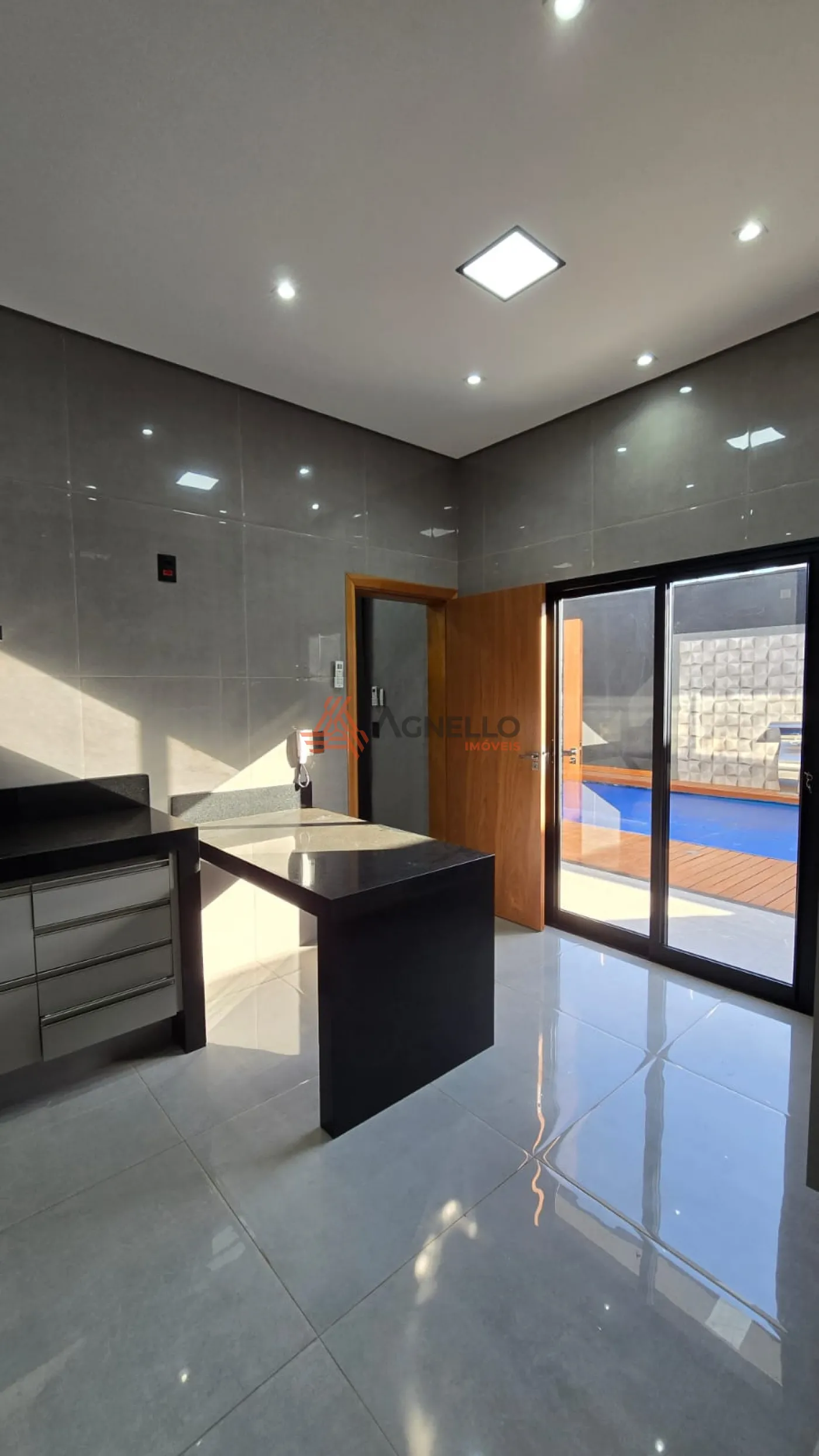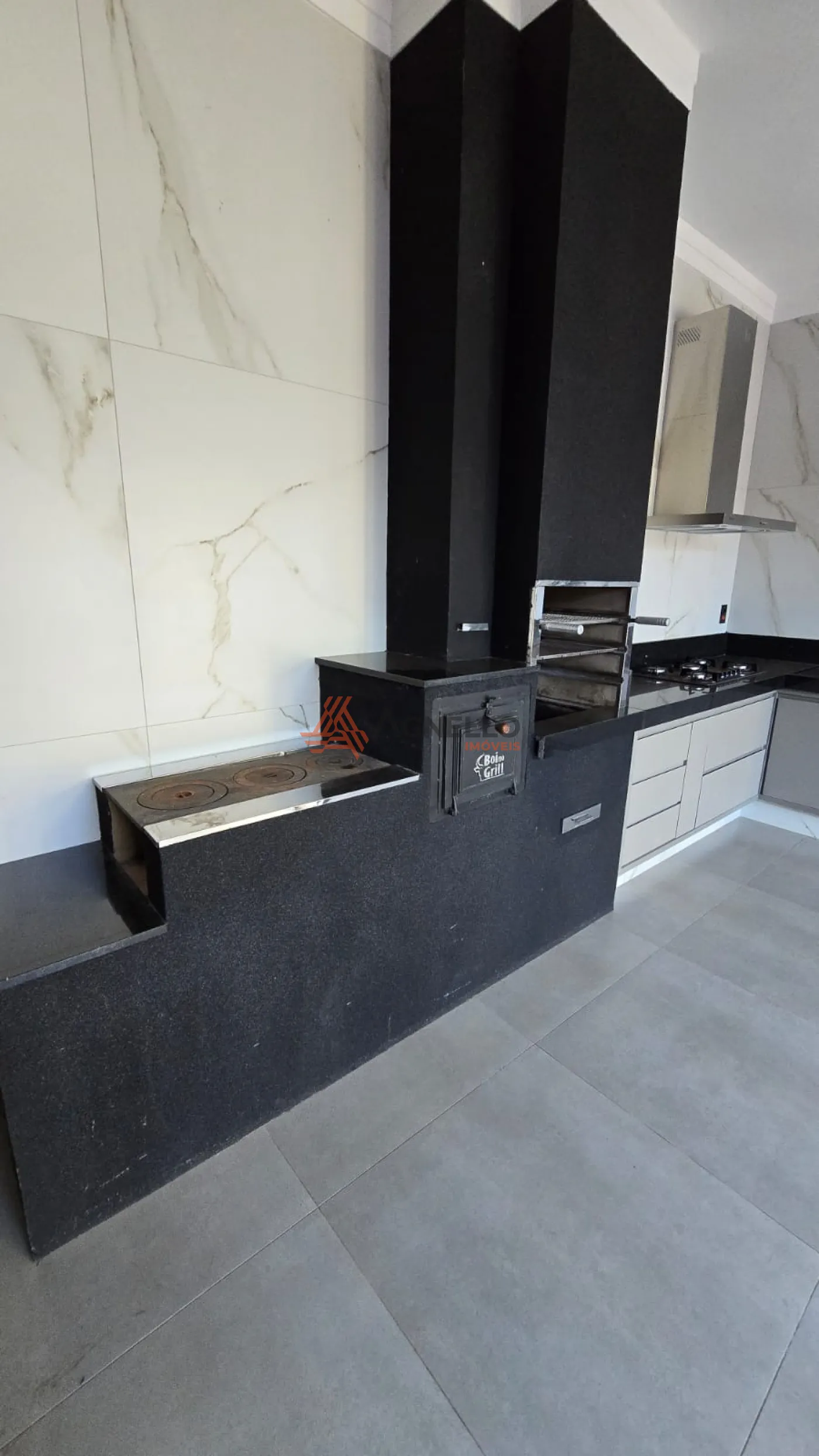 Casa de alto padrão, com fino acabamento e rica em móveis planejados. Quatro suítes, sacada, salas de estar, jantar e TV, cozinha, varanda gourmet com churrasqueira e fogão à lenha, piscina e garagem coberta para três carros.