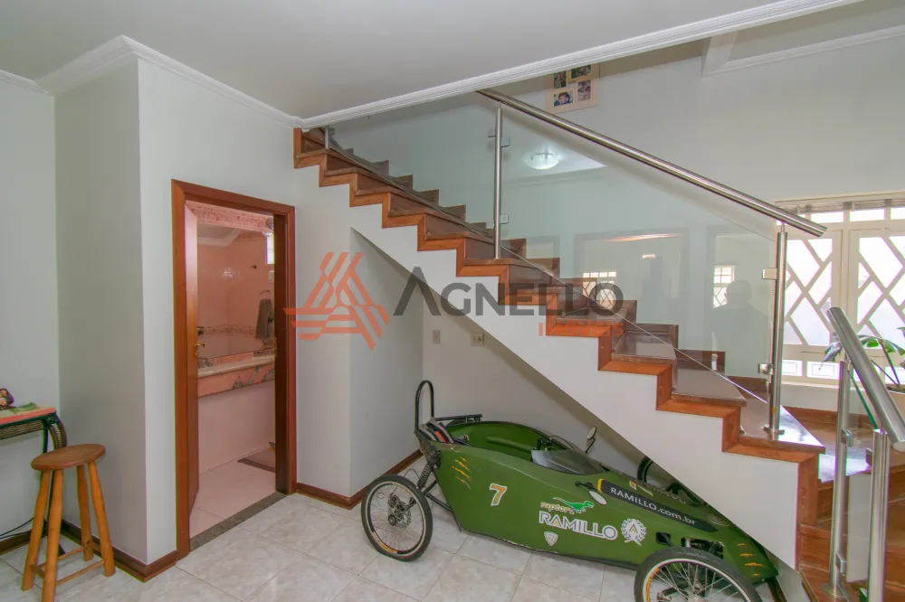 Linda casa, completa em armários, com 1 dormitório simples, 2 suítes sendo 1 com banheira, banheiro social, escritório, sala de jantar, sala de TV inferior e superior, lavabo, cozinha com armários, coifa e cooktop, lavanderia, varanda gourmet com churrasqueira, lavabo e 2 vagas de garagem.