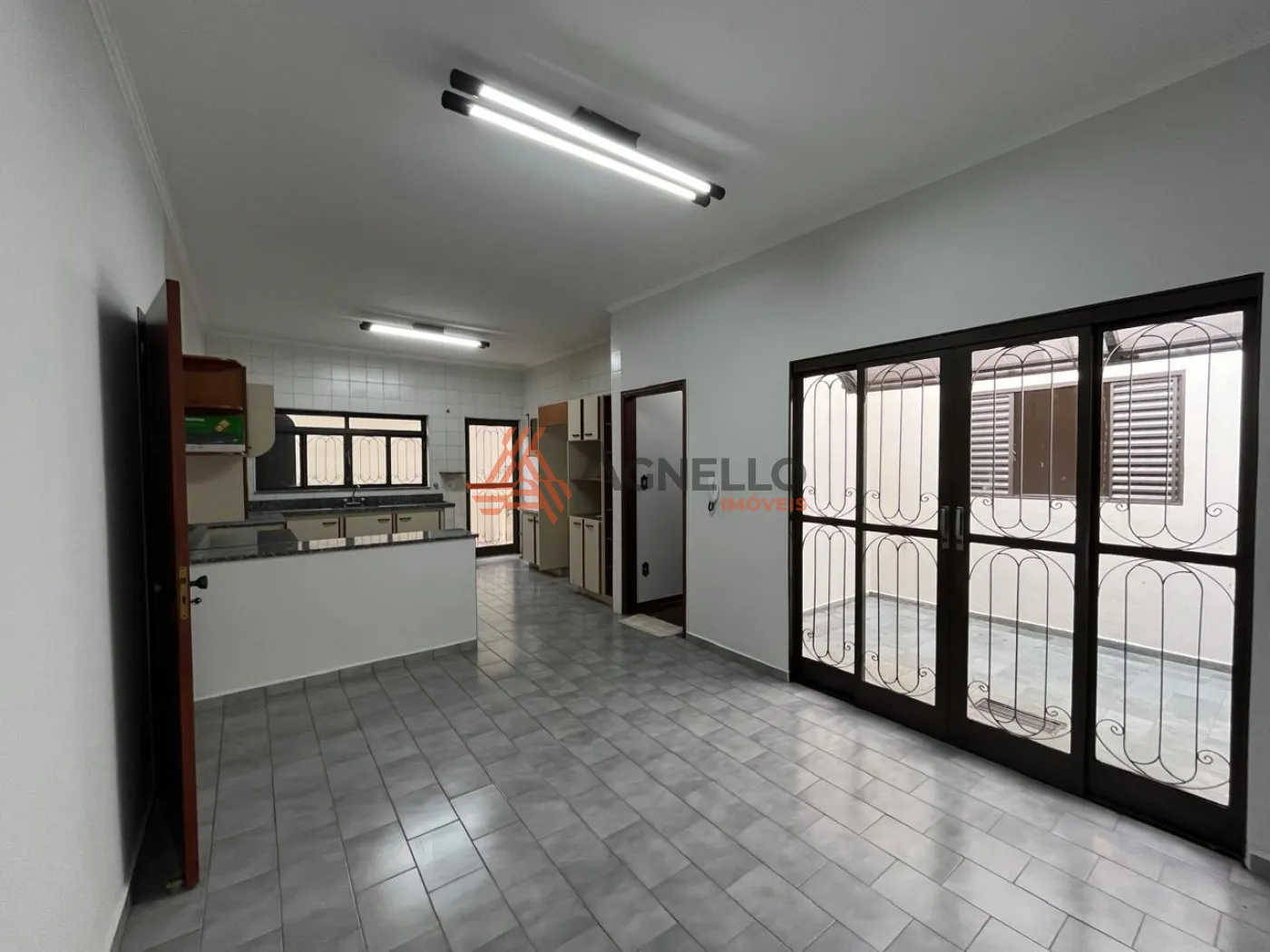 Com três dormitórios sendo uma suíte com armário e banheira, banheiro social, salas de estar e jantar, cozinha com armários, quintal, edícula e garagem coberta para três carros. Aquecimento solar.