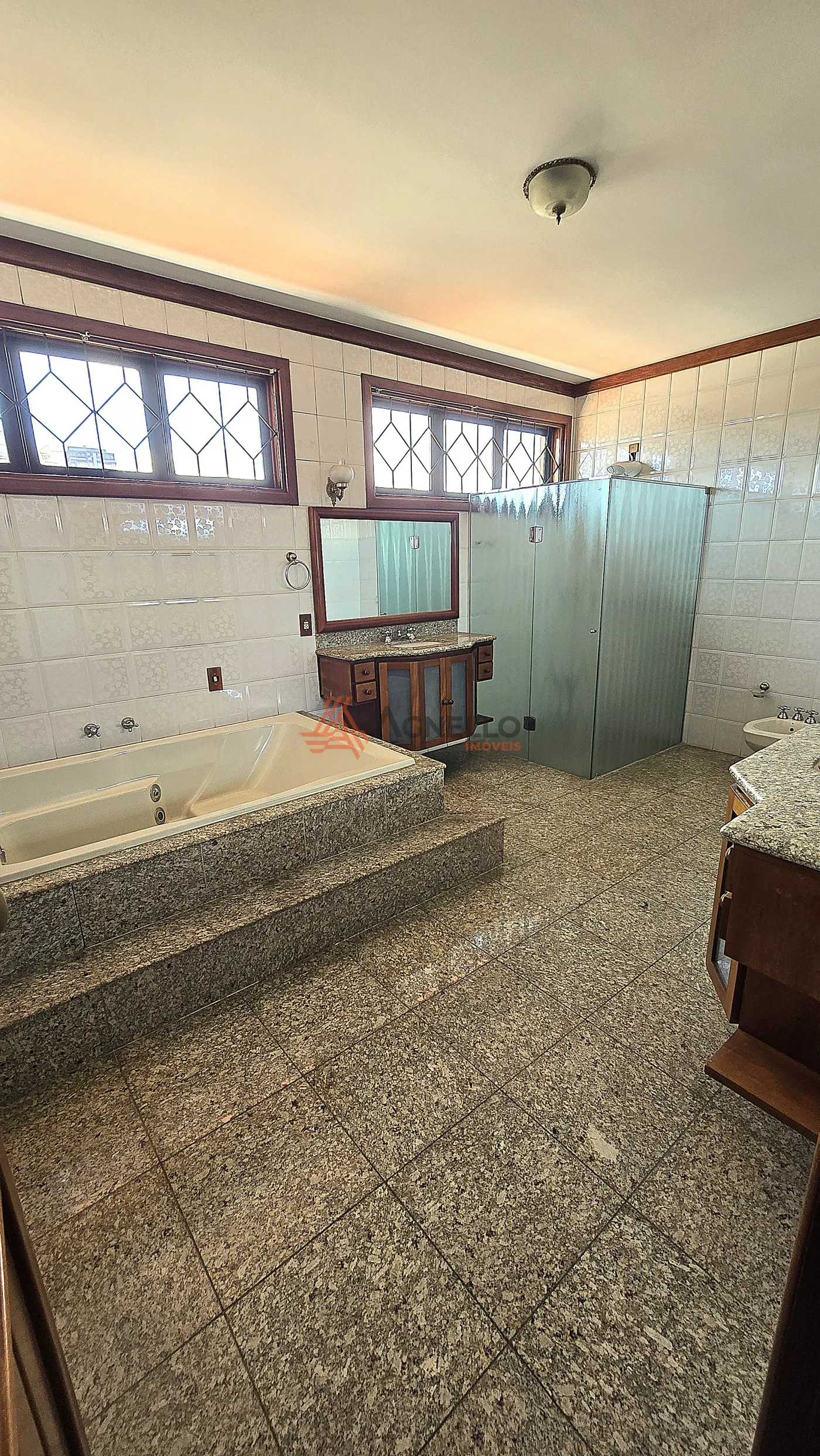 Residência de alto padrão com hall de entrada e lavabo, 2 salas integradas, sala privativa com banheiro, ampla cozinha planejada, despensa, lavanderia, área gourmet com churrasqueira, terraço com jardins, piscina, sauna e banheiro externo, garagem para 6 carros; no piso superior, mezanino, suíte master com closet e banheira de casal, 2 dormitórios com armários, banheiro social com banheira individual e mais 1 suíte com closet.
