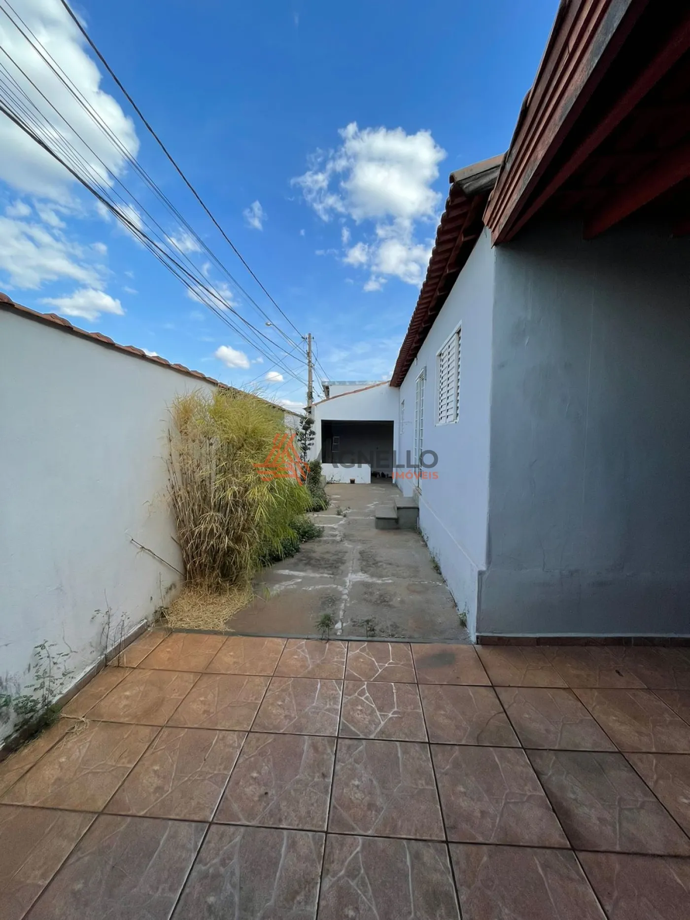 Casa de esquina com três dormitórios sendo uma suíte, banheiro social, três salas, copa, cozinha e duas vagas de garagem.