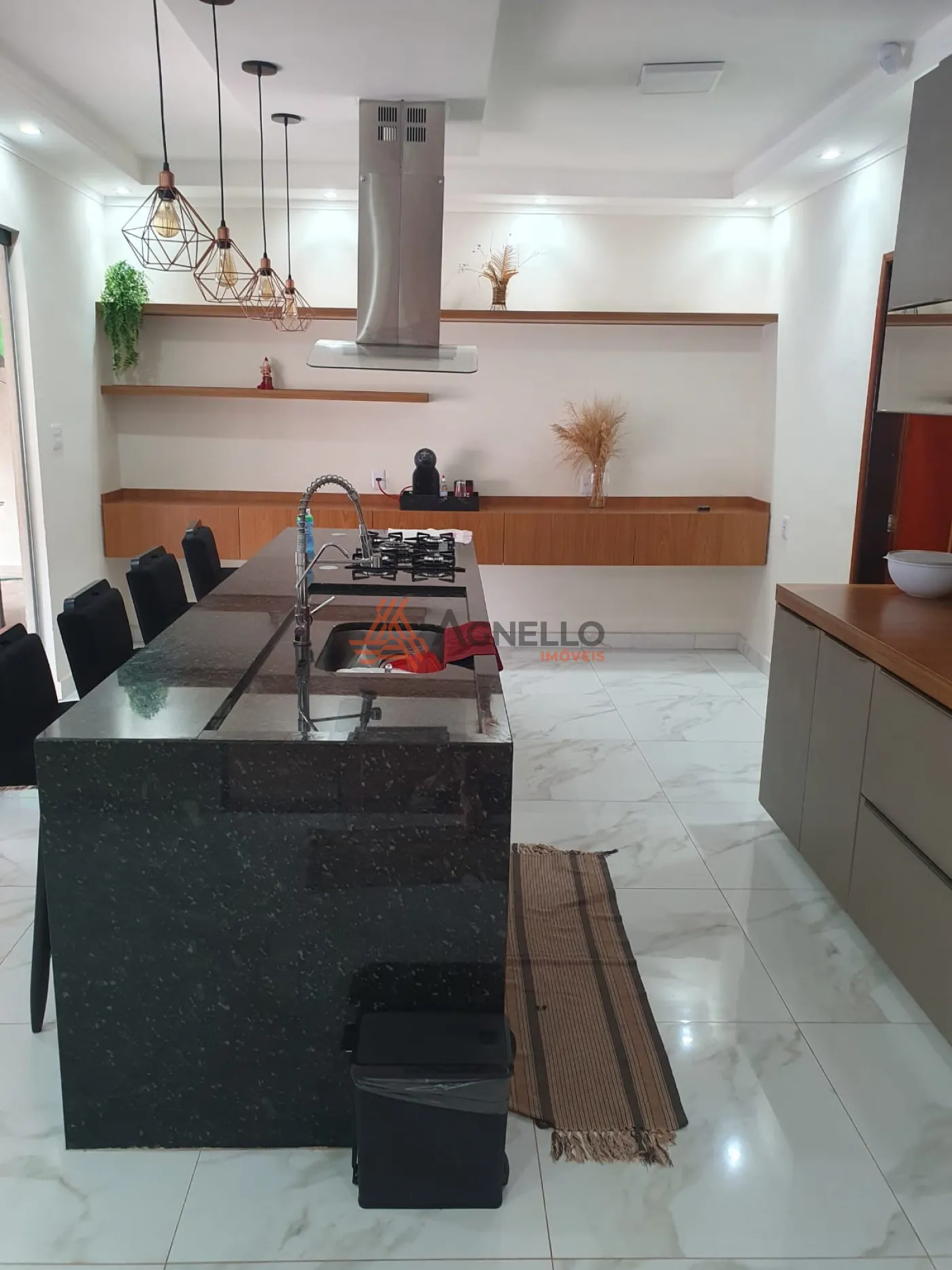 Ótima residência, toda avarandada, com 3 dormitórios sendo 1 suíte, sala de TV e jantar, cozinha americana com ilha, armários, cooktop e coifa, lavanderia, banheiro social, varanda gourmet aconchegante, com churrasqueira, coifa e 2 lavabos, linda piscina, pergolado, playground e 3 vagas de garagem cobertas.