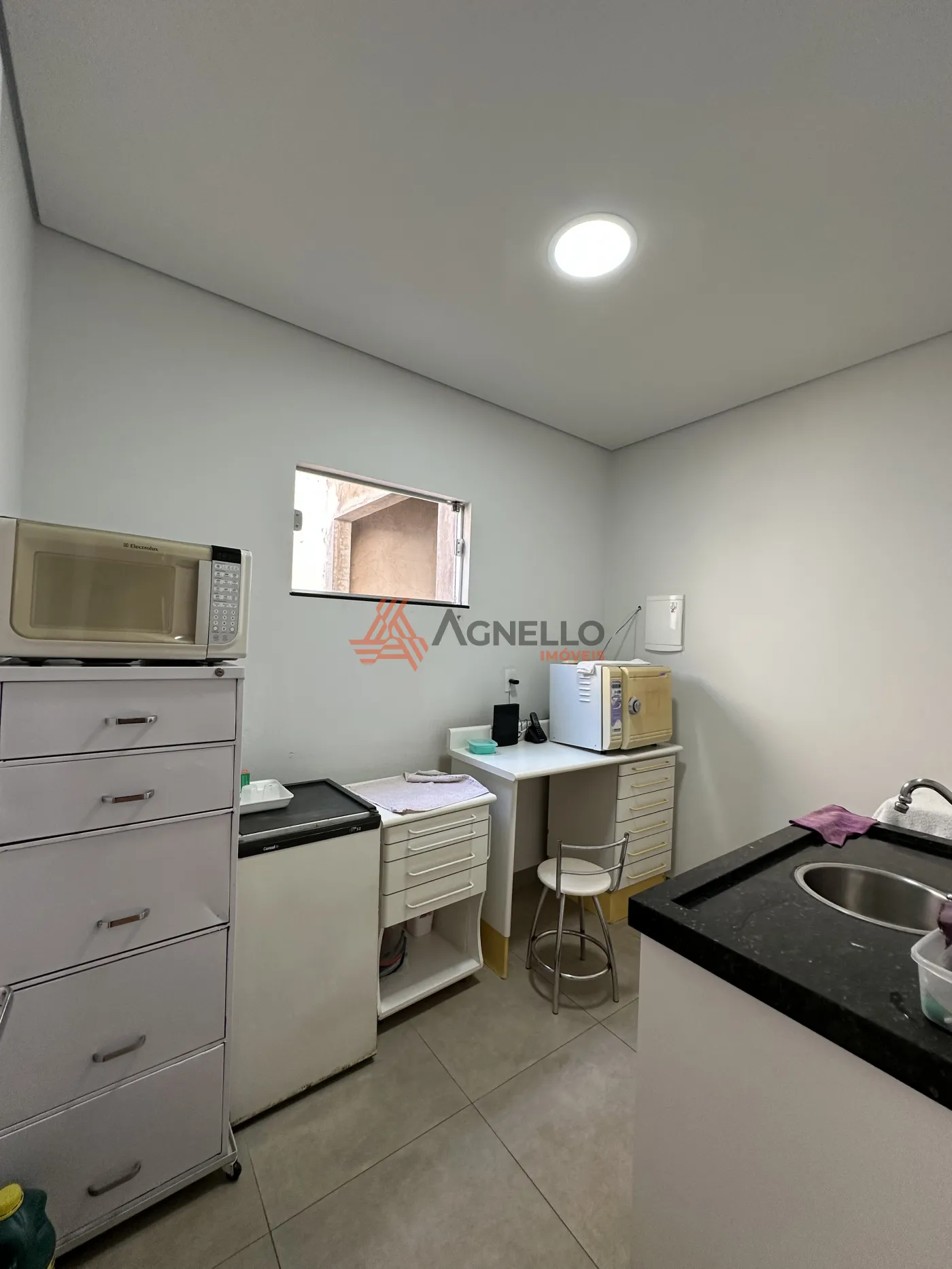 Parte comercial com recepção, três salas e dois lavabos sendo um com acessibilidade.