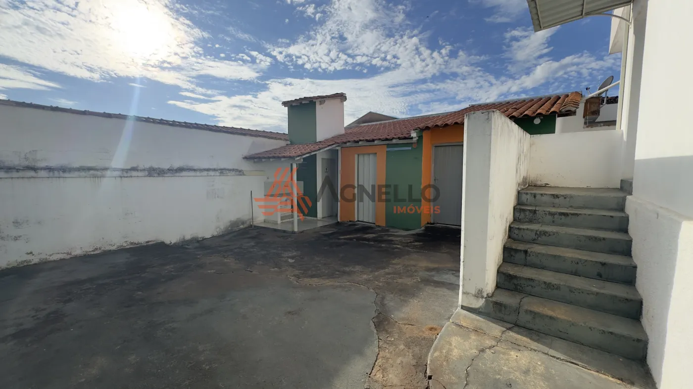 Imóvel com 3 salas, sendo 1 ampla, 2 banheiros na frente, e aos fundos com 2 salas, banheiro, área de serviços, cozinha, 4 vagas de garagem externas e portão de acesso aos fundos da casa.