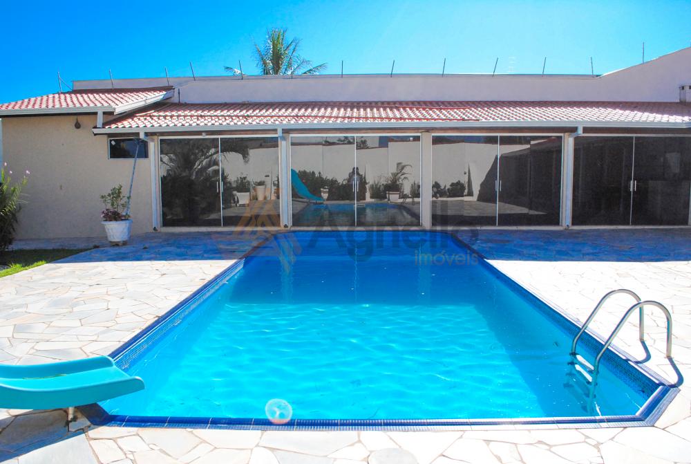 Vende-se excelente chácara em condomínio fechado! Porteira fechada! Linda residência com 03 dormitórios sendo 01 suíte, closet, banheira e sacada com vista para a chácara, 02 banheiros sociais, salas de estar, jantar e TV, escritório, cozinha americana, despensa com quarto e banheiro de serviço, lavanderia, varanda contornando o piso inferior, fechada com vidro e com 01 banheiro, estúdio de treinamento funcional, ampla área de lazer completa, com quadra de areia, piscina, churrasqueira, forno iglu e a lenha, 02 banheiros e despensa. Área externa com 04 canis individuais junto ao belo pomar, onde se encontra árvores frutíferas, todas produzindo, sendo elas: acerola, mangueira, cajuzeiro, amora, jabuticabeira, bananeira, limão, romã, e goiaba. A chácara possui diversas benfeitorias, como poço semi-artesiano com 750 litros d`água/h + reservatório de 6.000 litros que abastece todo o espaço, cisterna com água, límpida, bombeada por toda a chácara, além da água do poço que atende o condomínio, irrigação completa e automatizada, 16 placas fotovoltaicas em funcionamento, fibra ótica Algar, 13 câmeras de monitoramento, alarme com central, e cerca elétrica + concertina para garantir a segurança de sua família. Possui também, guarita e segurança 24 horas do condomínio.