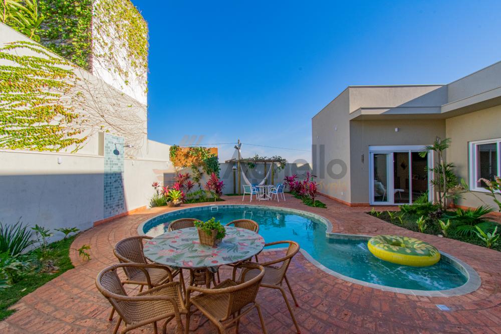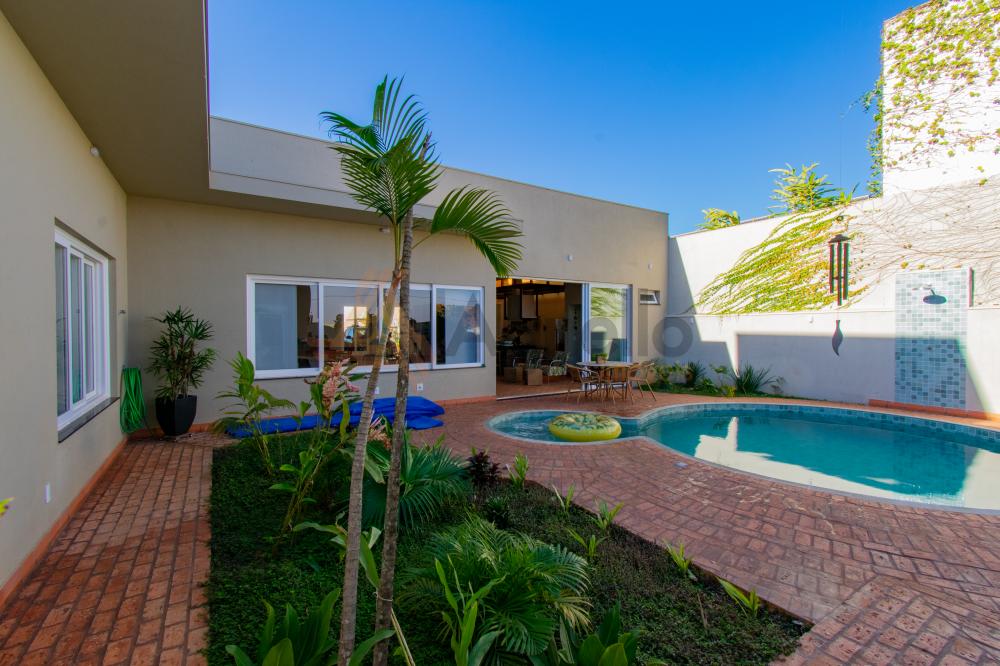 Casa toda aberta e integrada, com três suítes, sendo uma com closet e hidro, salas de estar, jantar e Tv, escritório, cozinha, área de serviço. Área de lazer com espaço gourmet e piscina lindíssima! Projeto da arquiteta Daniela Mestres. Terreno de 1.400m². Maravilhoso paisagismo.