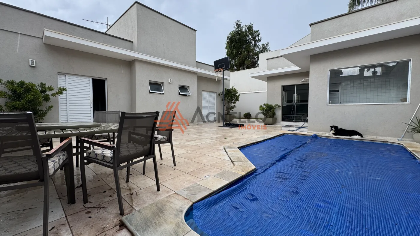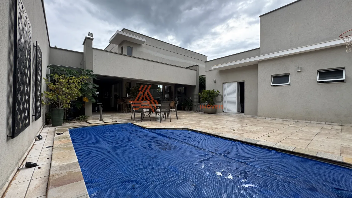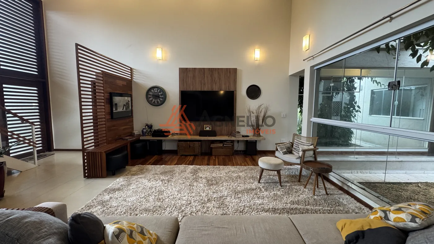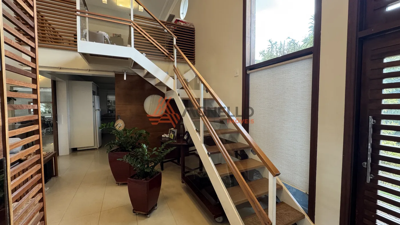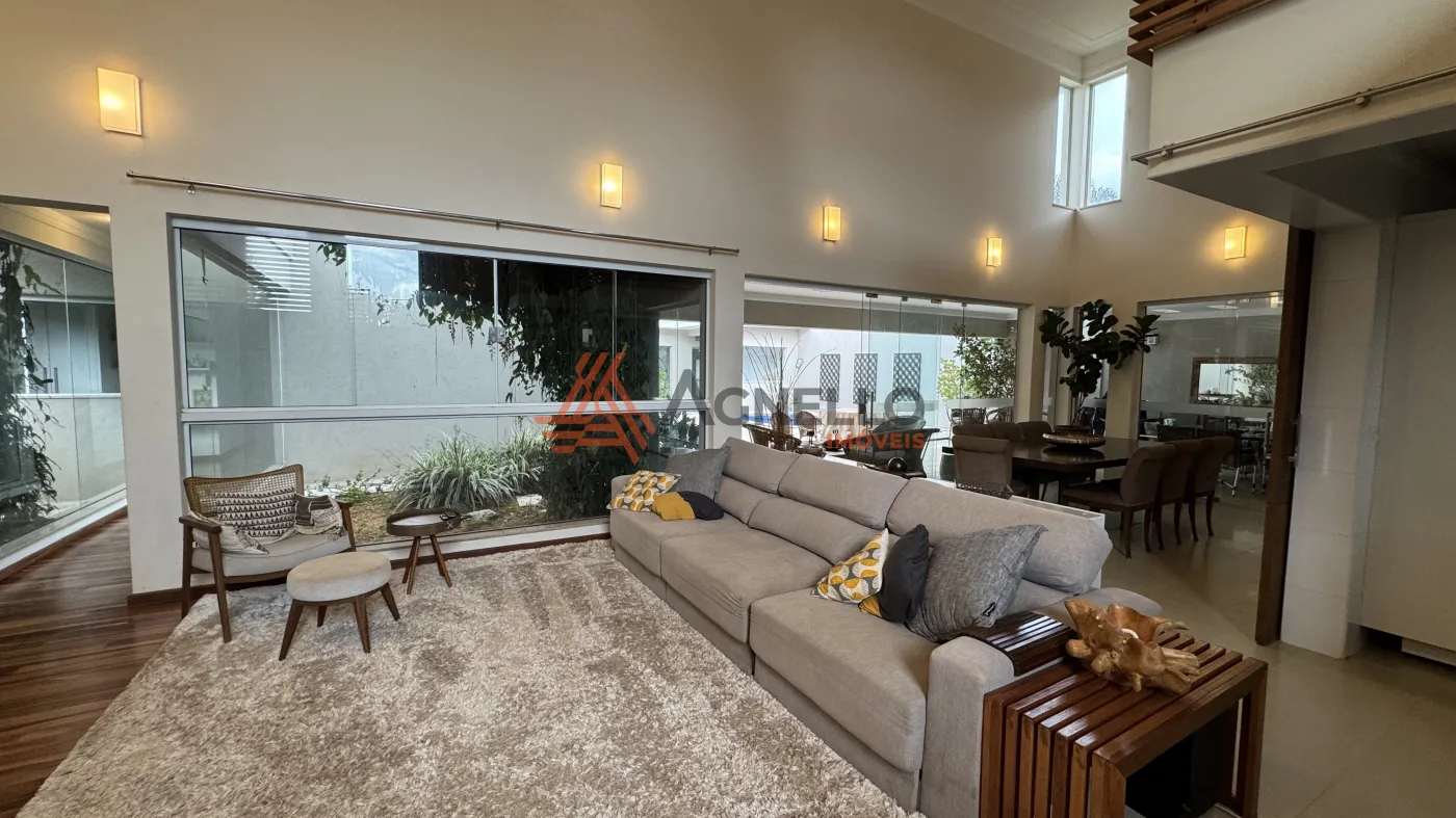 Residência de alto padrão, composta por 3 suítes, sendo 1 master com closet. Conta com sala ampla para dois ambientes, mezanino com escritório, jardim de inverno, lavabo, cozinha com armários planejados e lavanderia. O imóvel ainda oferece um excelente espaço gourmet e uma ampla área externa com piscina, sauna, banheiro social e 2 vagas de garagem cobertas.
