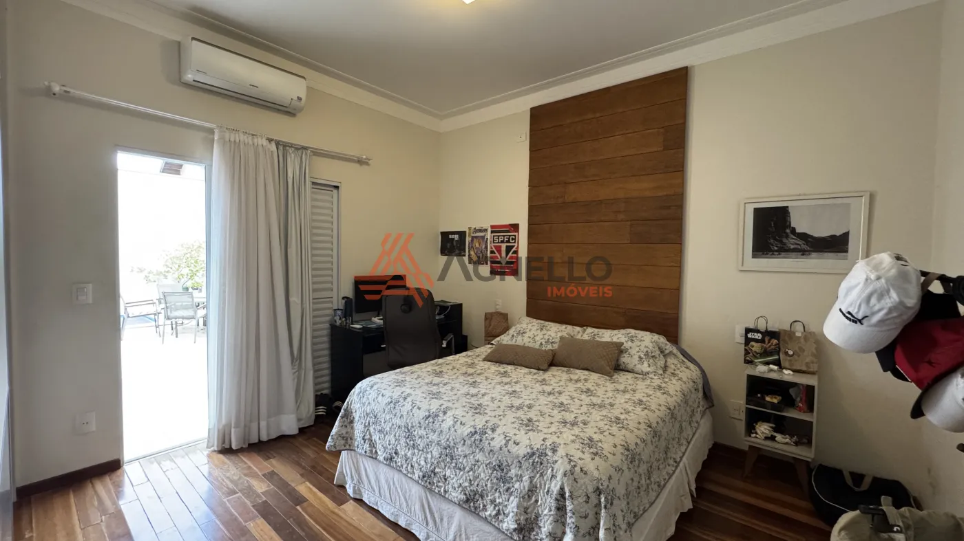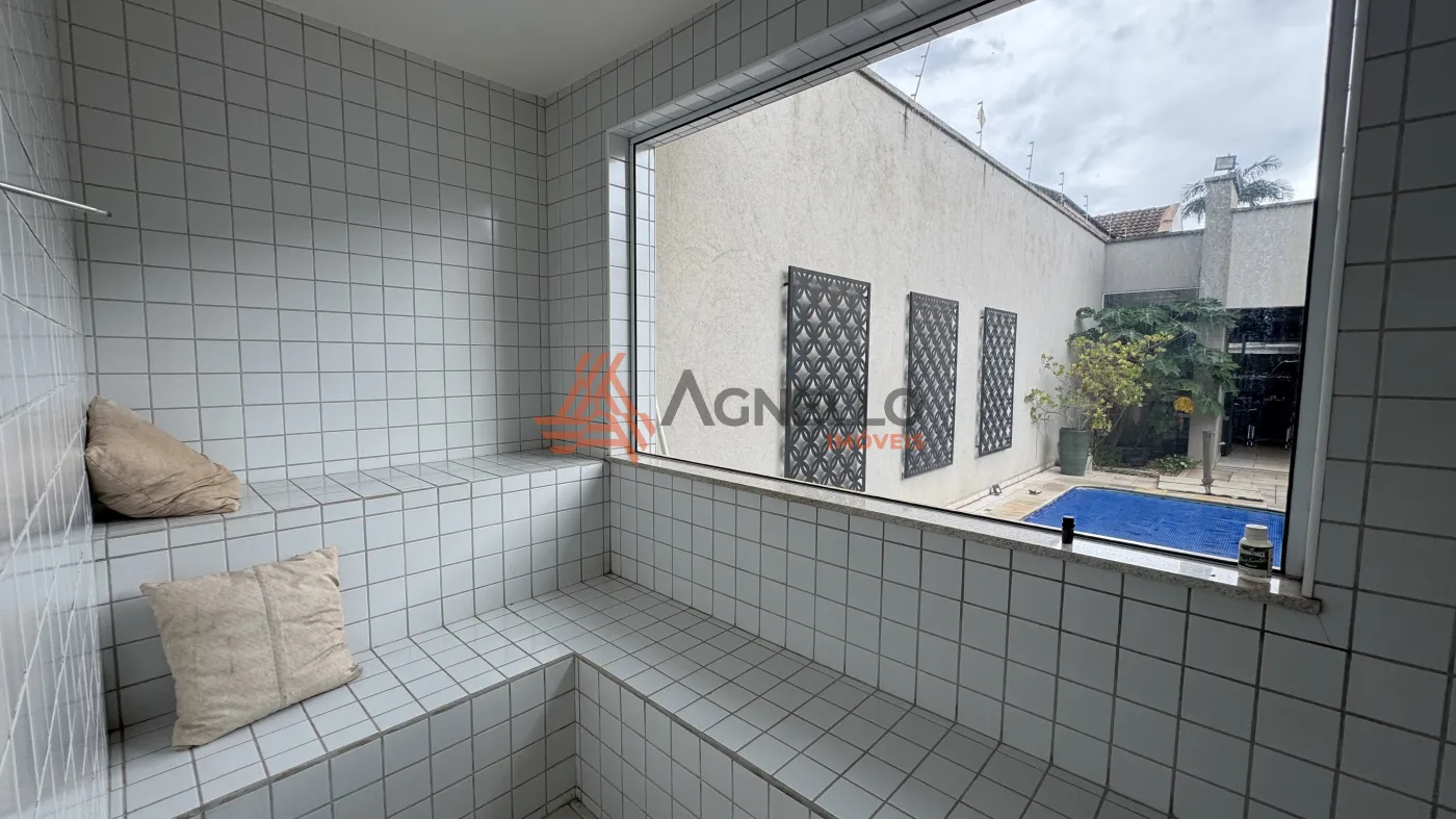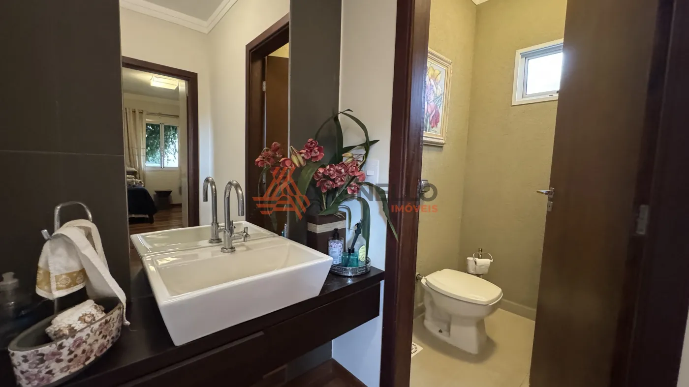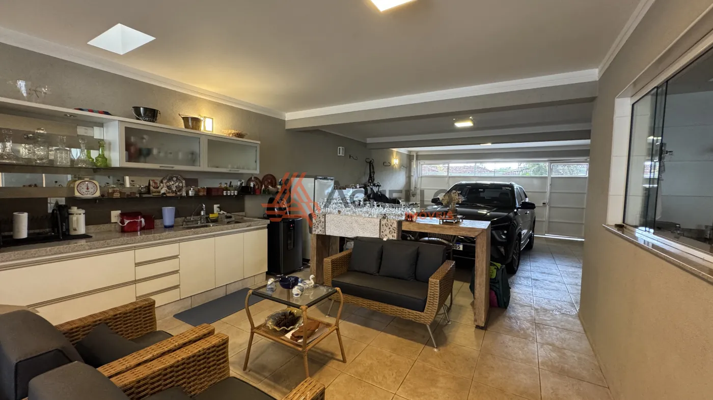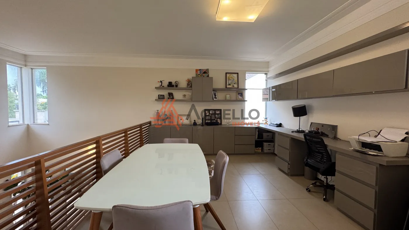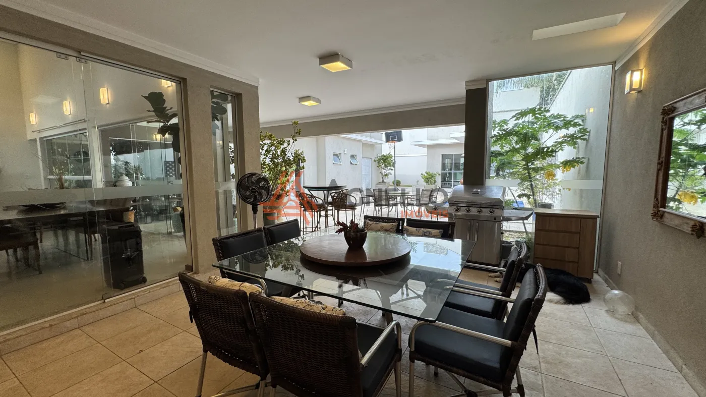 Residência de alto padrão, composta por 3 suítes, sendo 1 master com closet. Conta com sala ampla para dois ambientes, mezanino com escritório, jardim de inverno, lavabo, cozinha com armários planejados e lavanderia. O imóvel ainda oferece um excelente espaço gourmet e uma ampla área externa com piscina, sauna, banheiro social e 2 vagas de garagem cobertas.