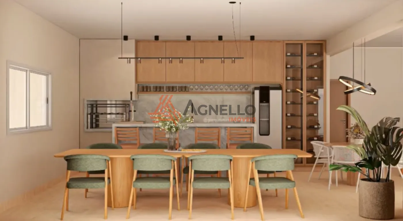 Casa de alto padrão, possuindo 5 suítes, salas de estar, jantar e TV, lavabo, escritório, cozinha com armários, despensa, espaço gourmet, ampla piscina, quadra de areia e 8 vagas de garagem.