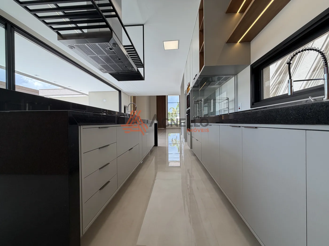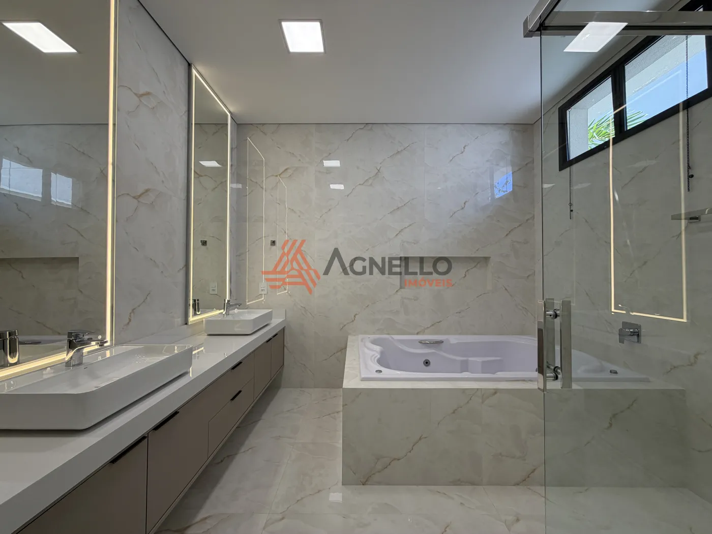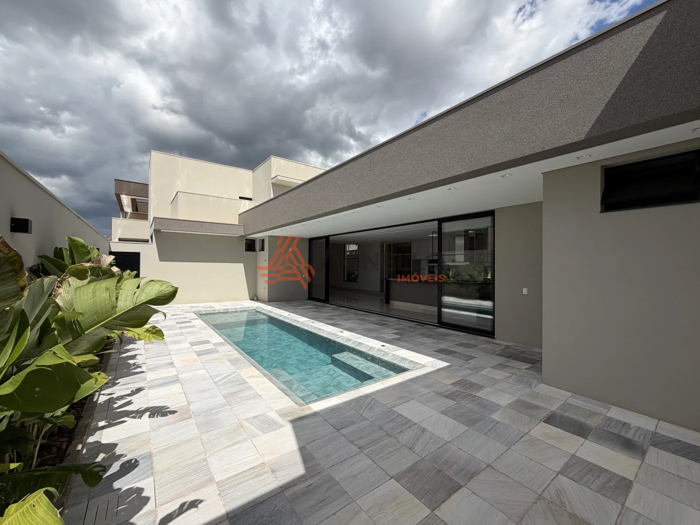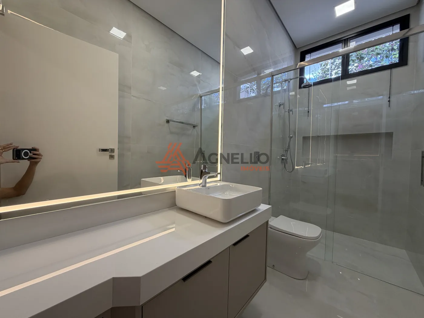 Casa de alto padrão, com 3 suítes, sendo 1 master com closet, salas de estar e jantar, lavabo, cozinha gourmet, escritório ou academia com banheiro, piscina e 6 vagas de garagem.