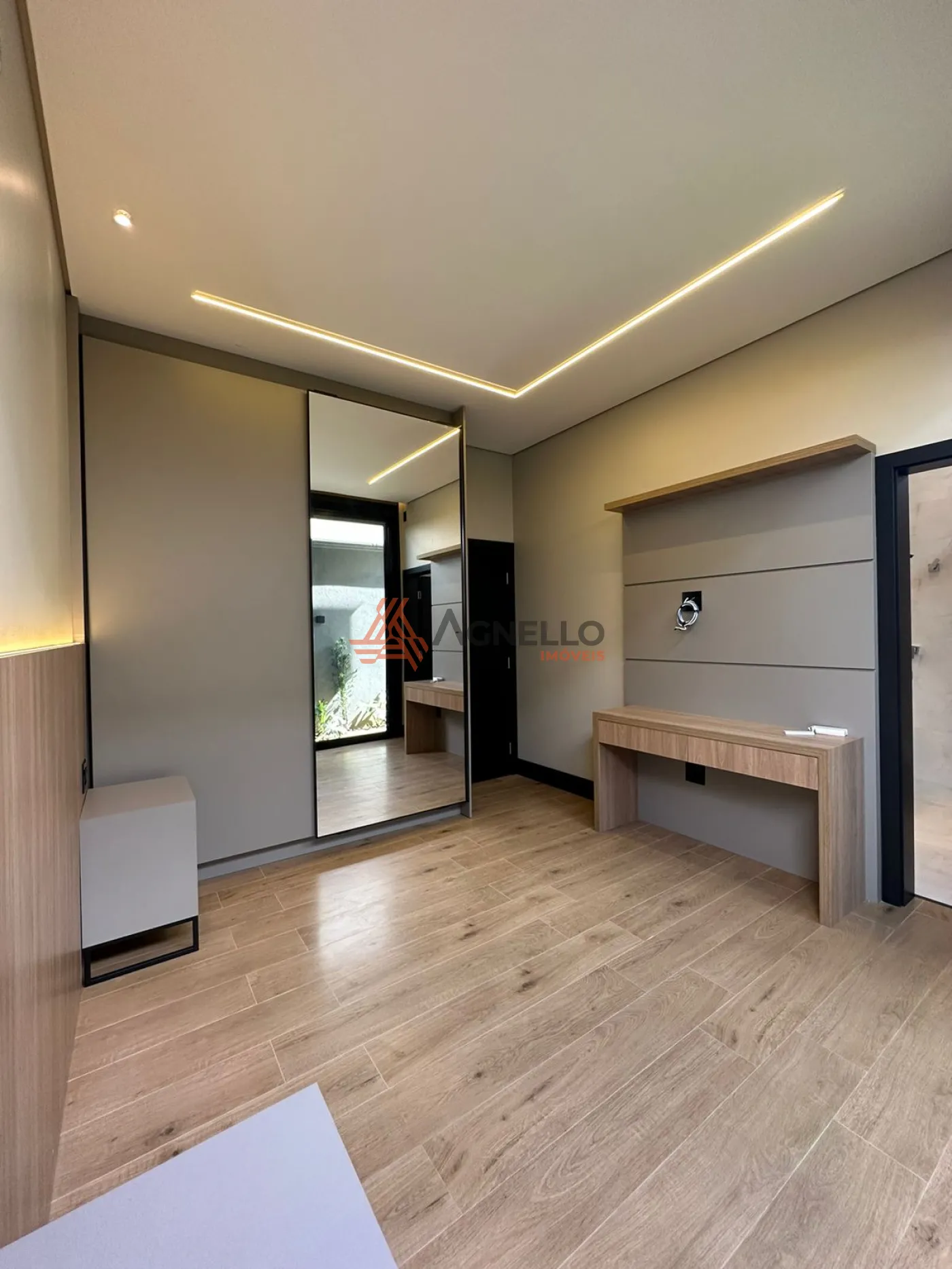 Casa com pé direito alto, possui 3 suítes, sala de TV, cozinha americana com forro de madeira, lavabo, área de claridade com pré-instalação para piscina e 4 vagas de garagem.