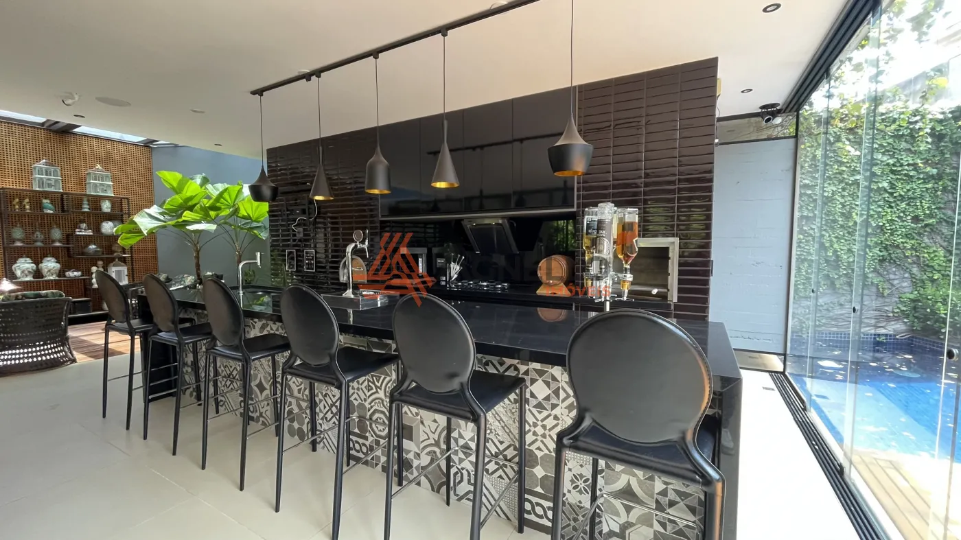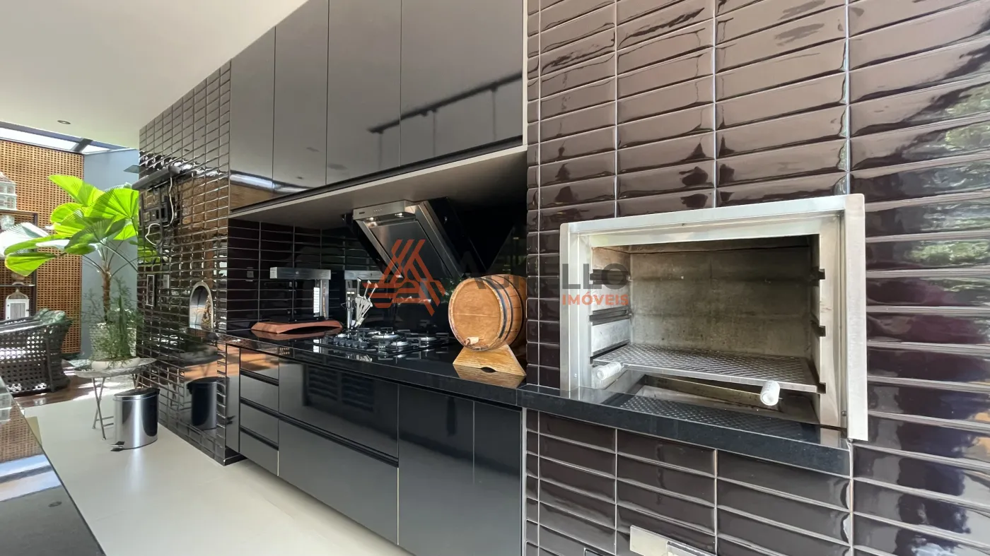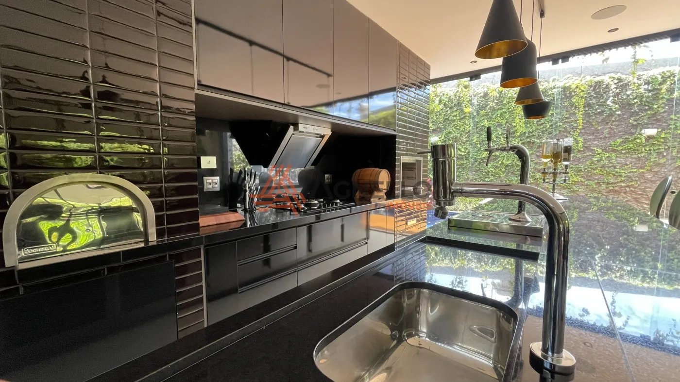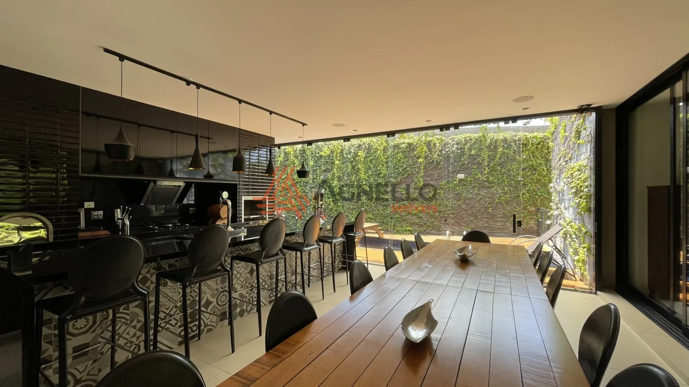 Casa ampla, com ótimo acabamento e elevador. Quatro suítes sendo uma com banheira. Salas de estar, jantar e TV. Cozinha, despensa e área de serviço. Área gourmet com churrasqueira, forno de pizza, choppeira, piscina, sauna e jardim. Escritório na parte externa. Garagem para 6 carros.