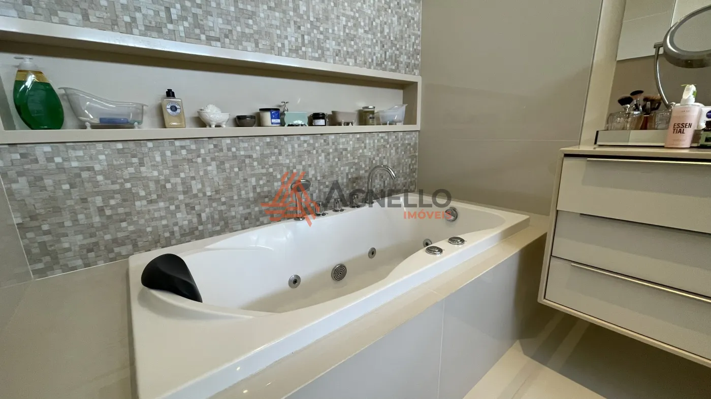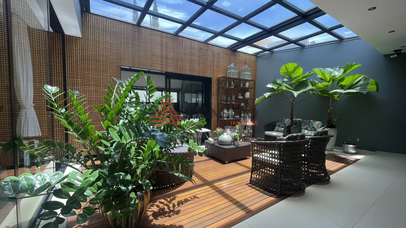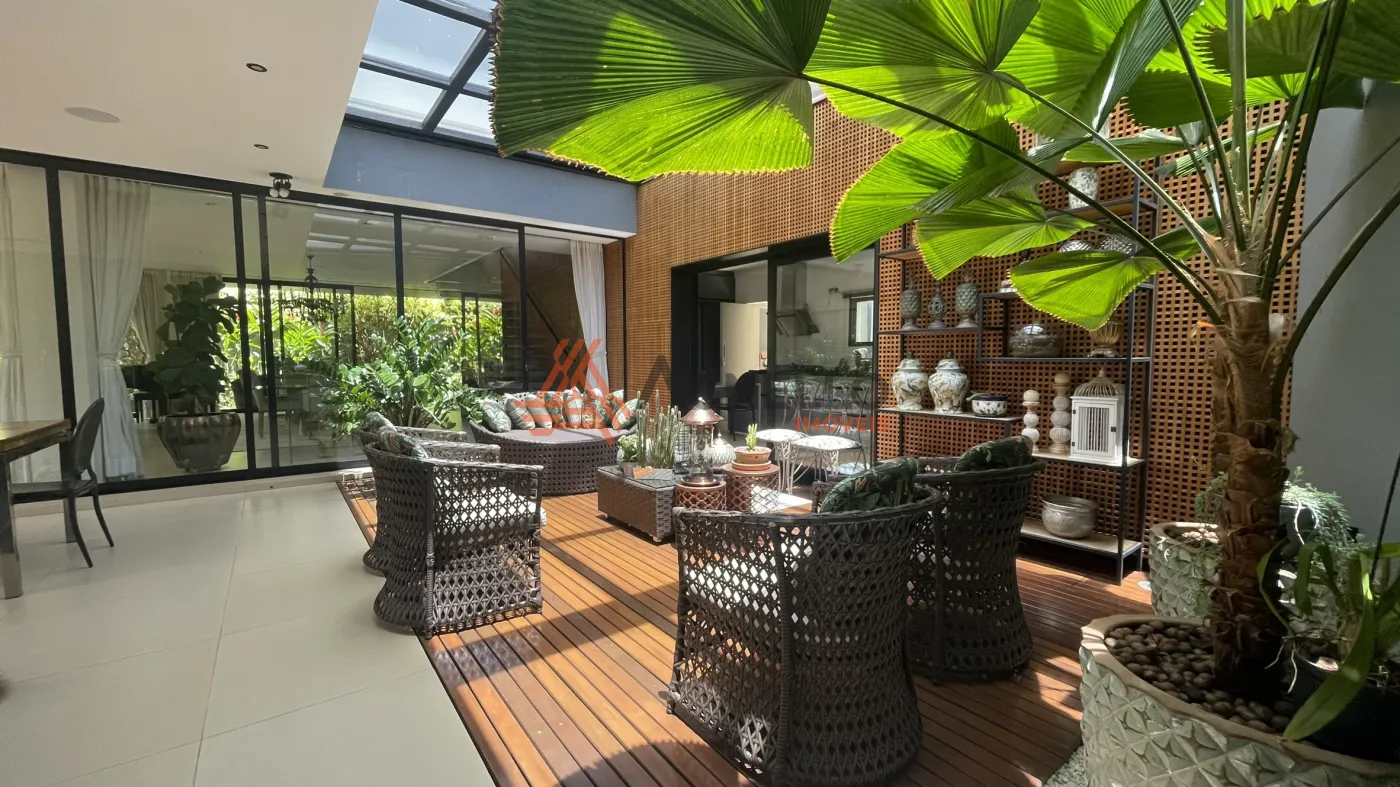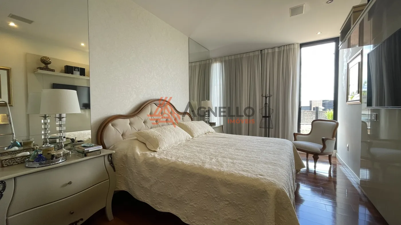 Casa ampla, com ótimo acabamento e elevador. Quatro suítes sendo uma com banheira. Salas de estar, jantar e TV. Cozinha, despensa e área de serviço. Área gourmet com churrasqueira, forno de pizza, choppeira, piscina, sauna e jardim. Escritório na parte externa. Garagem para 6 carros.