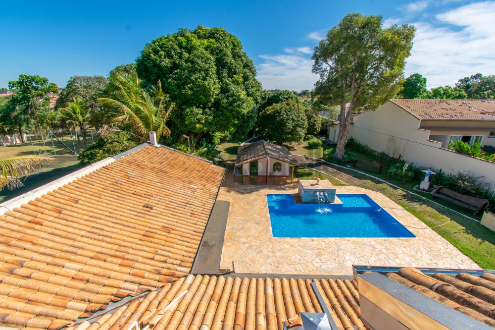 Com quatro dormitórios sendo três suítes um com closet e banheira, ampla sala de estar, copa, sala de jantar, sala de TV, cozinha com armários, despensa, lavanderia, lavabo, sótão e capacidade para 8 carros.