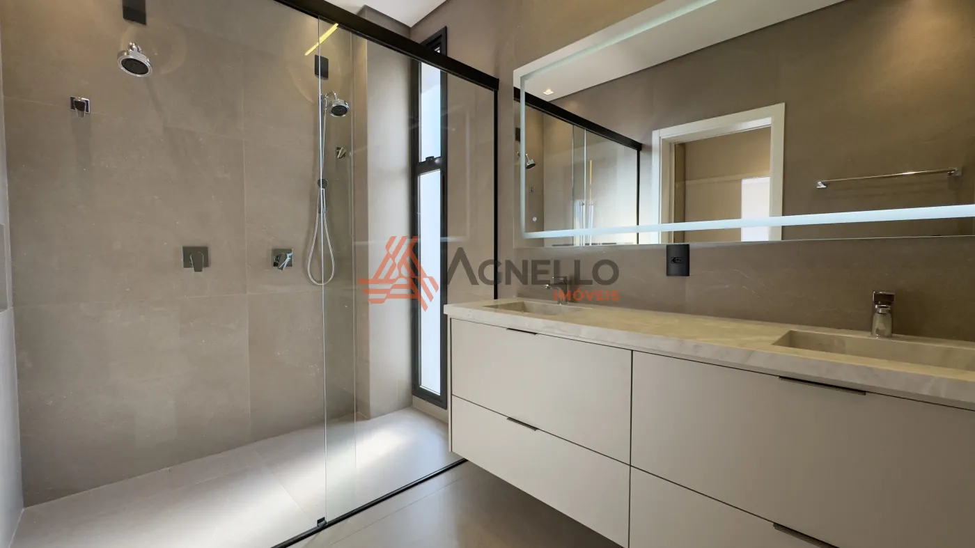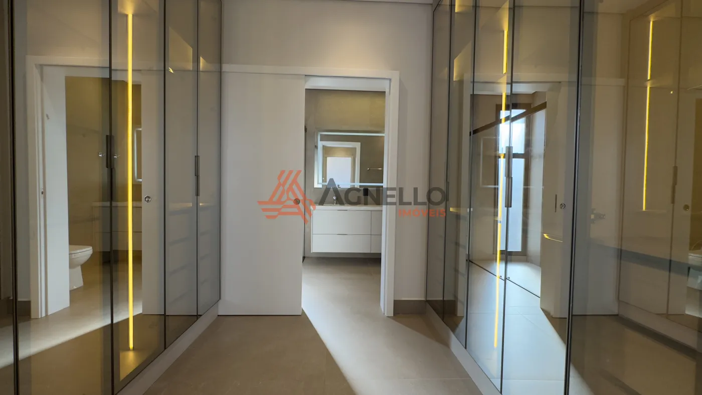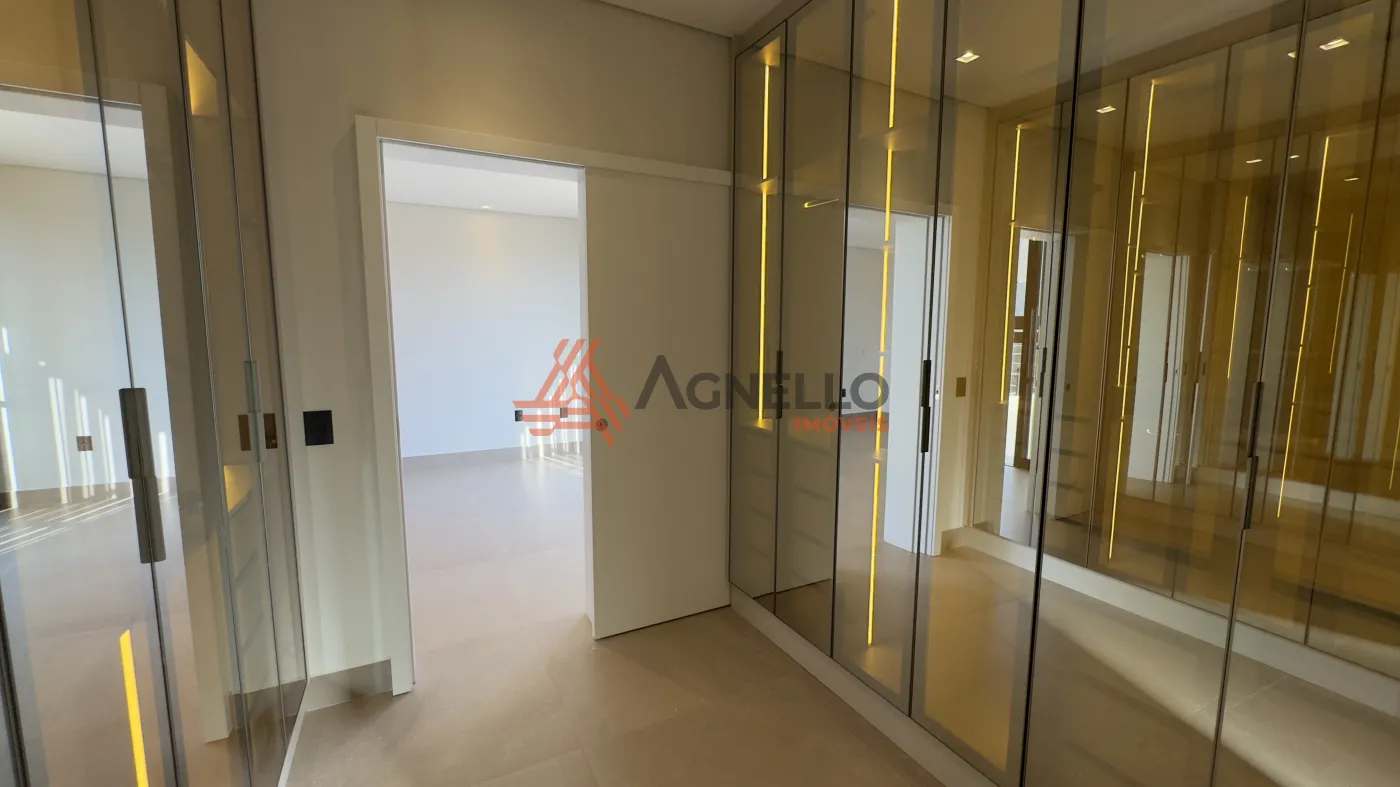 3 amplas suítes no pavimento superior; todas com closet. A suíte master é gigante, com closet planejado com armários e portas reflecta com LED, e uma sacada muito grande que pode ser um ambiente externo exclusivo e personalizado. Os closets das outras suítes são adaptáveis e podem virar sala de estudos ou brinquedoteca.
