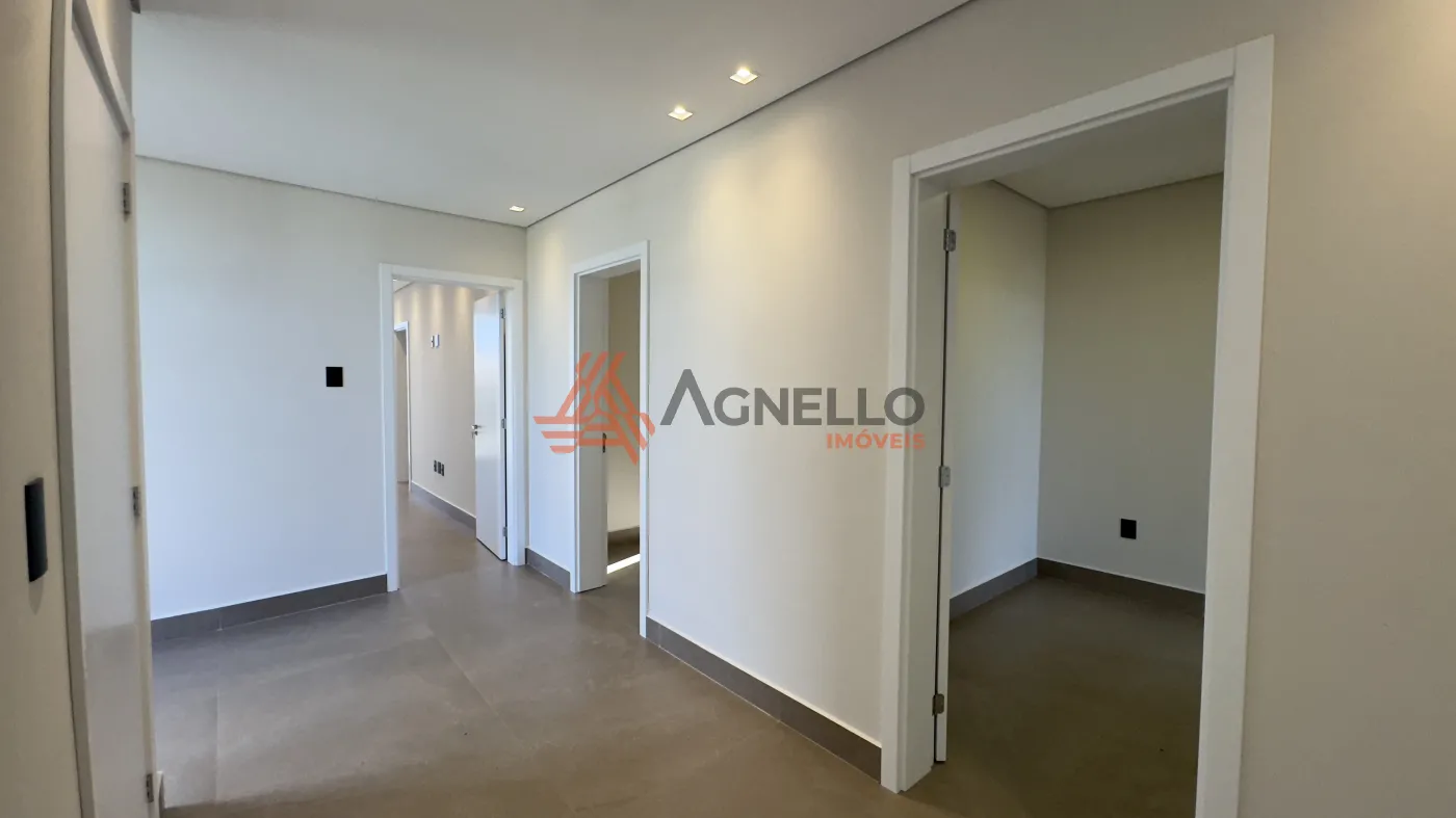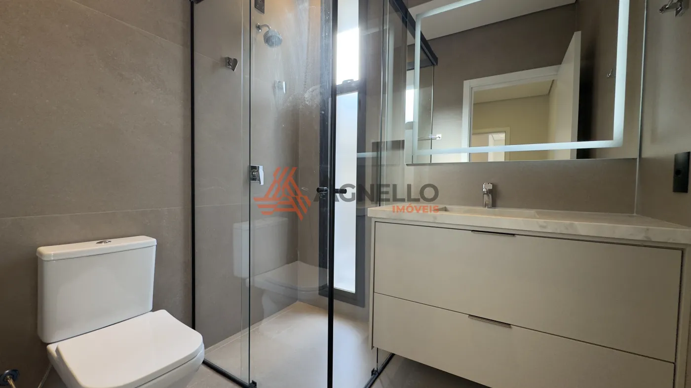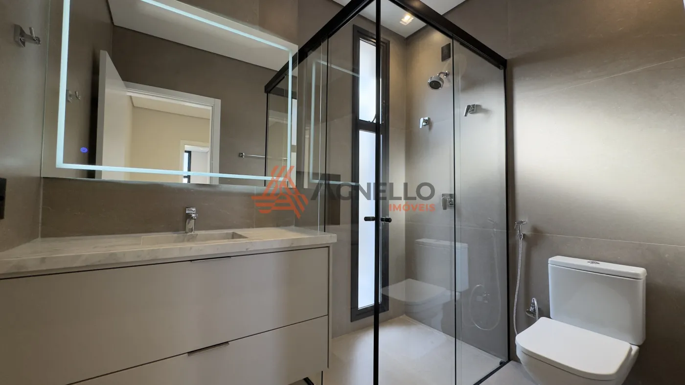 3 amplas suítes no pavimento superior; todas com closet. A suíte master é gigante, com closet planejado com armários e portas reflecta com LED, e uma sacada muito grande que pode ser um ambiente externo exclusivo e personalizado. Os closets das outras suítes são adaptáveis e podem virar sala de estudos ou brinquedoteca.