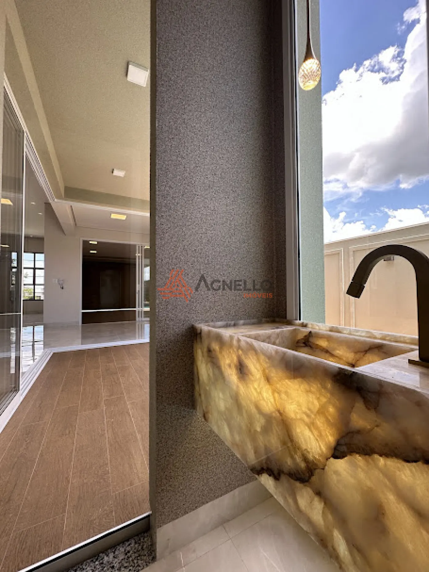 Residência de alto padrão, fino acabamento, rica em armários modulados, com 4 dormitórios, sendo 3 suítes (master com closet), banheiro social, sala em conceito aberto com ambientes integrados e amplos, cozinha com ilha, despensa com prateleiras, lavanderia, espaço gourmet com churrasqueira, piscina de alvenaria com aquecimento, hidromassagem, iluminação em led e cascata de parede, lindo paisagismo, todo planejado e 4 vagas de garagem.