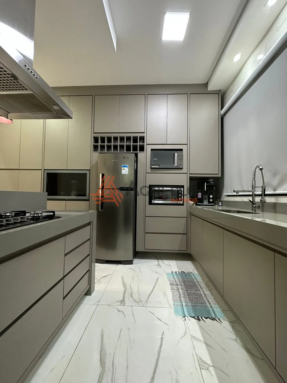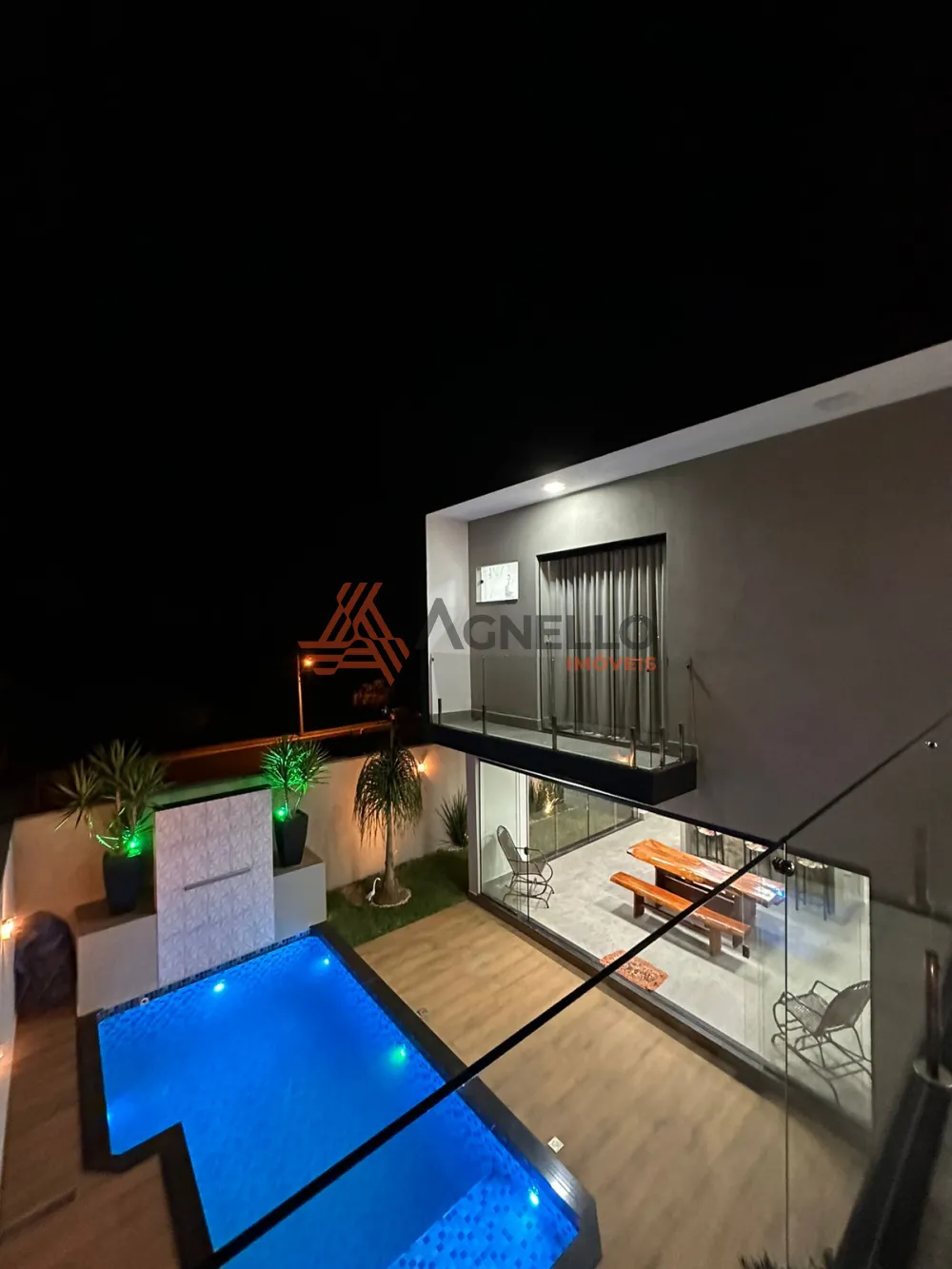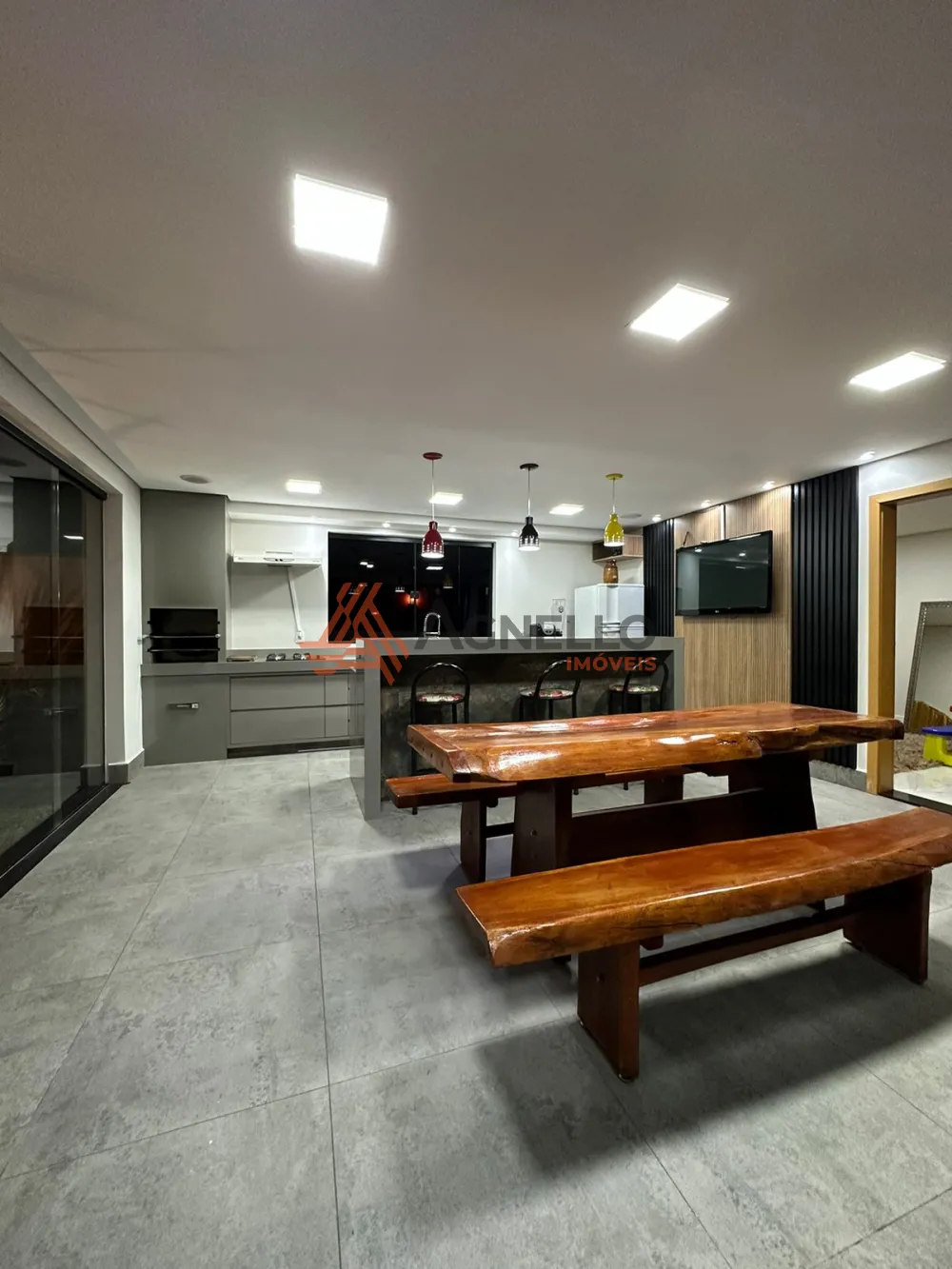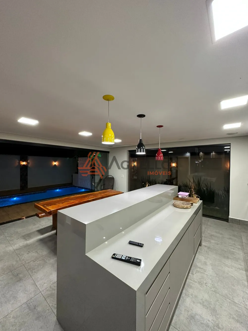 Lindo sobrado invertido, de alto padrão e com fino acabamento. Piso de baixo com piscina, ampla varanda gourmet, um dormitório, sala e banheiro social. Piso superior com uma suíte e duas demi-suítes, salas de estar, jantar e tv, cozinha e garagem coberta.