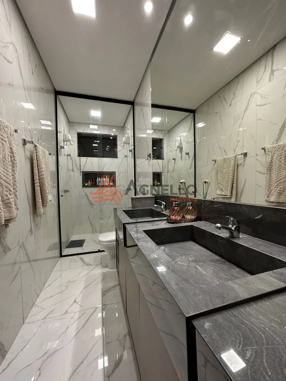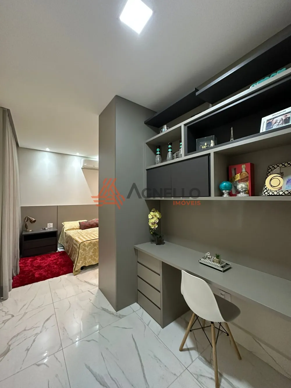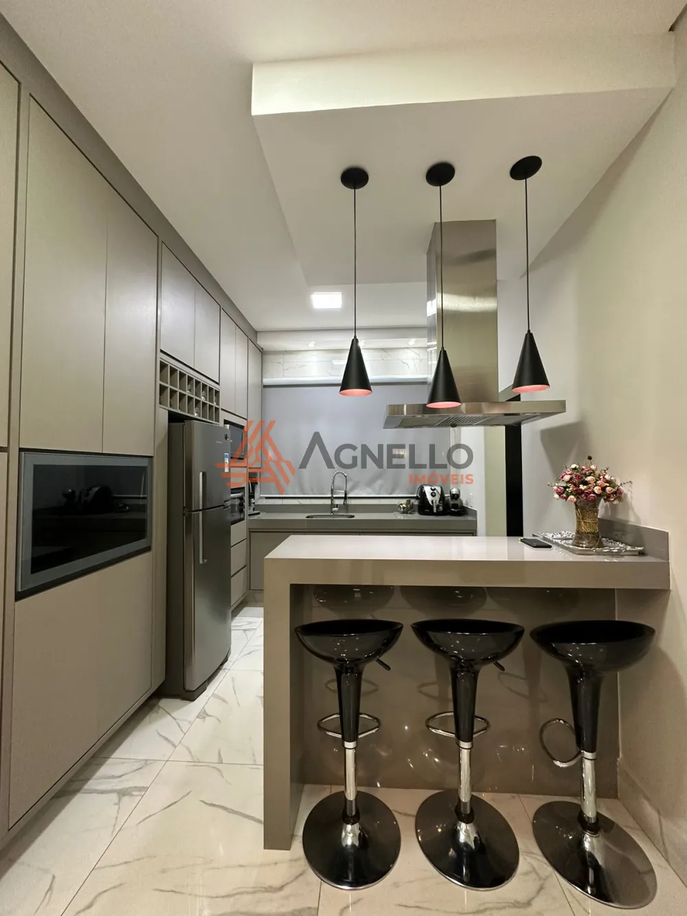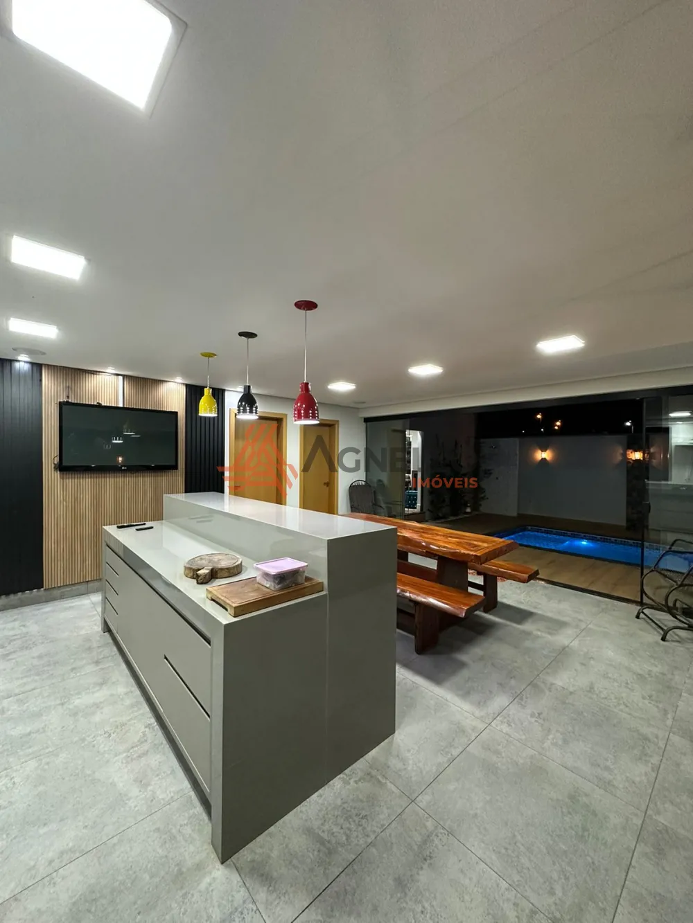 Lindo sobrado invertido, de alto padrão e com fino acabamento. Piso de baixo com piscina, ampla varanda gourmet, um dormitório, sala e banheiro social. Piso superior com uma suíte e duas demi-suítes, salas de estar, jantar e tv, cozinha e garagem coberta.
