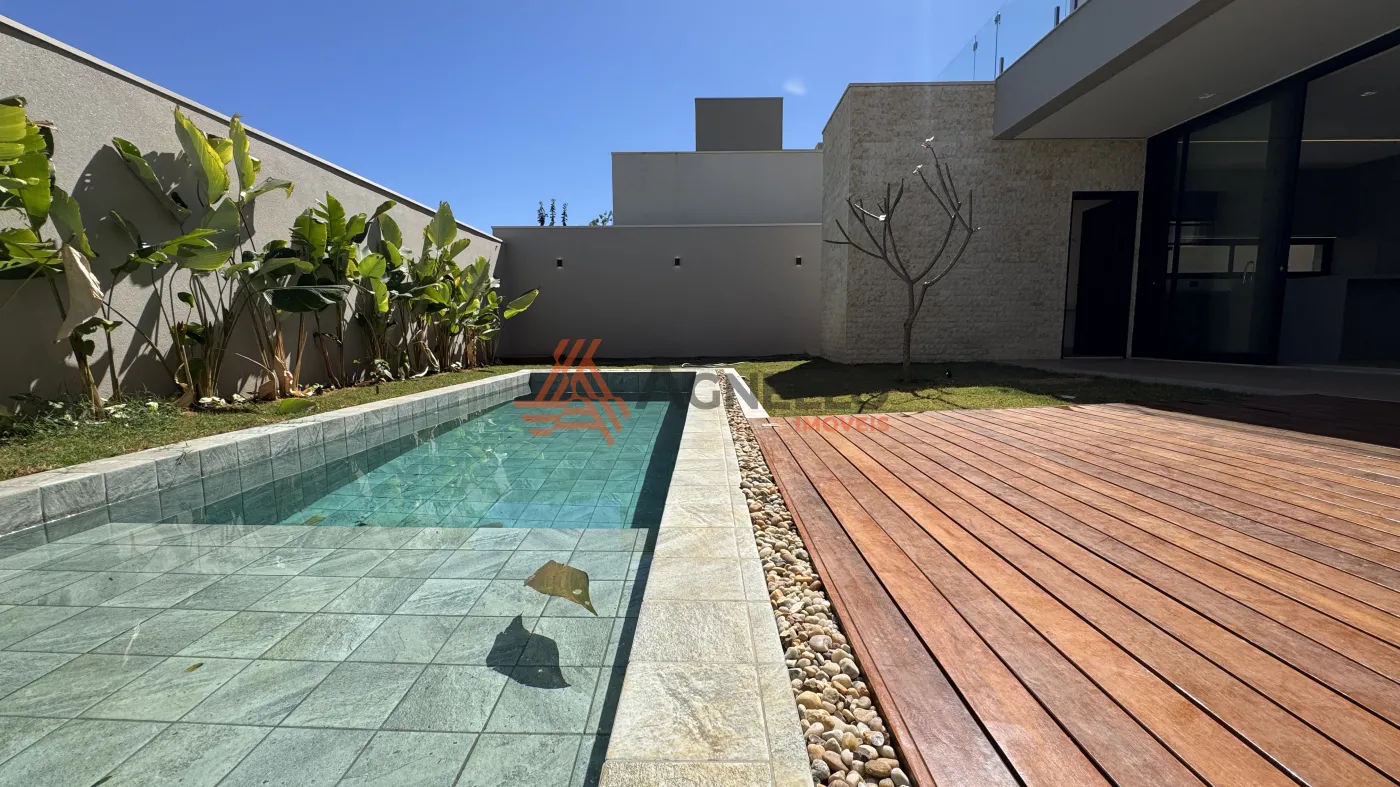 Piscina aquecida e muita área verde com paisagismo básico contando com um ambiente espaçoso.