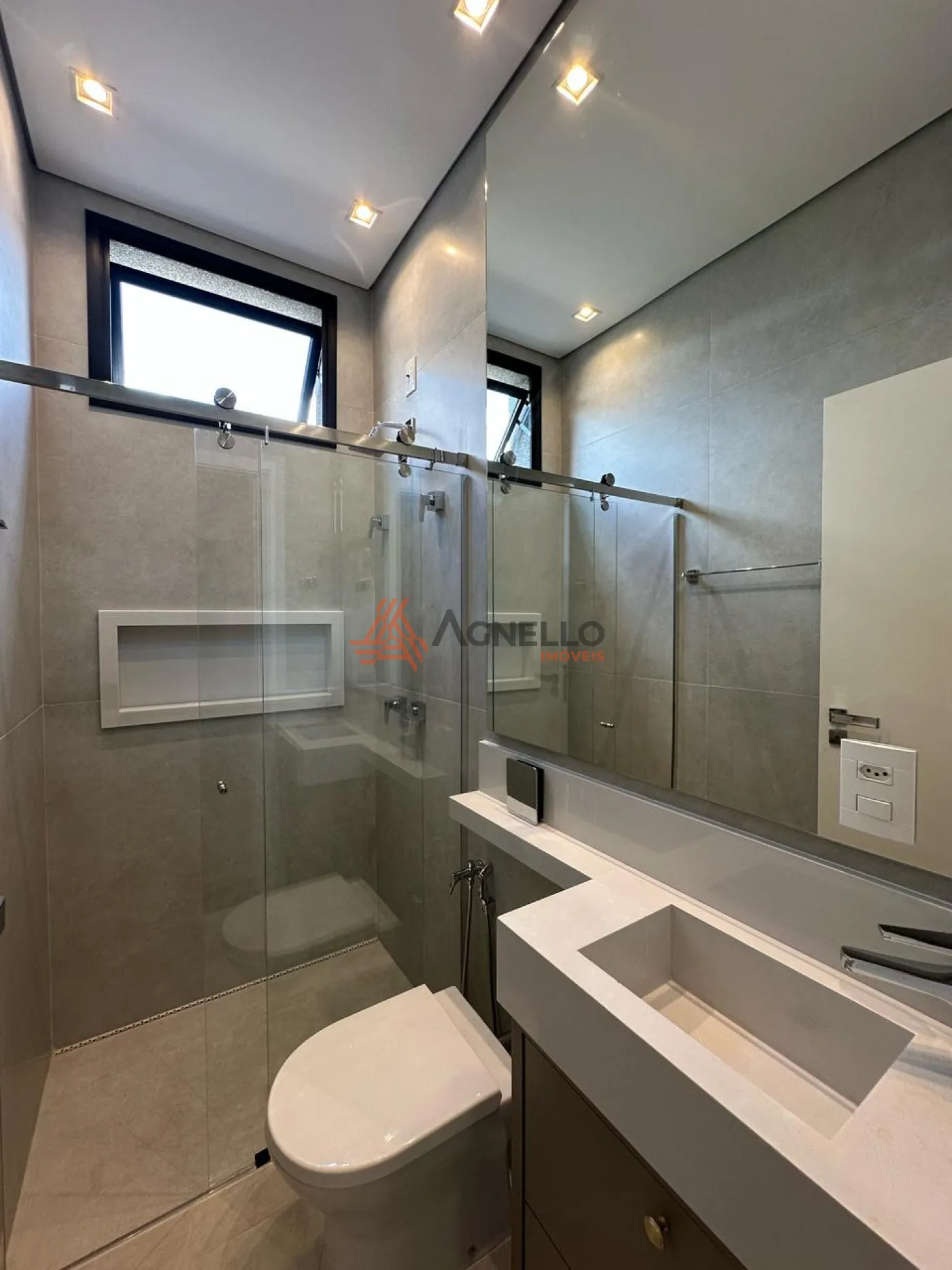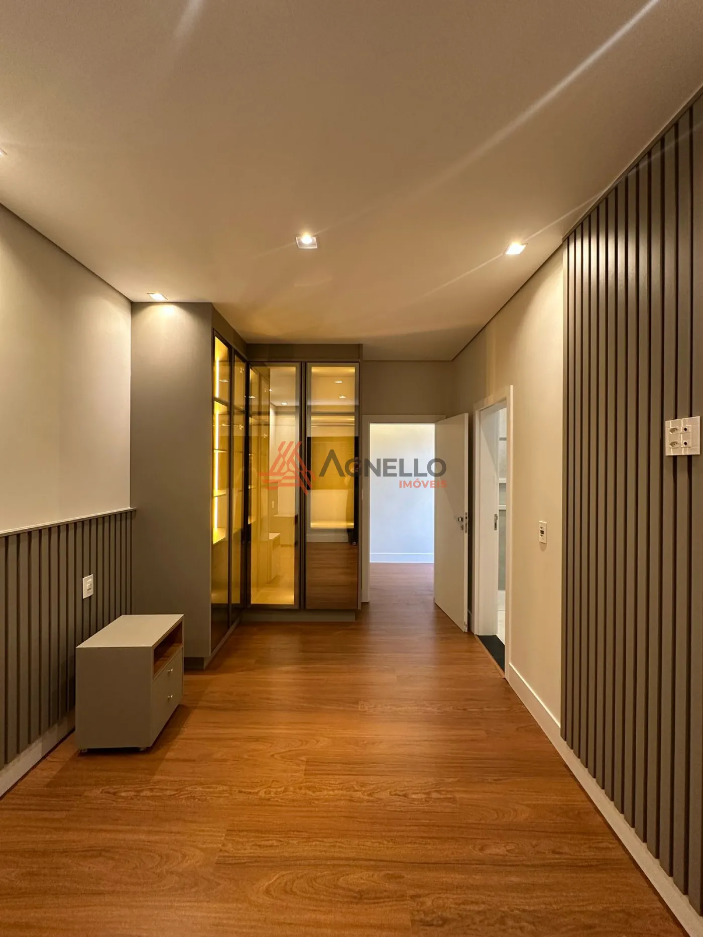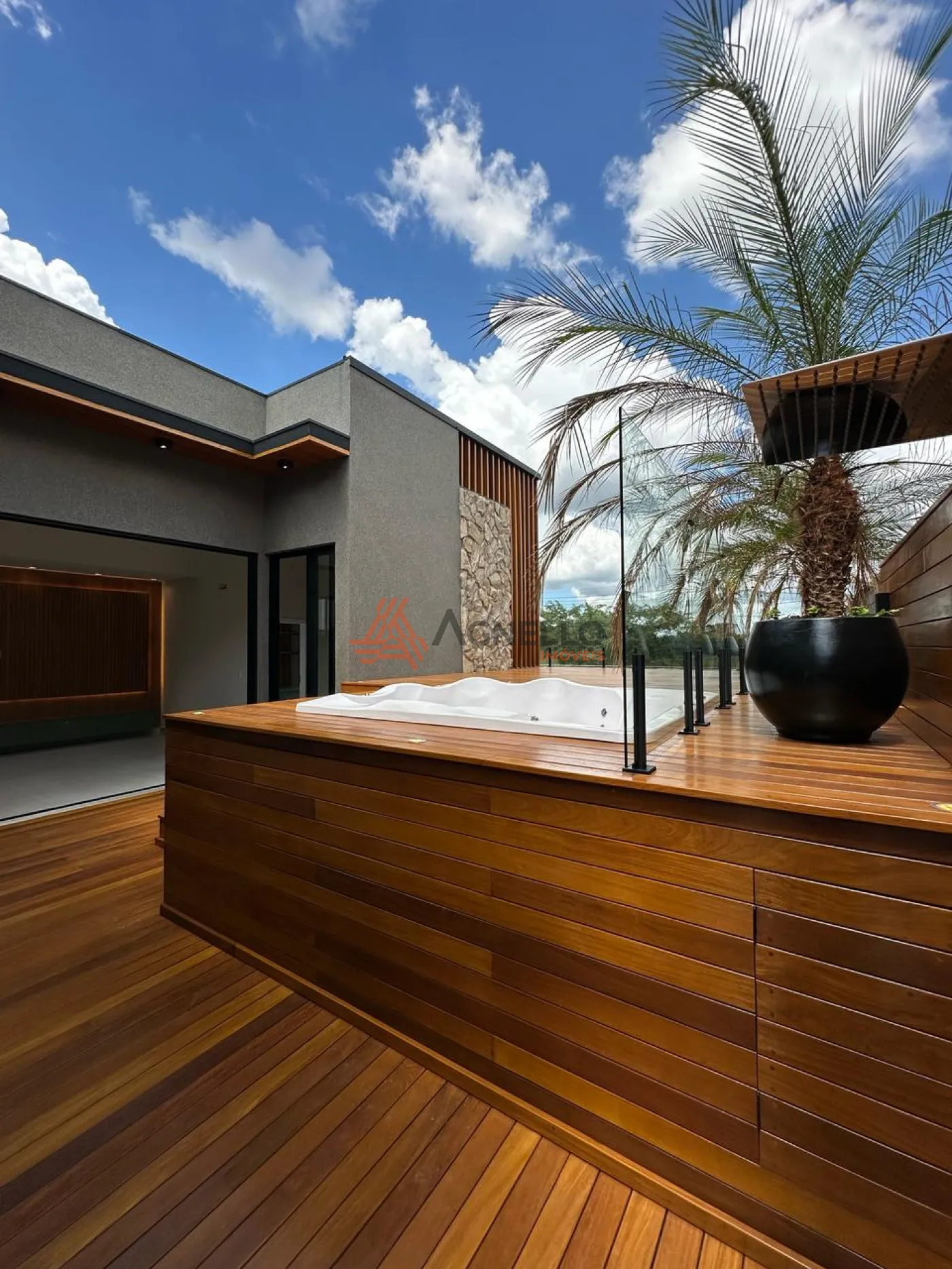 Residência de alto padrão, fino acabamento, com 4 suítes, ampla sala em conceito aberto para 2 ambientes, lavabo, cozinha gourmet com armários, cooktop, coifa e churrasqueira, lavanderia, deck com ofurô e 4 vagas de garagem, sendo 2 cobertas.