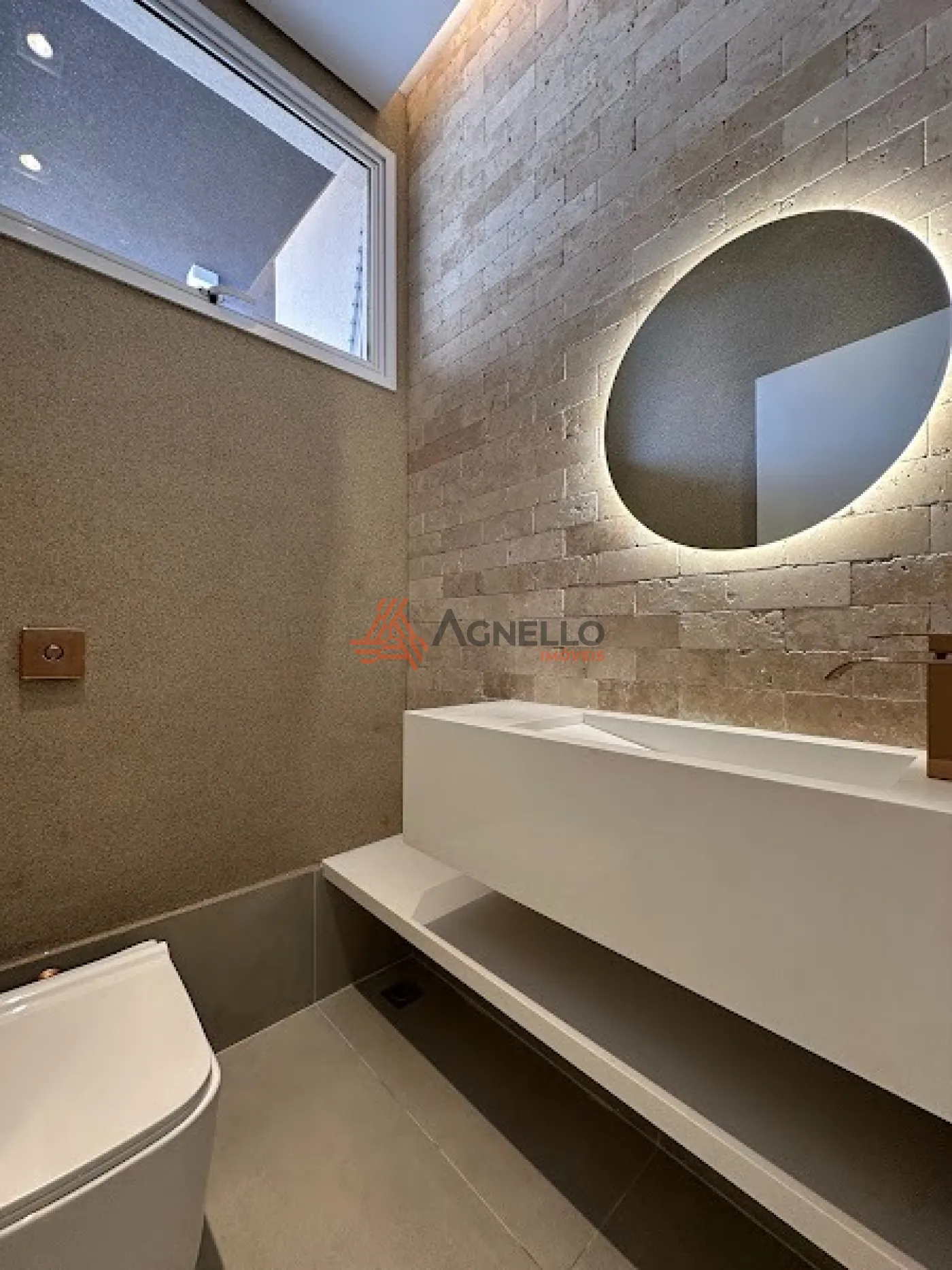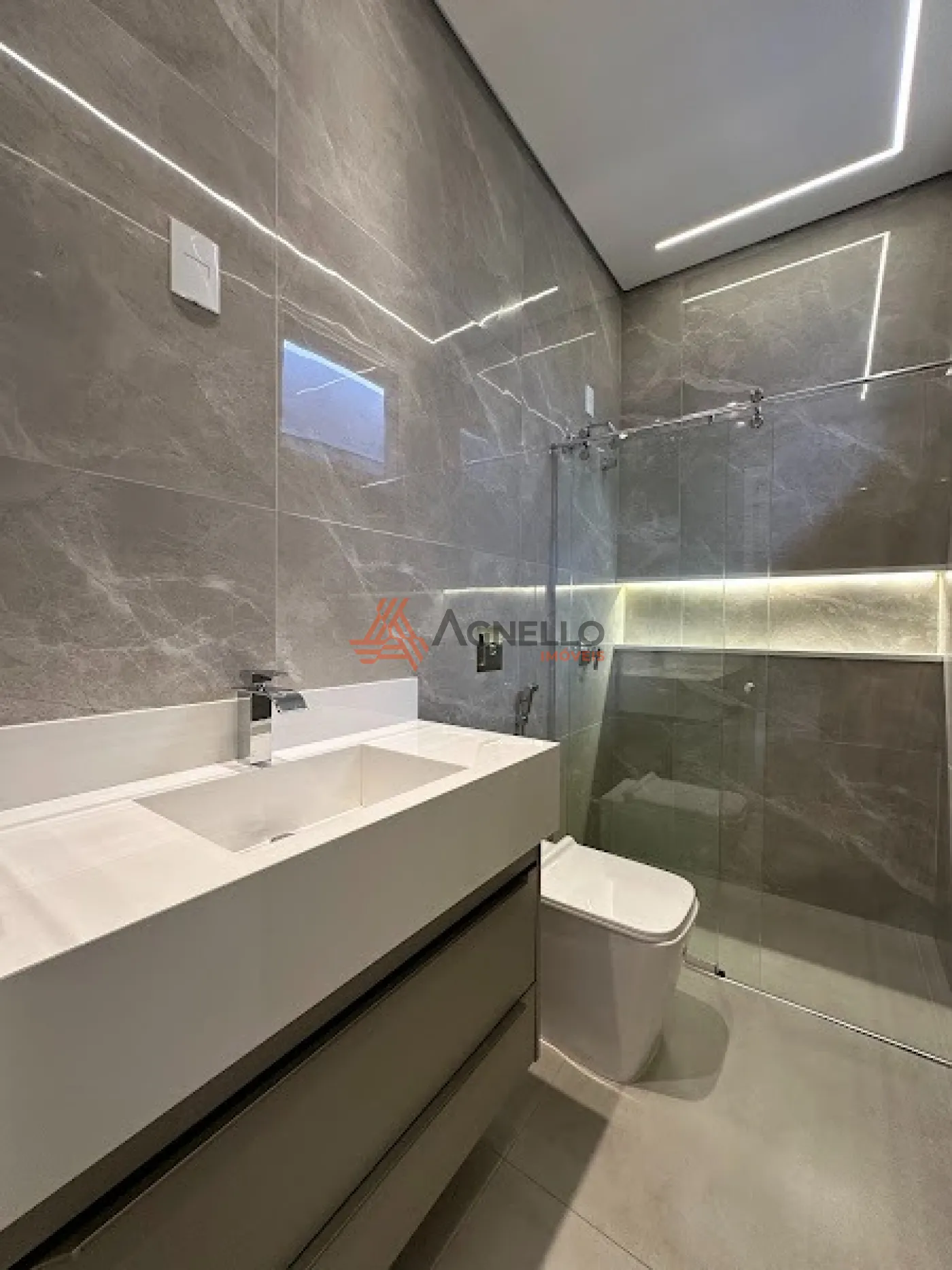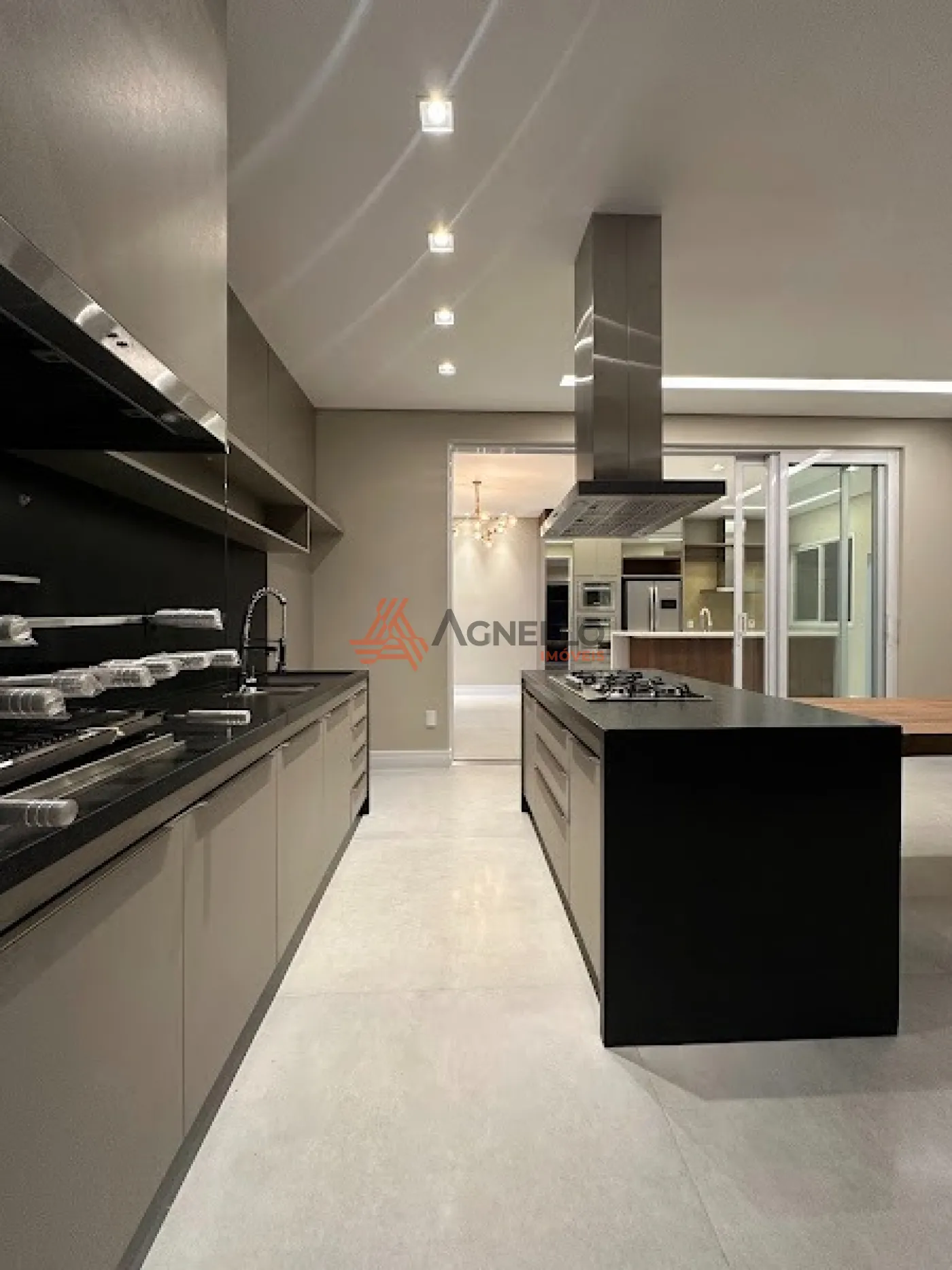Residência de alto padrão, fino acabamento, com 3 suítes com ar condicionado, sala de TV e jantar, cozinha americana completa com armários, cooktop, coifa, geladeira e lava-louças, lavanderia, área gourmet com churrasqueira, piscina com cascata, lavabo e 4 vagas de garagem, sendo 2 cobertas.