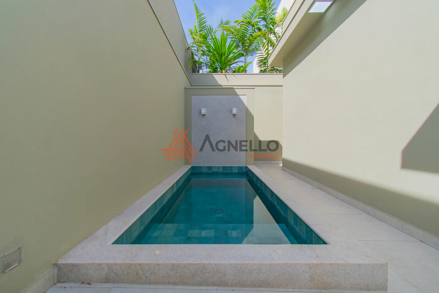 Com três amplas suítes, escritório, salas estar, jantar e tv, lavabo, cozinha gourmet, piscina aquecida, garagem para quatro carros. Construção sólida, excelente acabamento, com ar-condicionado e rica em móveis planejados.