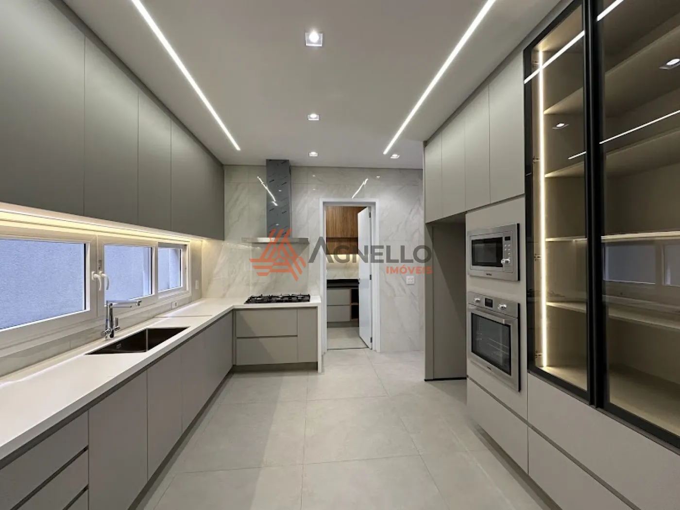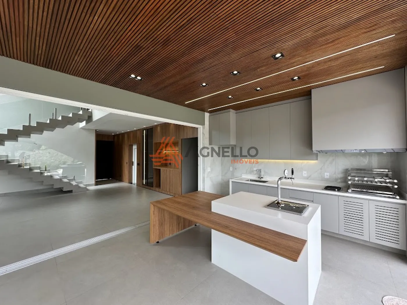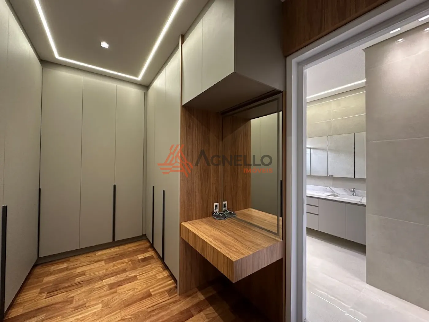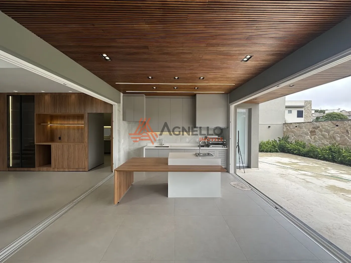 Imóvel de alto padrão, fino acabamento, com quatro suítes, sendo uma delas no térreo, salas de estar, jantar e tv, cozinha fechada, com filtro nas torneiras, dispensa, área gourmet já com chopeira instalada, churrasqueira a carvão, e Grelha, piscina, pressurização em toda casa, irrigação automatizada no jardim, casa rica em armários, pisos porto bello e garagem para quatro carros.