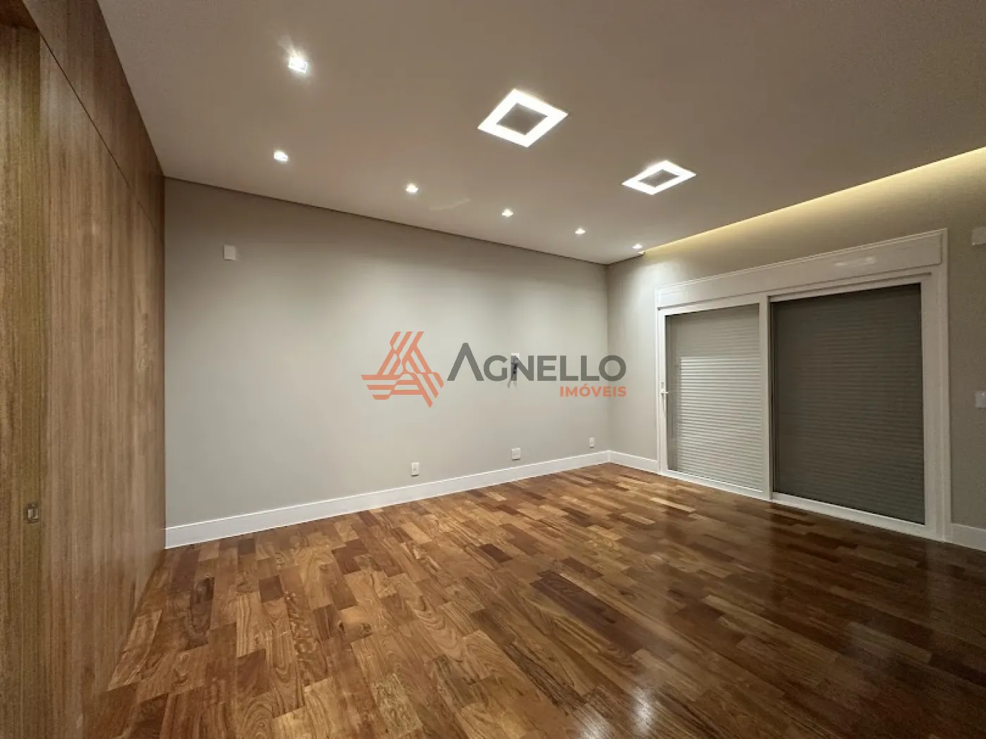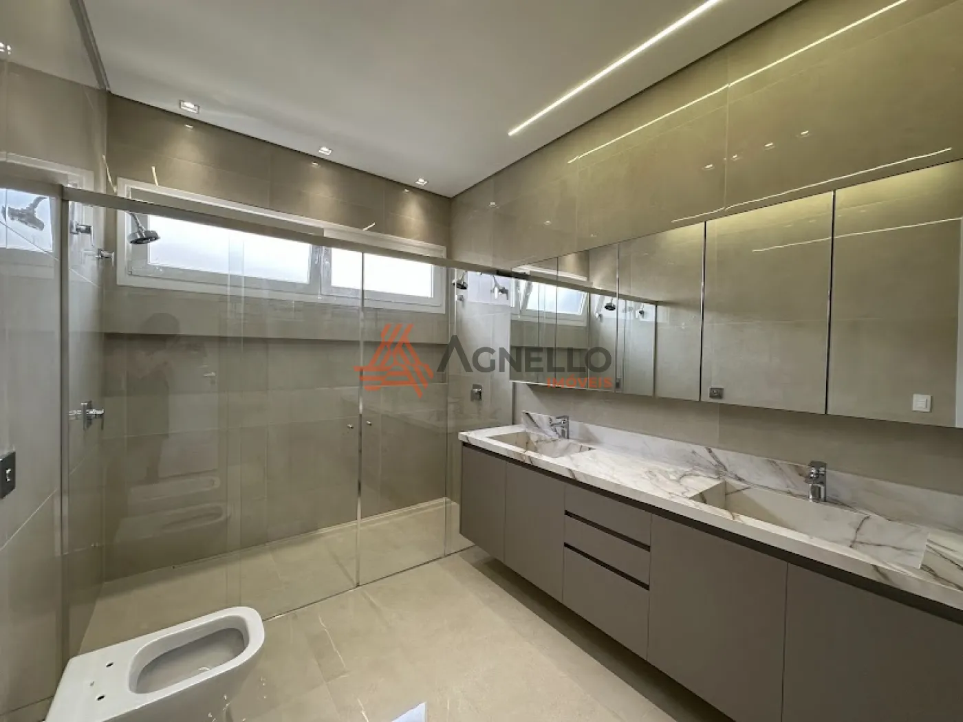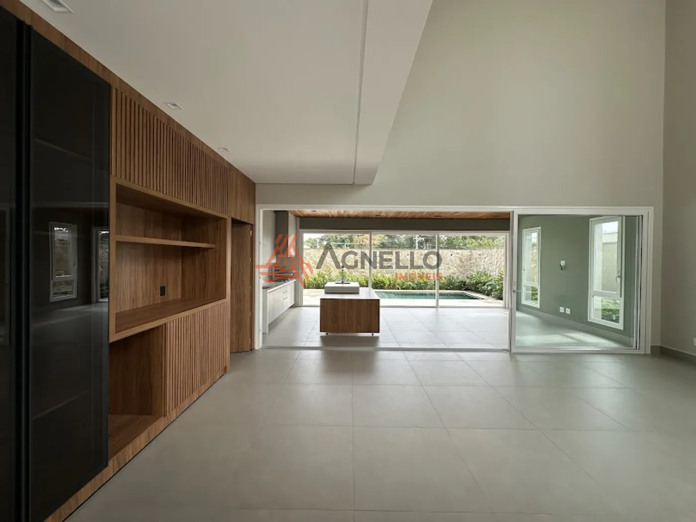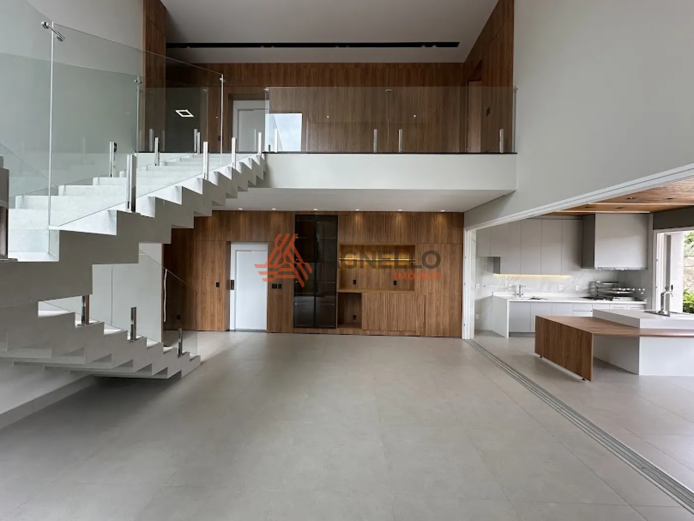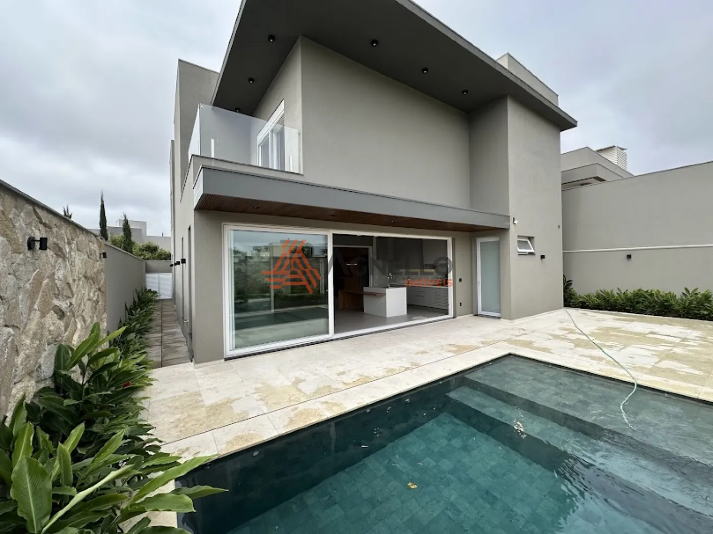 Imóvel de alto padrão, fino acabamento, com quatro suítes, sendo uma delas no térreo, salas de estar, jantar e tv, cozinha fechada, com filtro nas torneiras, dispensa, área gourmet já com chopeira instalada, churrasqueira a carvão, e Grelha, piscina, pressurização em toda casa, irrigação automatizada no jardim, casa rica em armários, pisos porto bello e garagem para quatro carros.