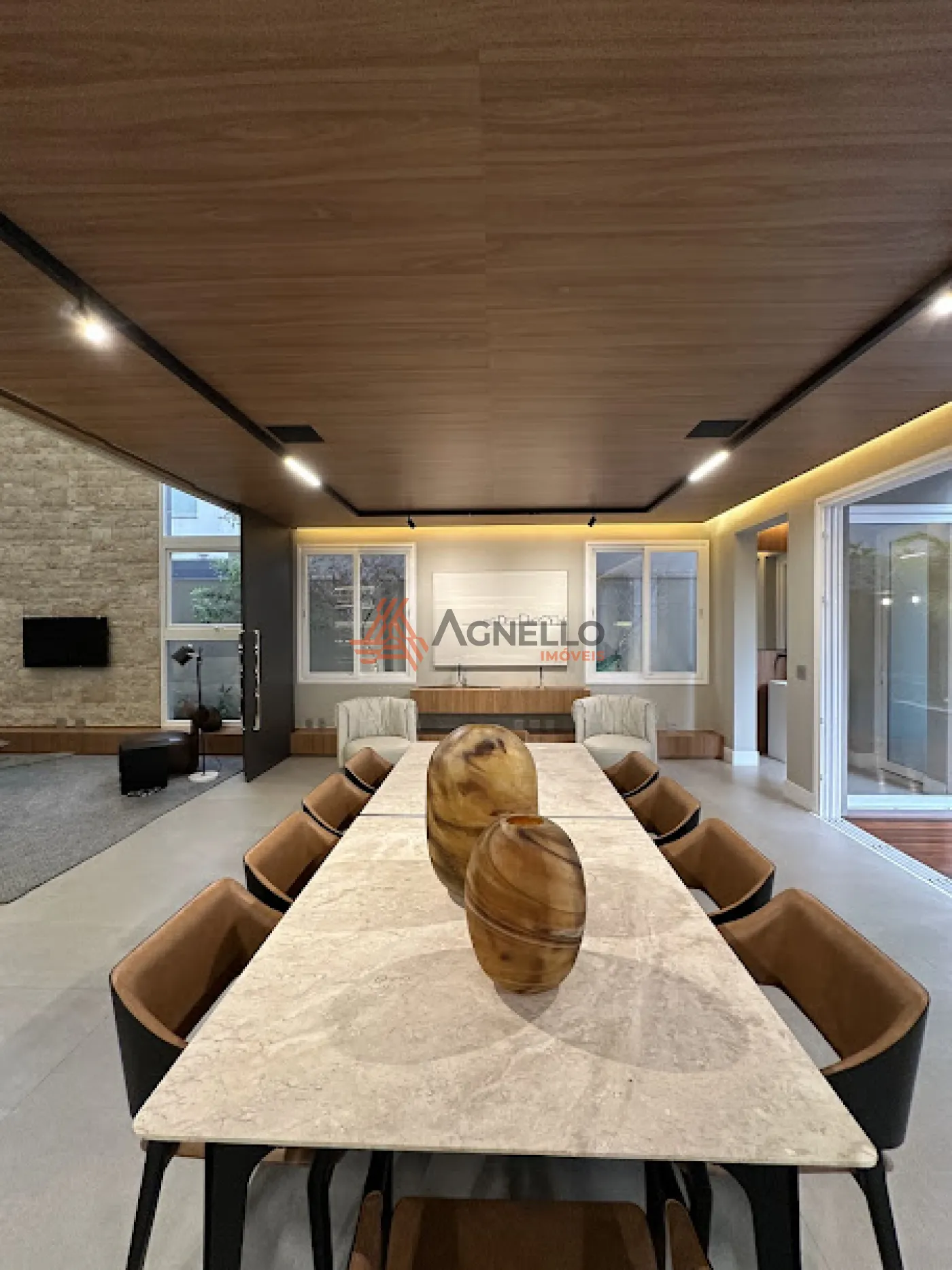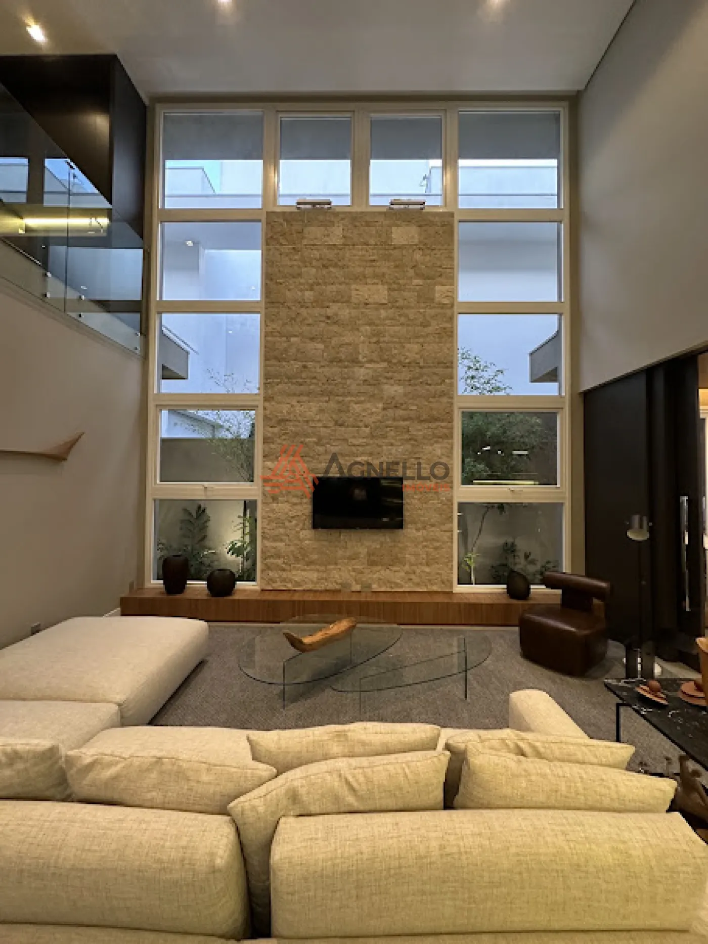 Sala ampla com pé direiro de 7 metros de altura;