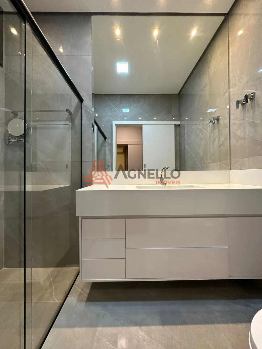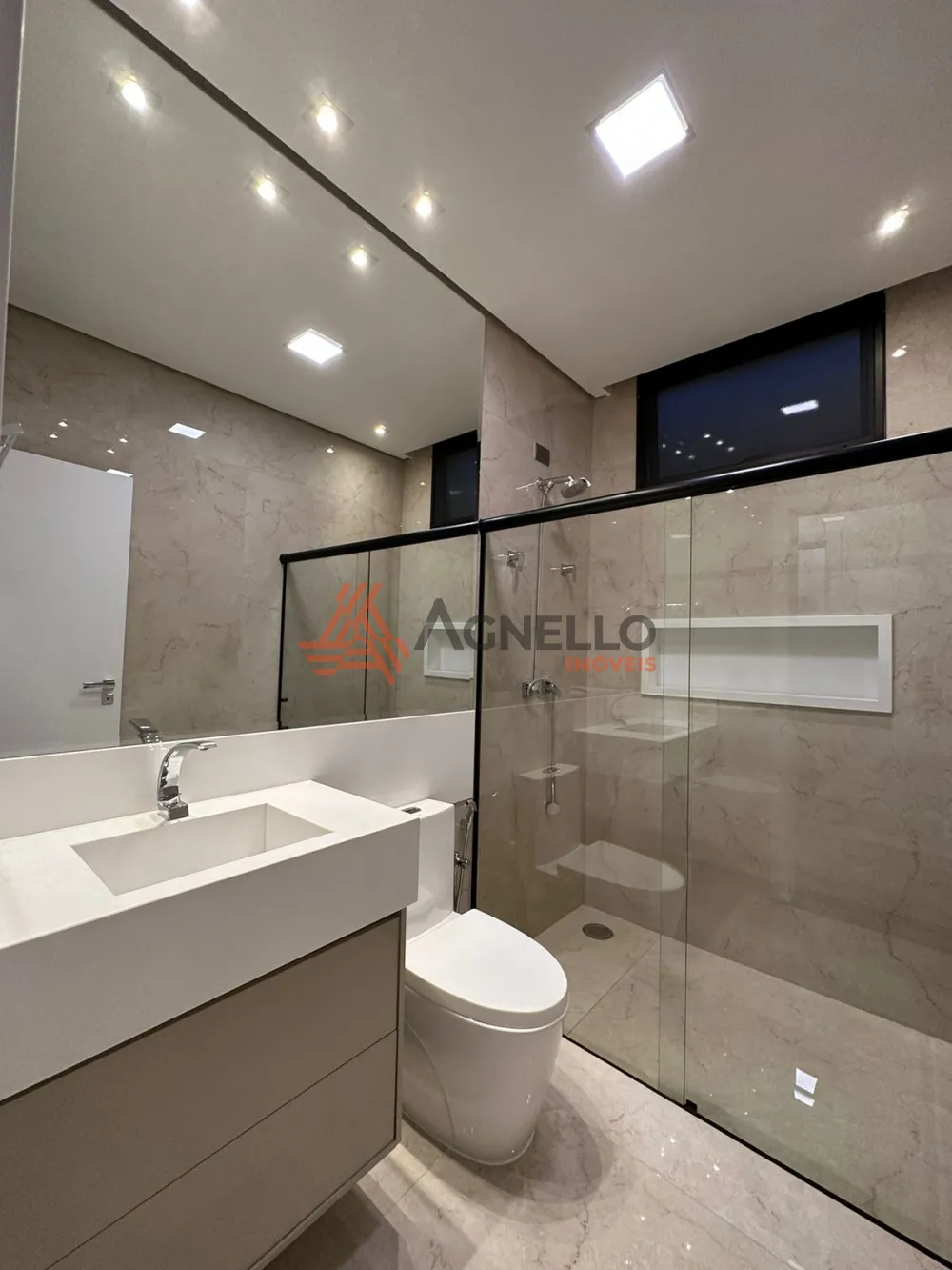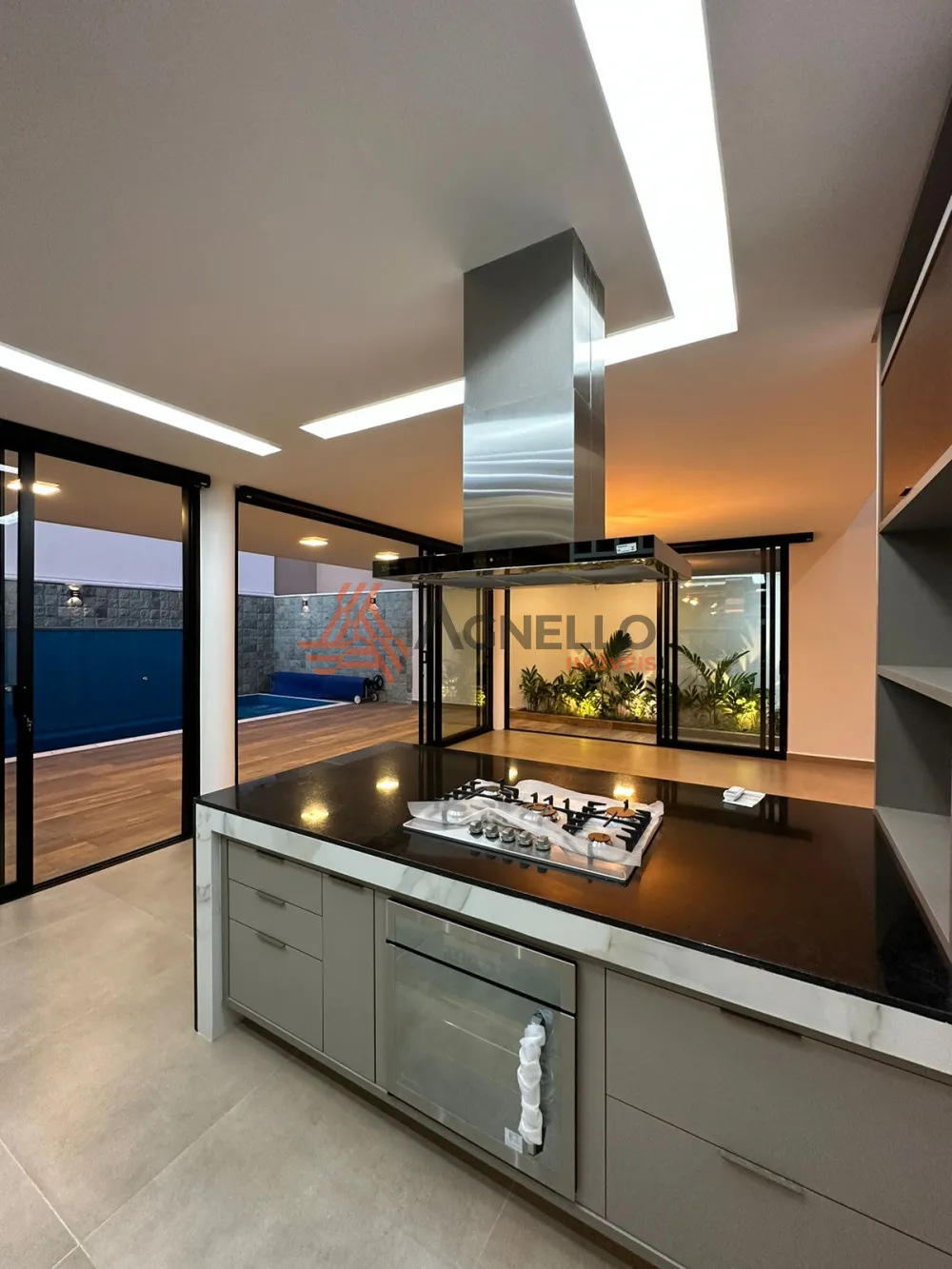 Casa de alto padrão, acabamento refinado, com 3 suítes com closets, sendo 1 master com banheira, ampla sala em conceito aberto, cozinha americana completa com armários, cooktop, coifa e churrasqueira, lavanderia, piscina com sauna e 5 vagas de garagem.