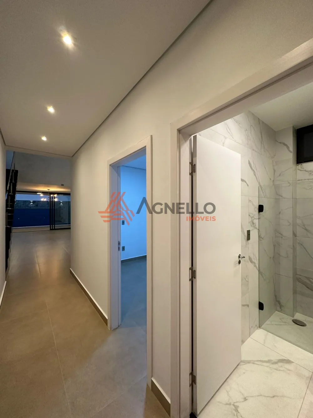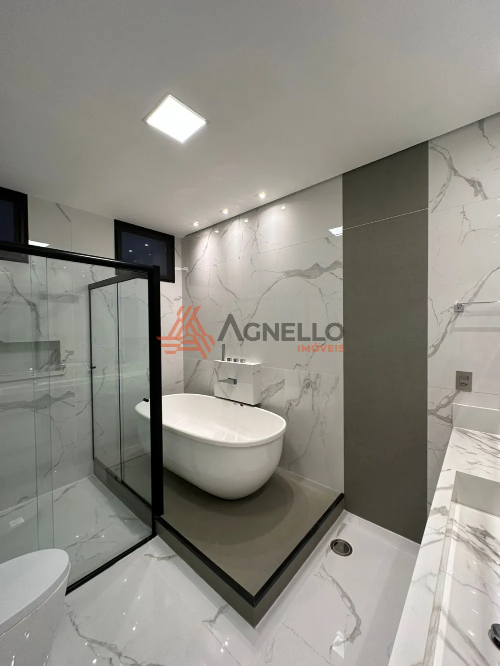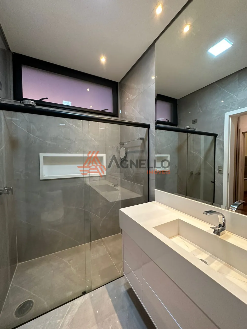 Casa de alto padrão, acabamento refinado, com 3 suítes com closets, sendo 1 master com banheira, ampla sala em conceito aberto, cozinha americana completa com armários, cooktop, coifa e churrasqueira, lavanderia, piscina com sauna e 5 vagas de garagem.