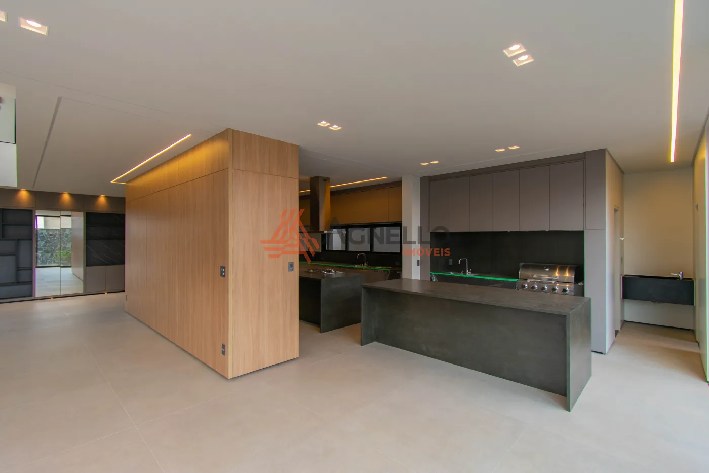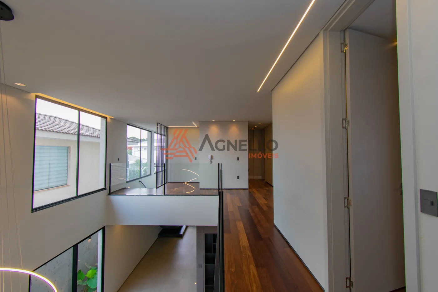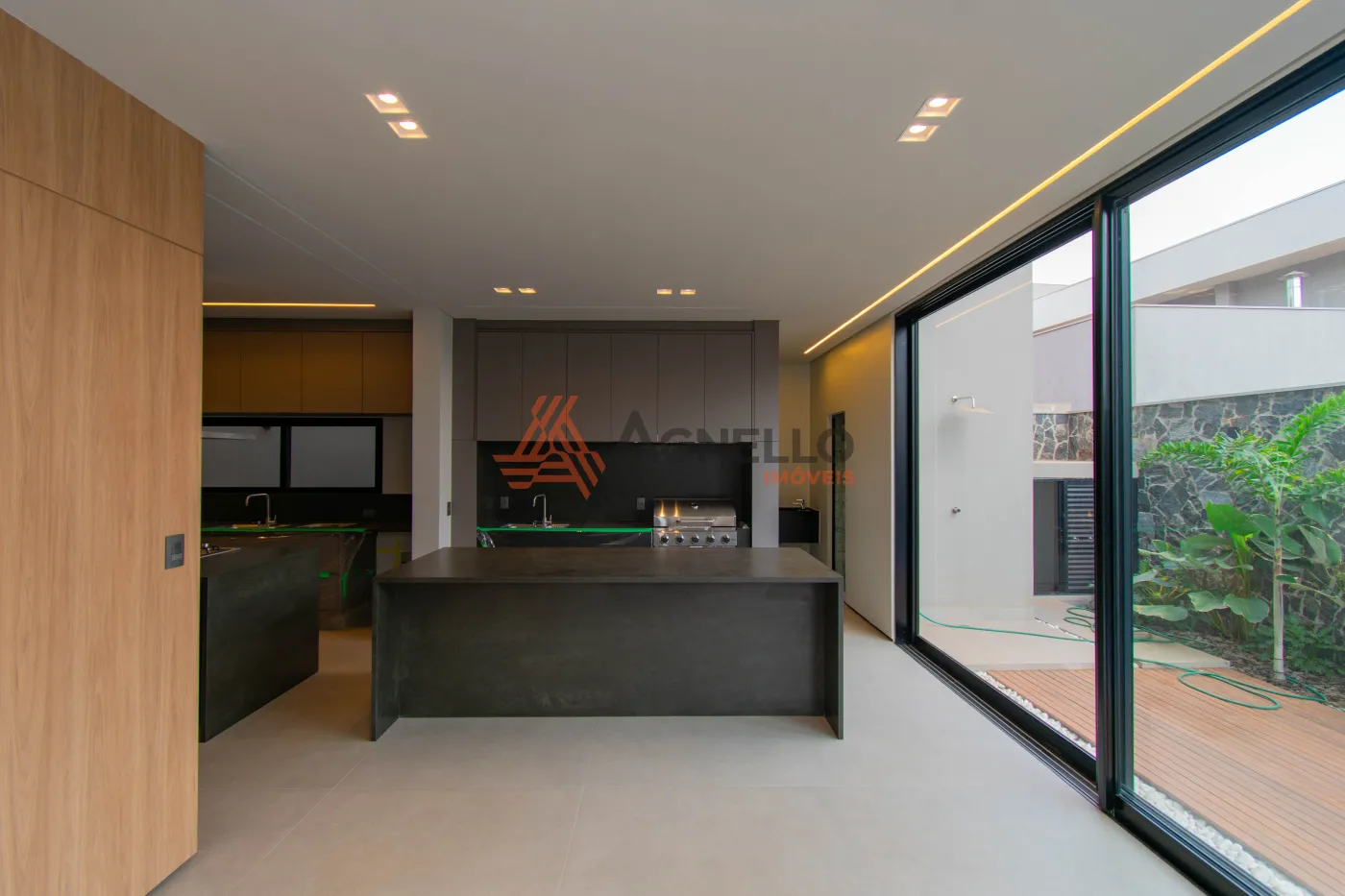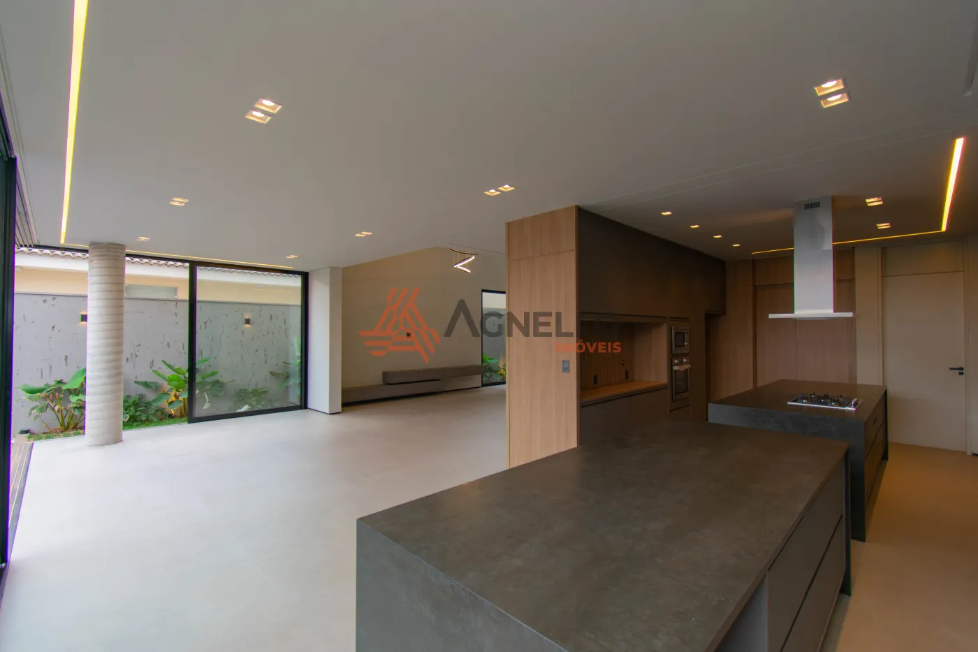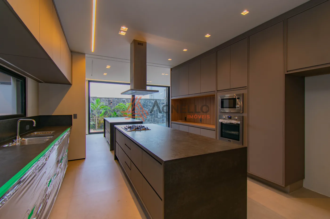 Casa de alto padrão, com 4 suítes, ampla sala inferior em conceito aberto para 3 ambientes, sala superior, ampla cozinha, despensa, lavabo, lavanderia, área gourmet com churrasqueira, jardim de inverno, piscina, sauna e 4 vagas de garagem.