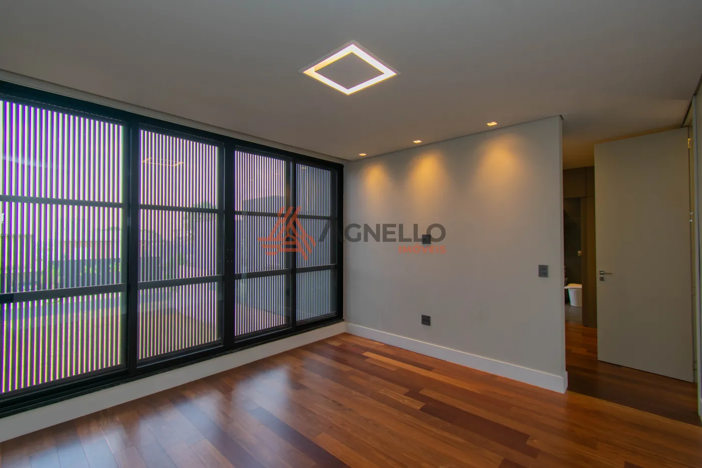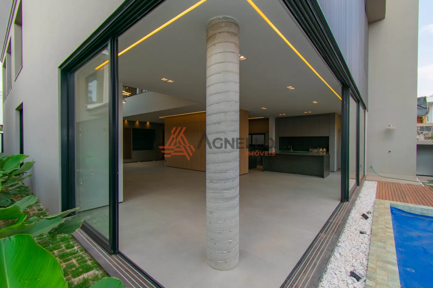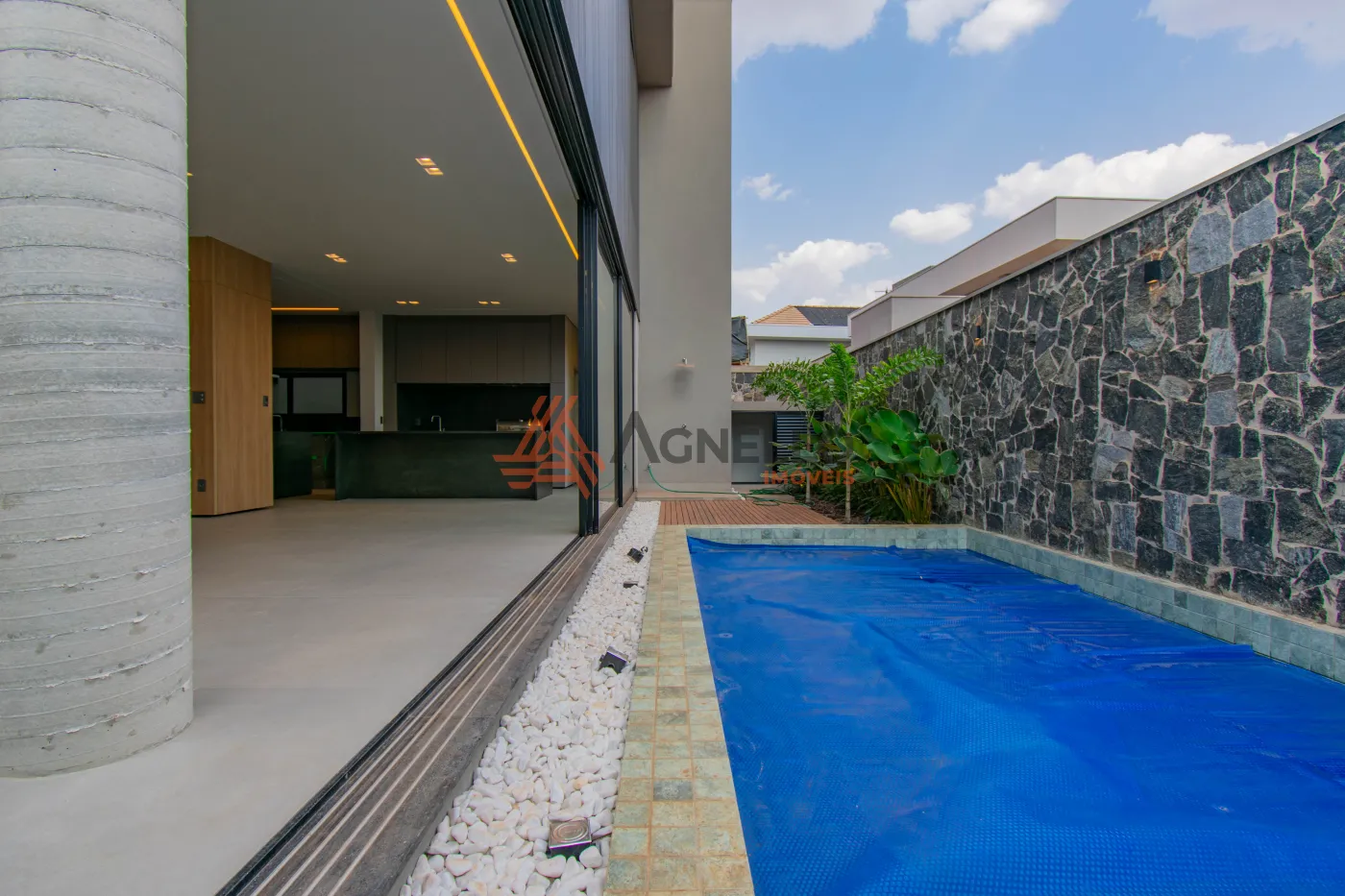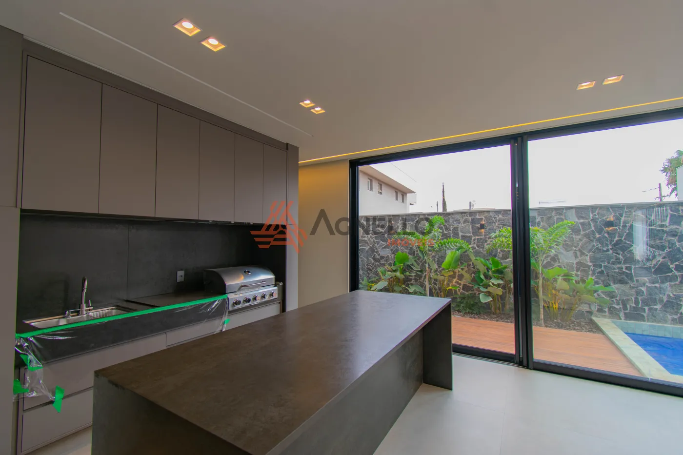 Casa de alto padrão, com 4 suítes, ampla sala inferior em conceito aberto para 3 ambientes, sala superior, ampla cozinha, despensa, lavabo, lavanderia, área gourmet com churrasqueira, jardim de inverno, piscina, sauna e 4 vagas de garagem.