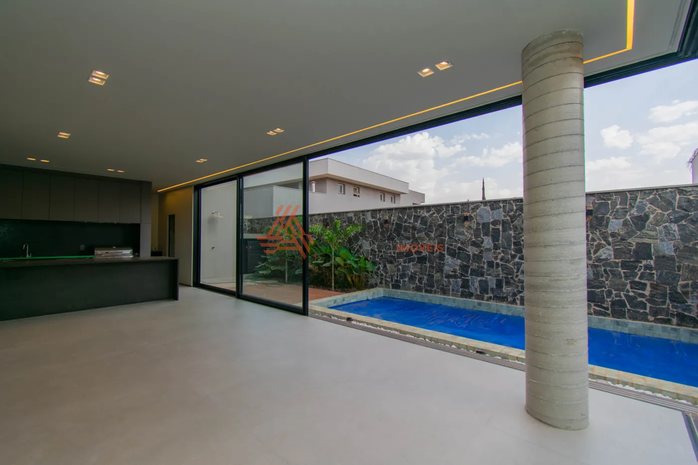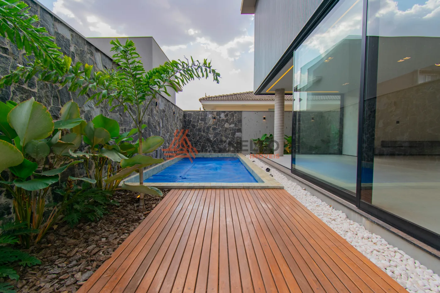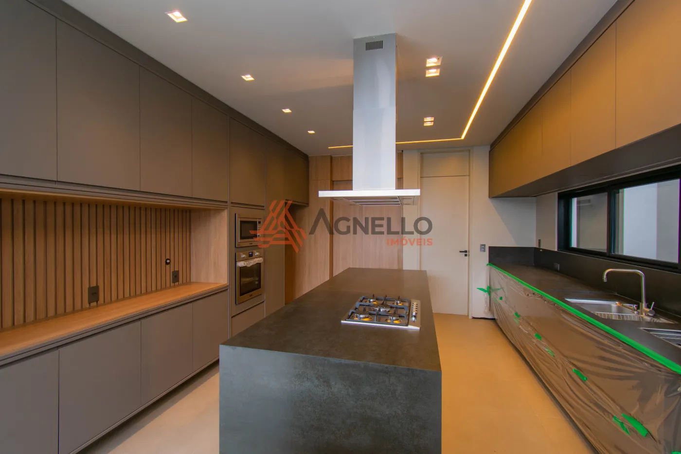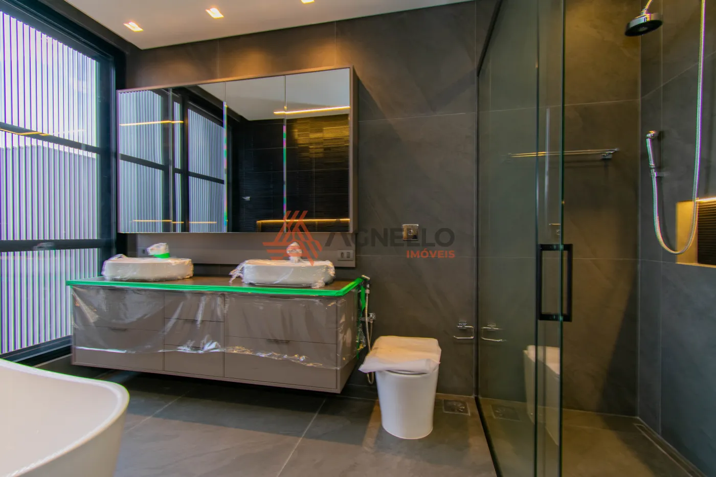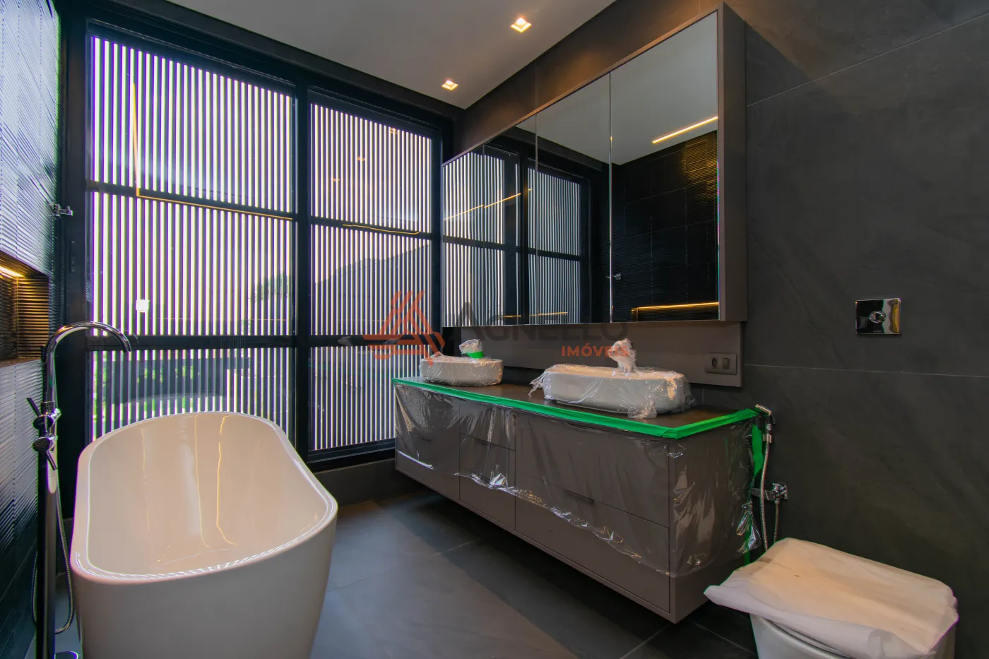 Casa de alto padrão, com 4 suítes, ampla sala inferior em conceito aberto para 3 ambientes, sala superior, ampla cozinha, despensa, lavabo, lavanderia, área gourmet com churrasqueira, jardim de inverno, piscina, sauna e 4 vagas de garagem.