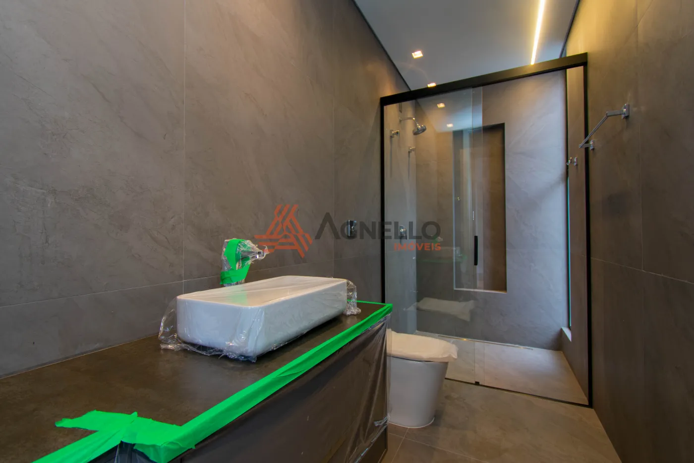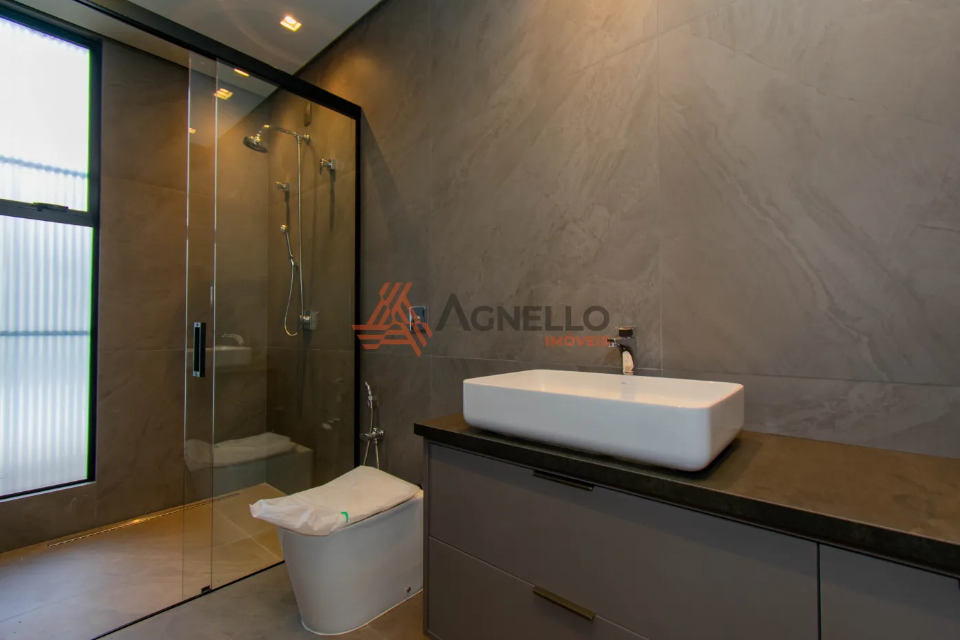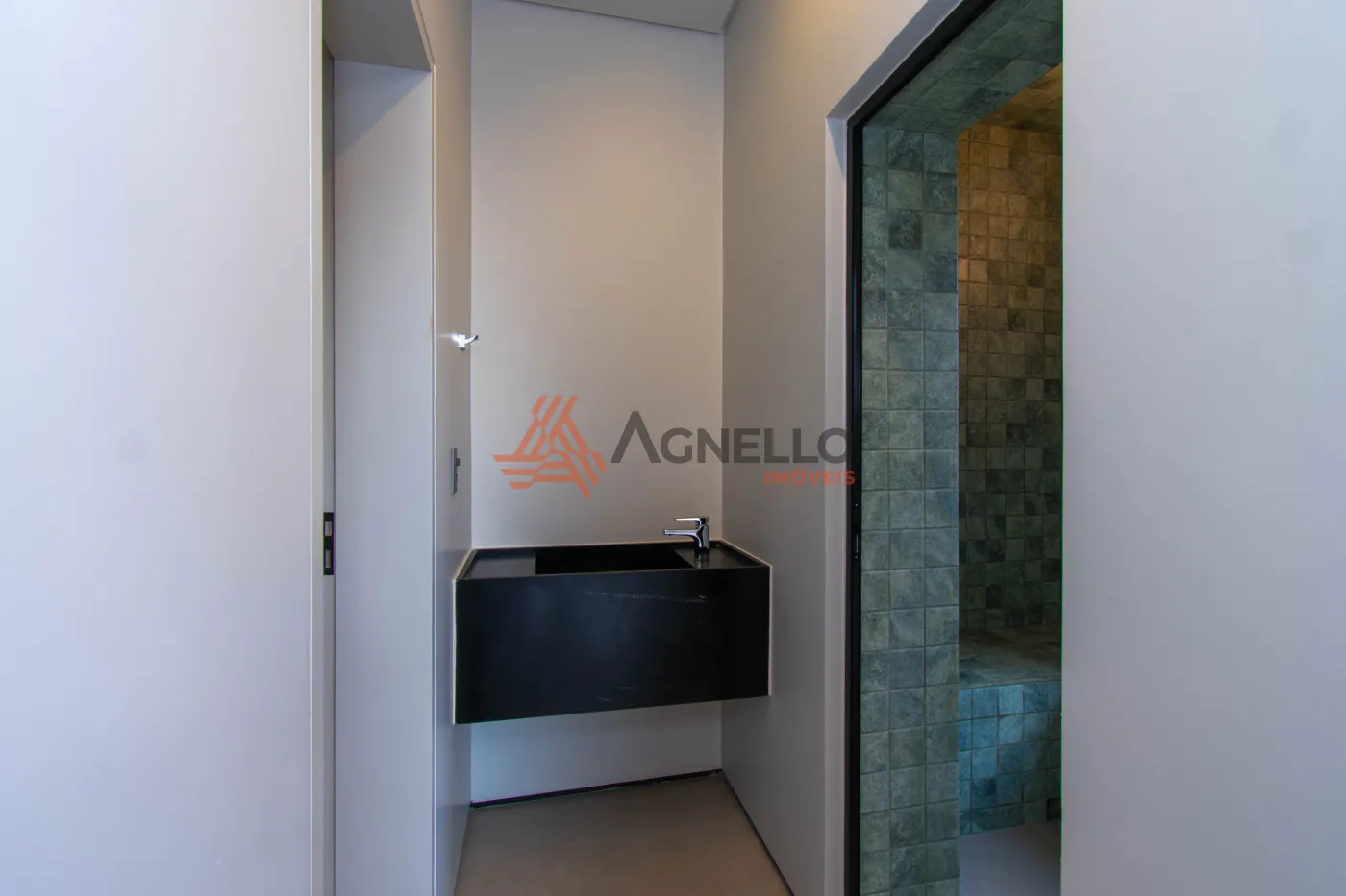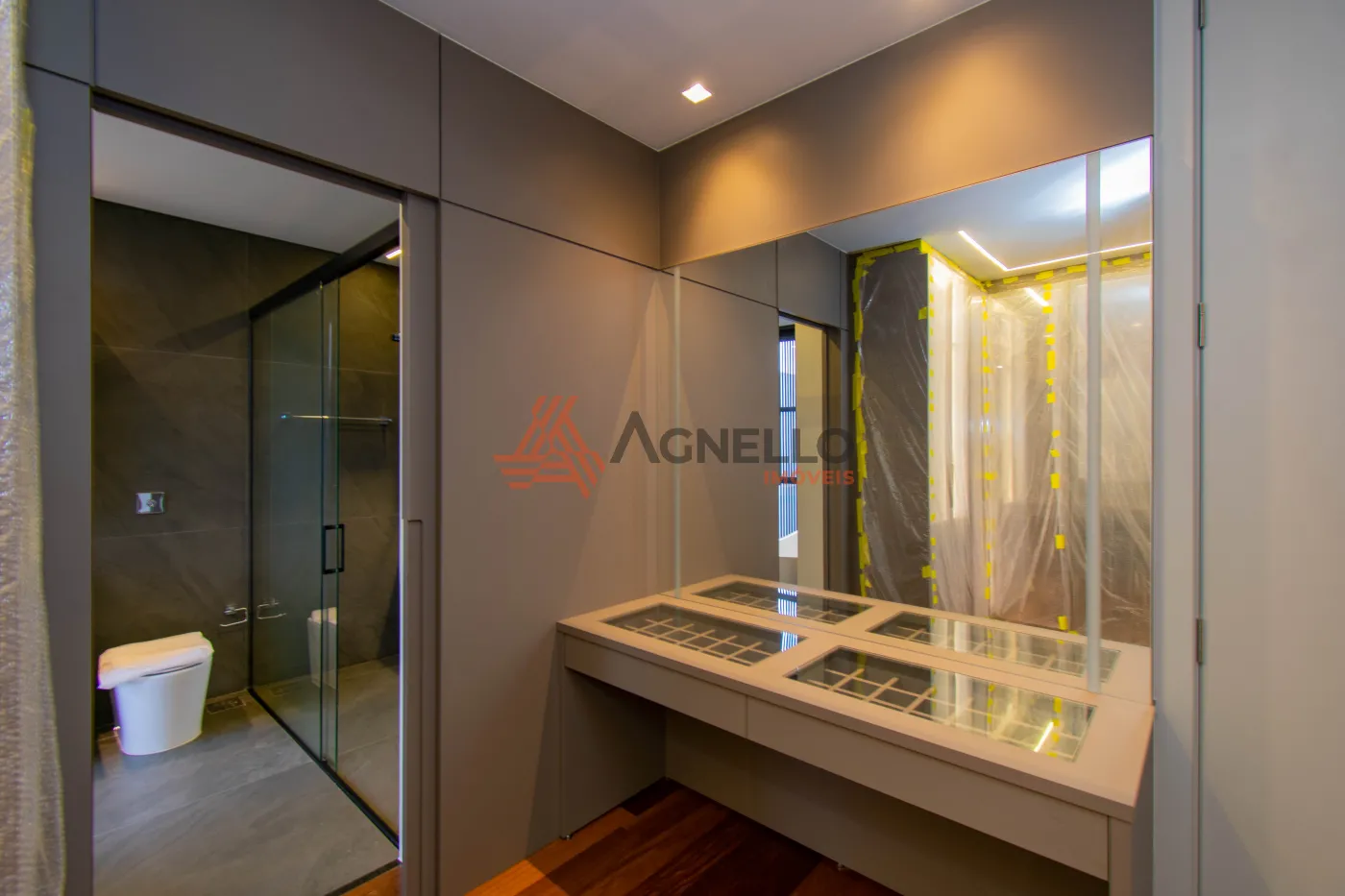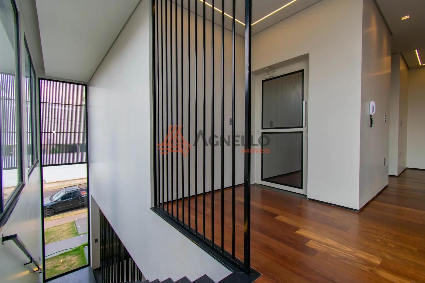 Casa de alto padrão, com 4 suítes, ampla sala inferior em conceito aberto para 3 ambientes, sala superior, ampla cozinha, despensa, lavabo, lavanderia, área gourmet com churrasqueira, jardim de inverno, piscina, sauna e 4 vagas de garagem.
