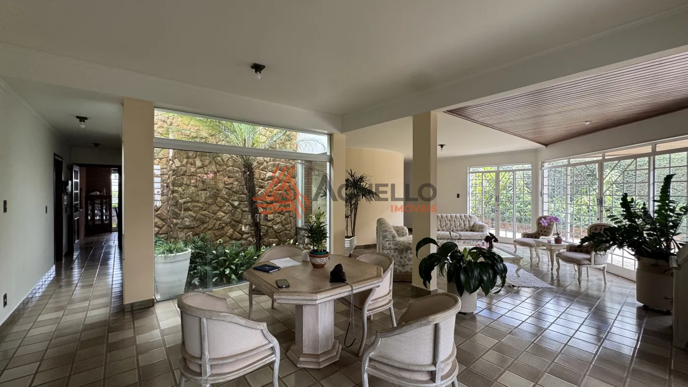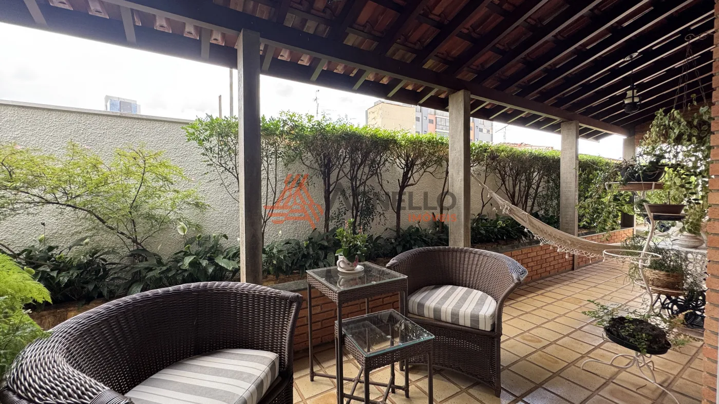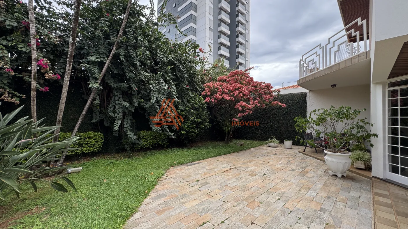 Linda residência, possuindo 3 suítes, todas com sacada e 1 com banheira, ampla sala para visitas, salas de jantar, estar e TV, escritório, lavabo, Jardins que envolvem todos esses ambientes, cozinha privativa com armários, coifa, forno e micro-ondas, lavanderia com quarto de despejo, dormitório e banheiro de serviço, despensa, varanda e 3 amplas vagas de garagem cobertas.