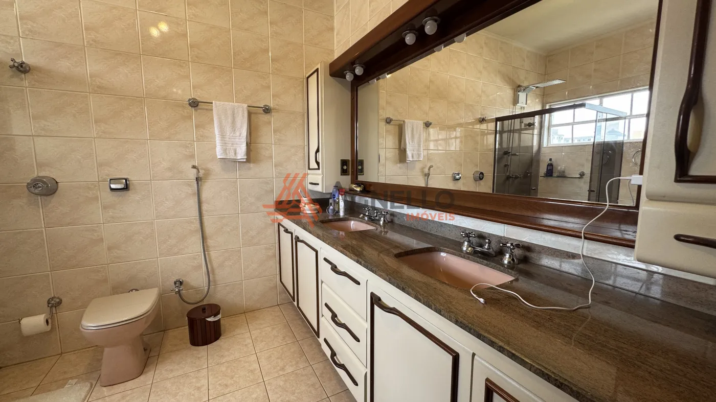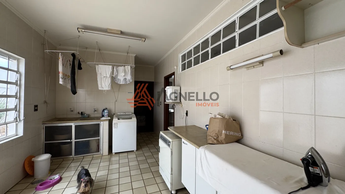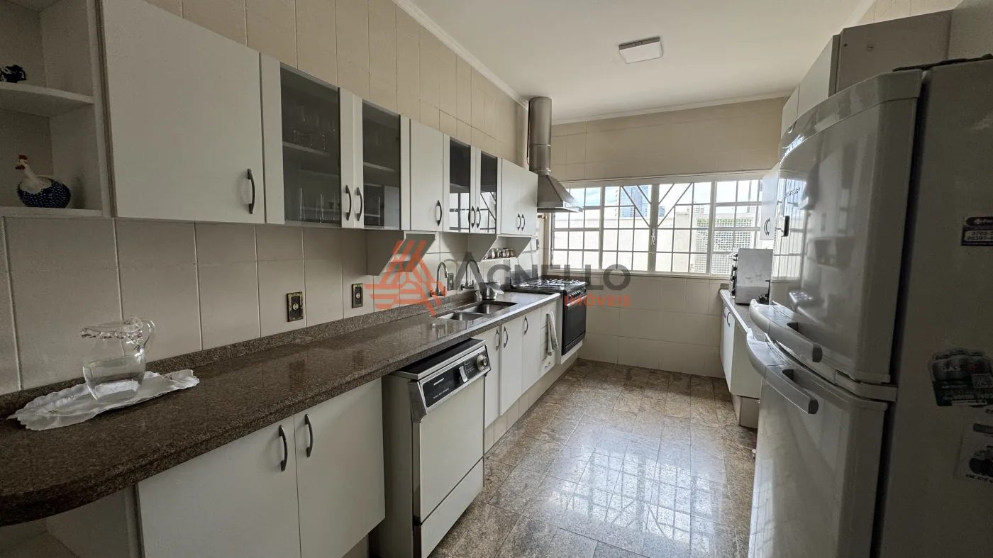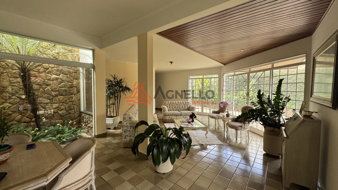 Linda residência, possuindo 3 suítes, todas com sacada e 1 com banheira, ampla sala para visitas, salas de jantar, estar e TV, escritório, lavabo, Jardins que envolvem todos esses ambientes, cozinha privativa com armários, coifa, forno e micro-ondas, lavanderia com quarto de despejo, dormitório e banheiro de serviço, despensa, varanda e 3 amplas vagas de garagem cobertas.