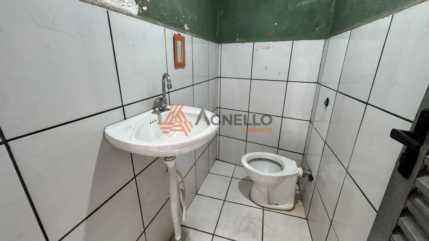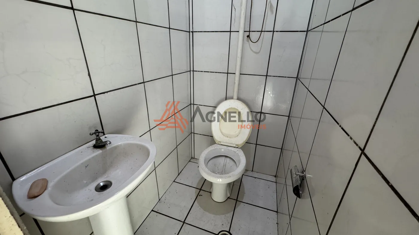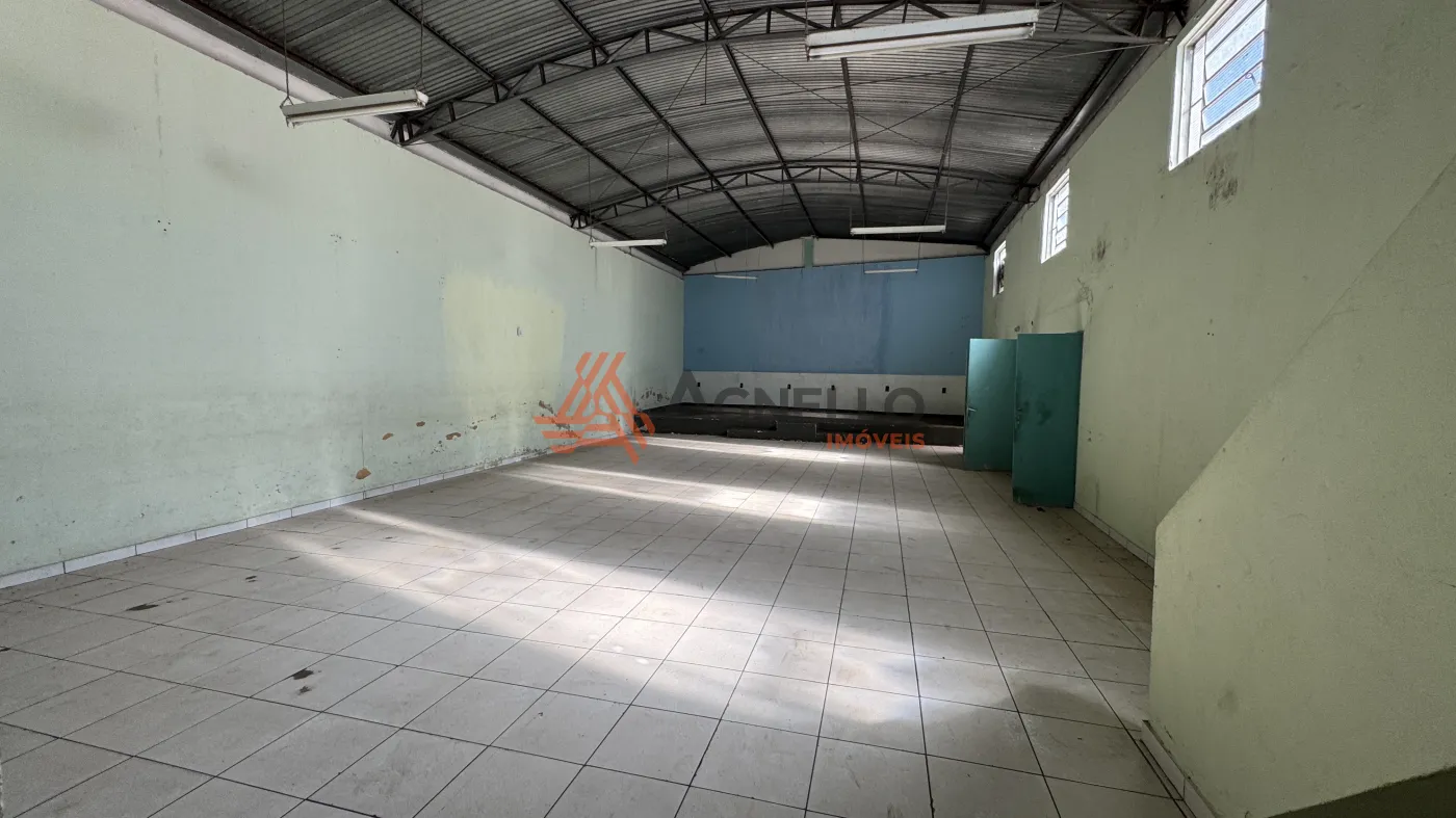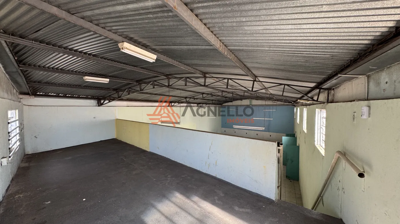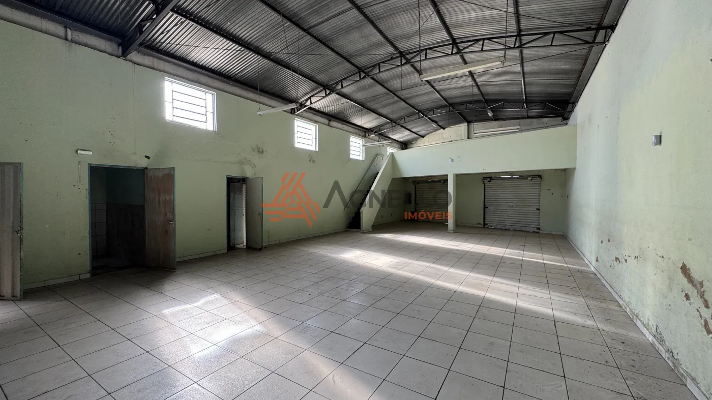 Amplo galpão com 213 m², ideal para lojas, linhas de produção em geral, com mezanino, 4 banheiros privativos e sala aos fundos.
