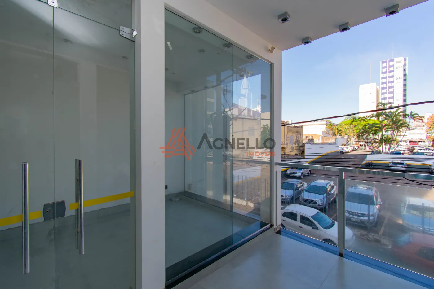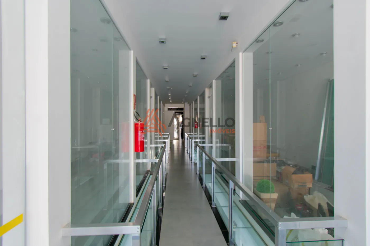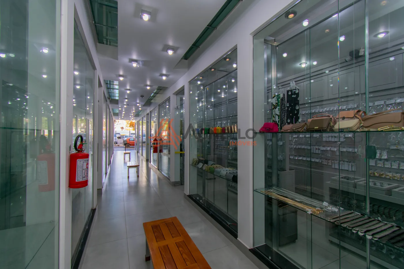 Galeria com quatro amplas lojas e ótimo acabamento. Prédio com elevador e dois banheiros.