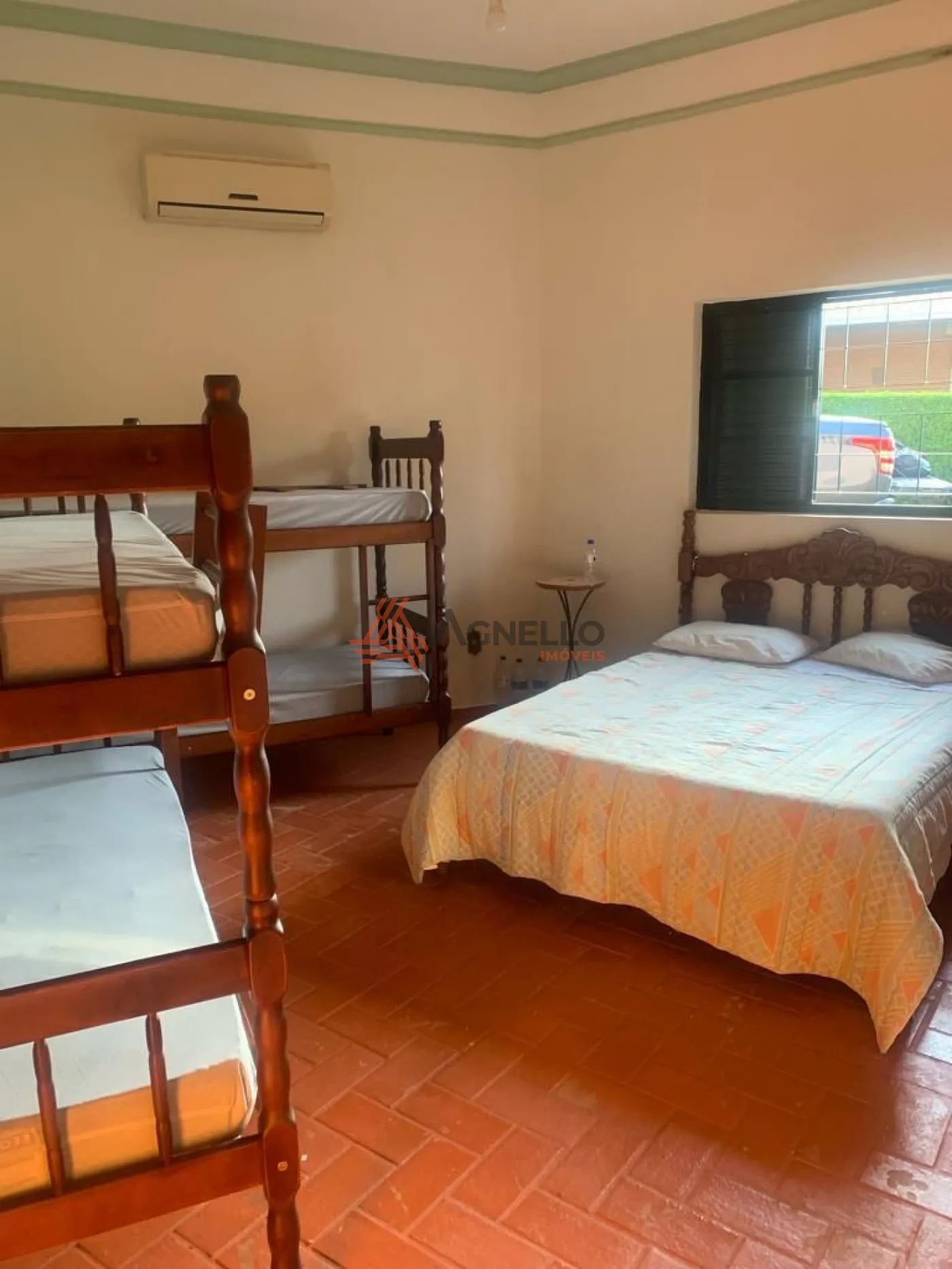 Residência principal avarandada com 3 dormitórios, sendo 1 suíte, banheiro social, sala de TV e cozinha.