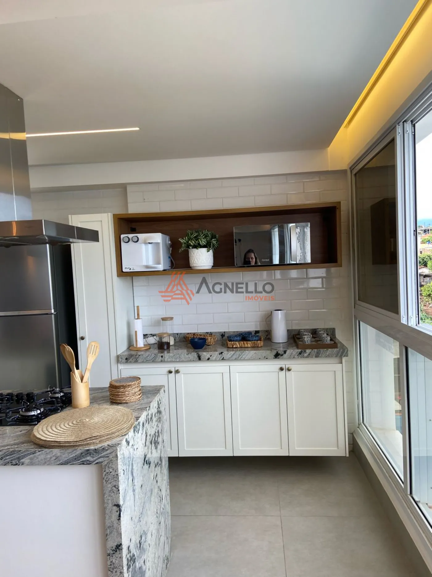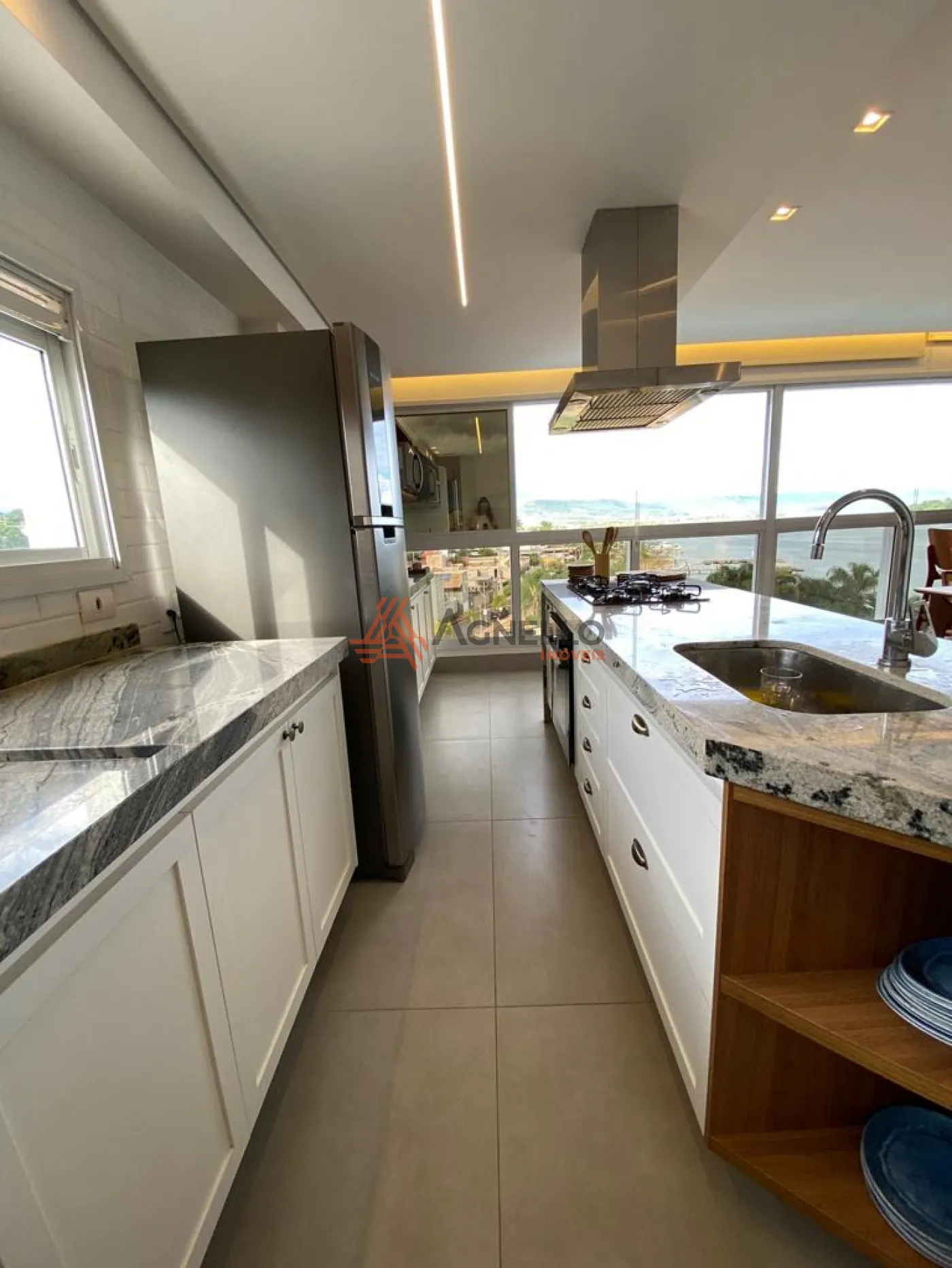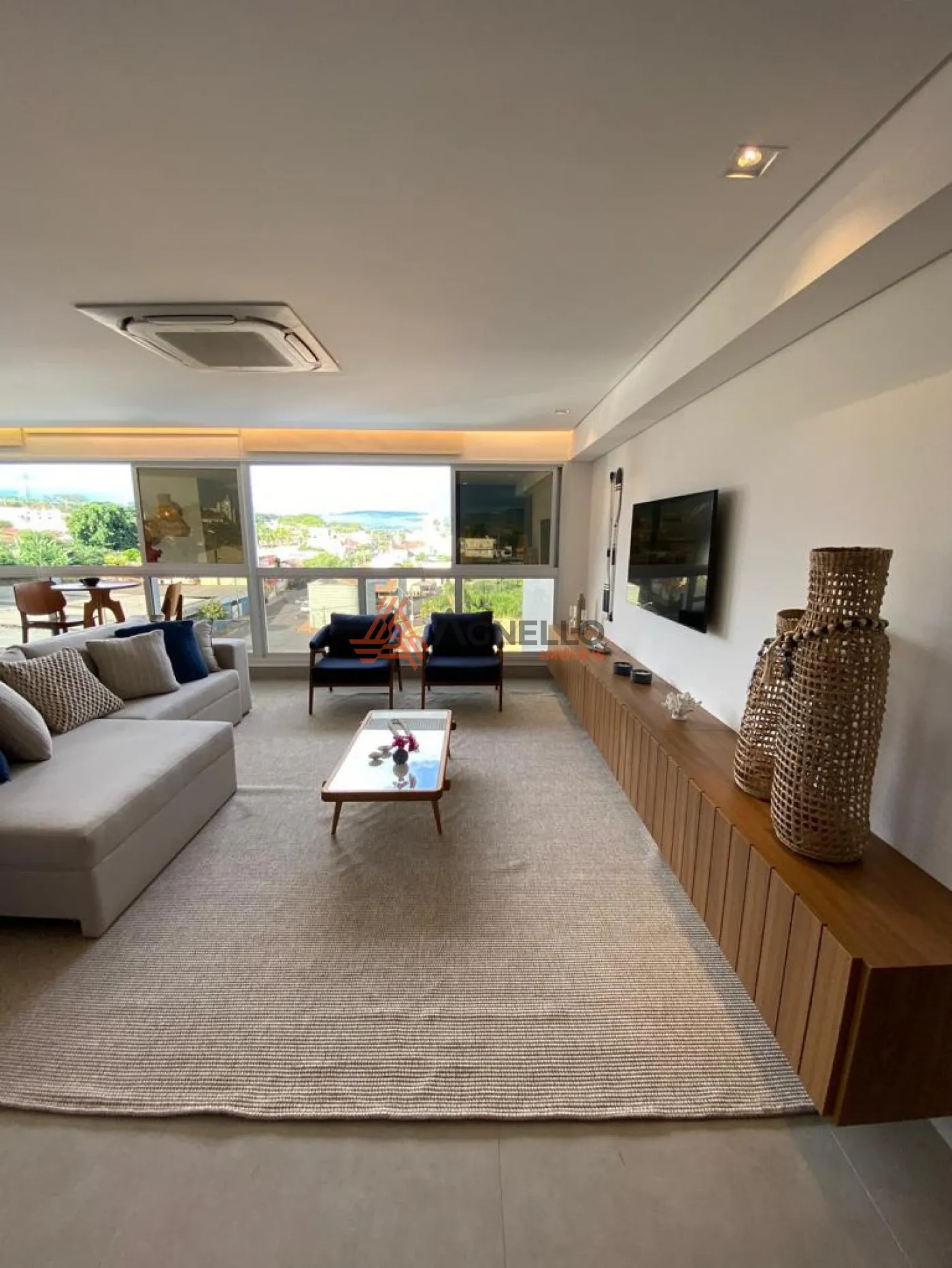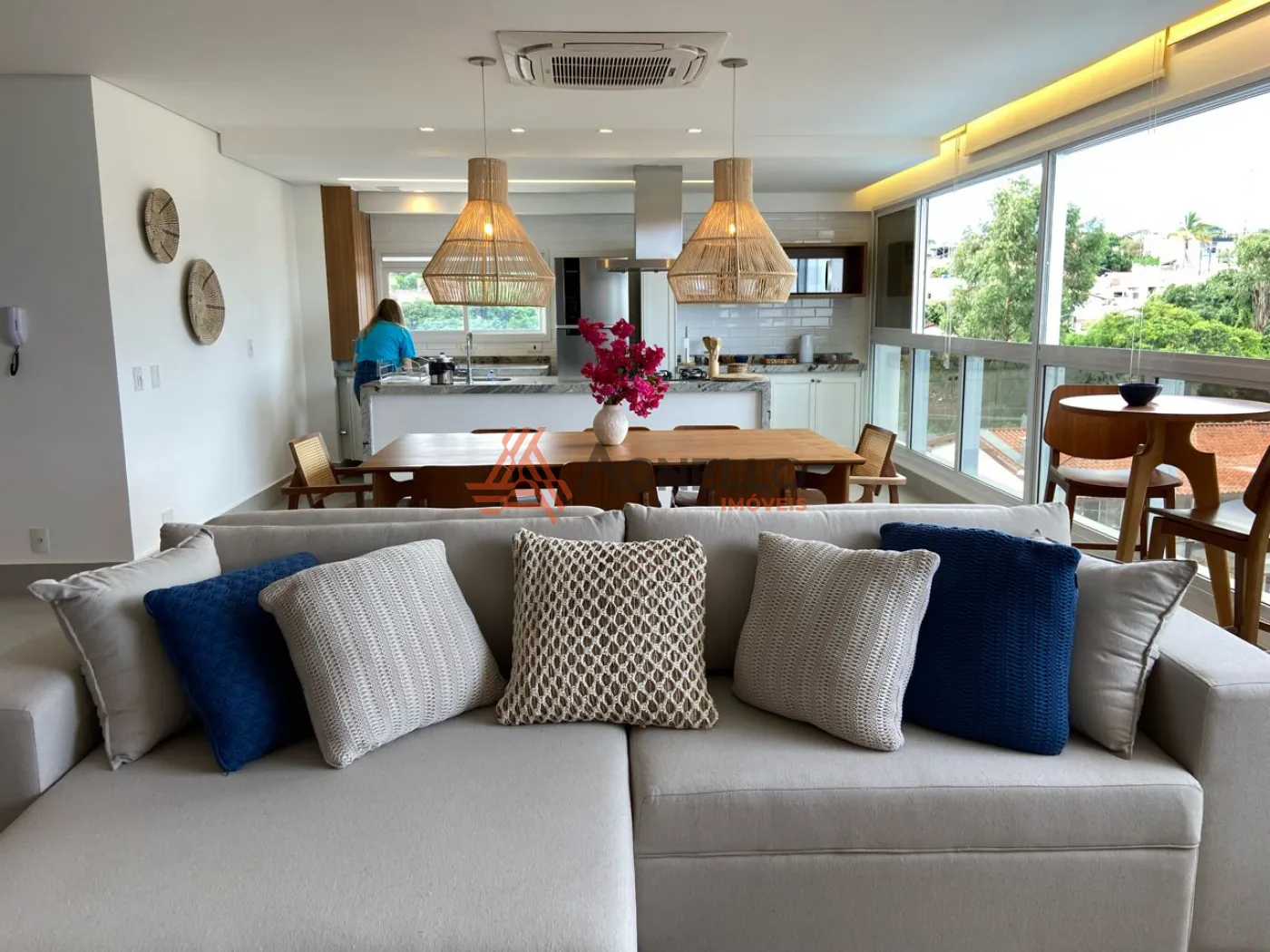 Apartamento com fino acabamento, mobiliado, possuindo 3 suítes, ampla sala em conceito aberto para 3 ambientes, lavabo, cozinha americana com ilha e 2 vagas de garagem.