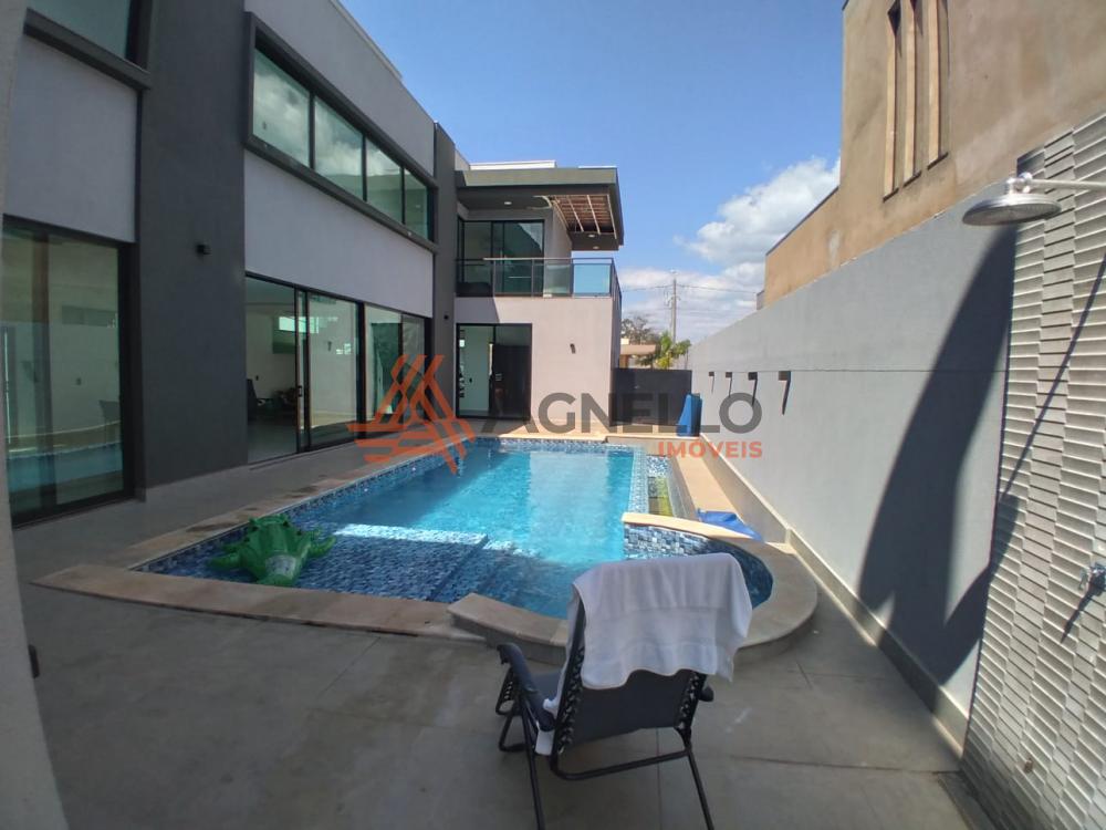 Com sete suítes sendo uma com closet (seis no piso superior e uma no térreo); sala no piso superior com dois ambientes e sacada. Sala três ambientes no térreo, lavabo, cozinha integrada com ampla varanda gourmet, piscina com hidro, garagem coberta para dois carros mais três vagas descobertas.
