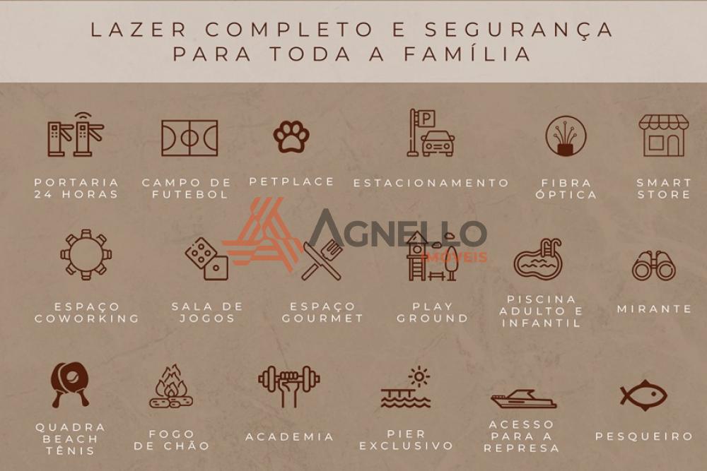 Amplo lote com 420m², em condomínio fechado com área de lazer completa com estrutura de clube: campo de futebol, pet place, estacionamento, fibra ótica, smart store, espaço coworking, sala de jogos, espaço gourmet, playground, piscinas adulto e infantil, mirante, quadra de beach tennis, fogo de chão, academia, píer exclusivo, acesso para a represa e pesqueiro.