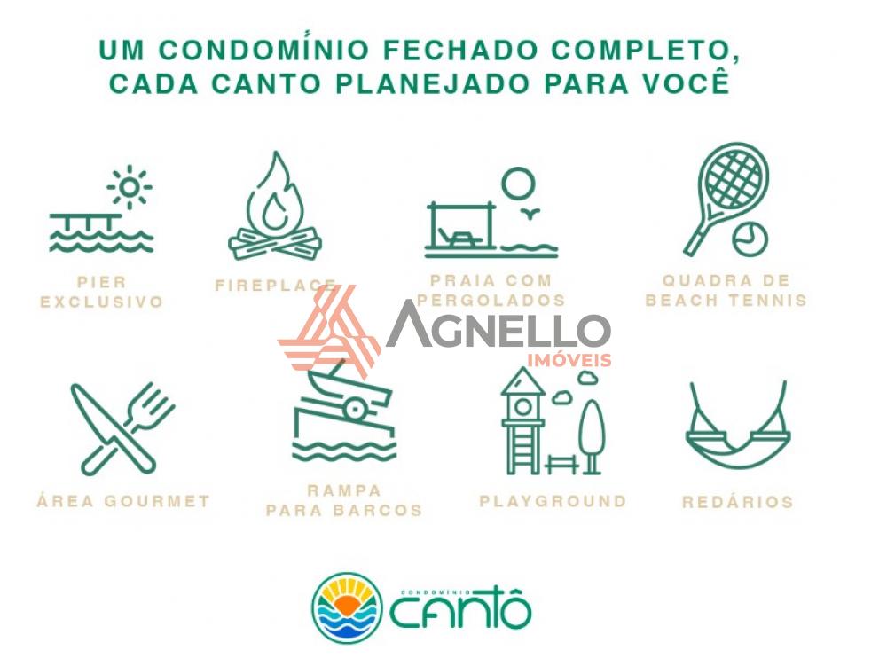 Condomínio com praia com pergolado, pier exclusivo, playground, área gourmet, fireplace, rampa para barcos, quadra de beach tennis e redário.