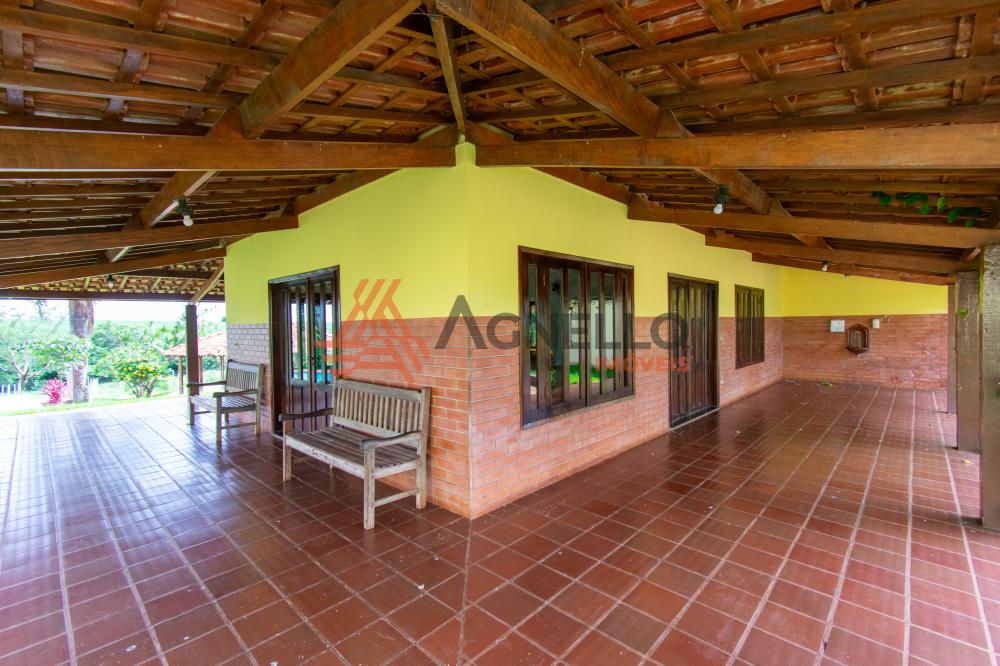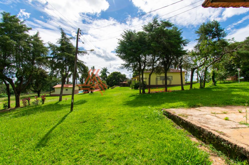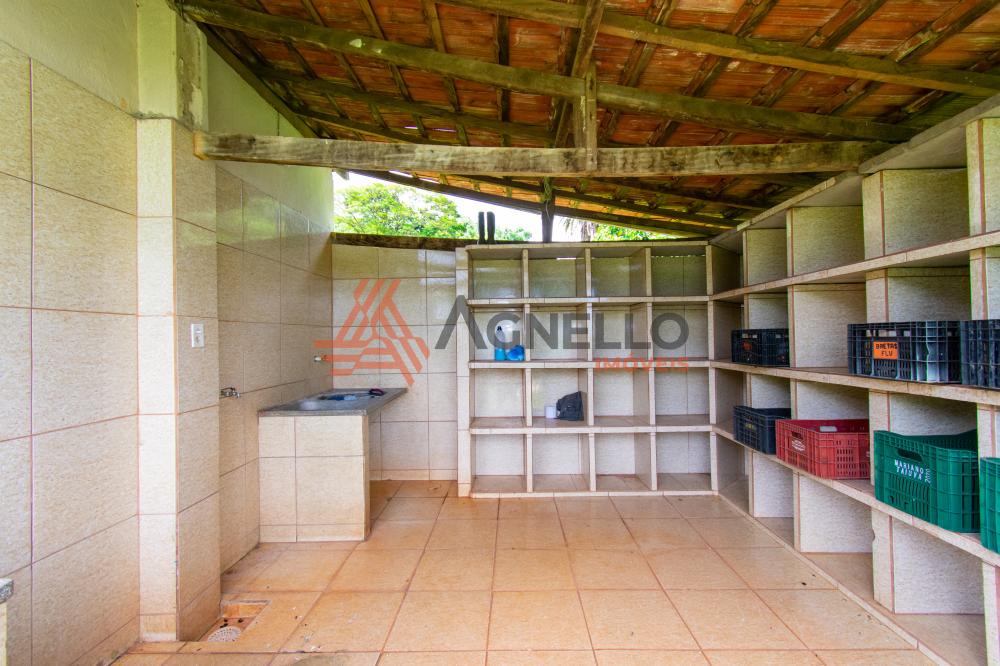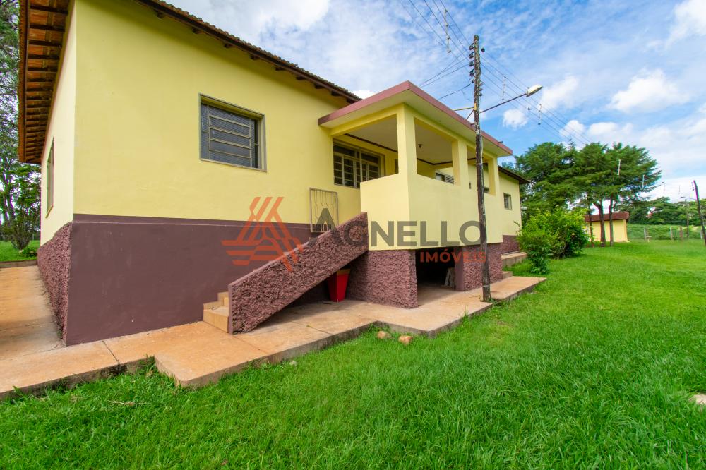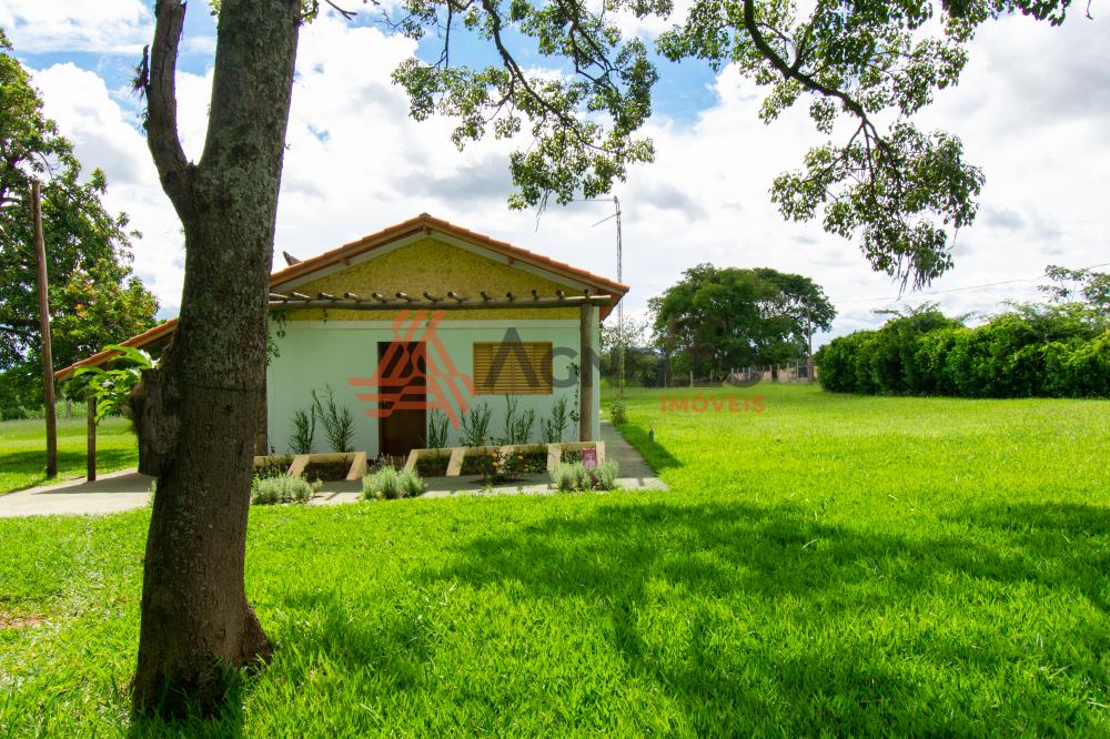 Chácara com três casas e ampla área de lazer com piscina, quiosque, vestiário, jardim, pomar, salão de festas com cozinha industrial, dois banheiros, dois dormitórios e ampla varanda com cozinha de apoio.